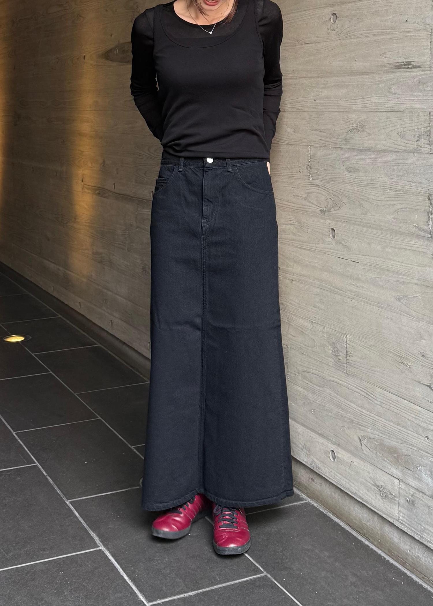 日本製のデニムにこだわったロング丈のスカート。