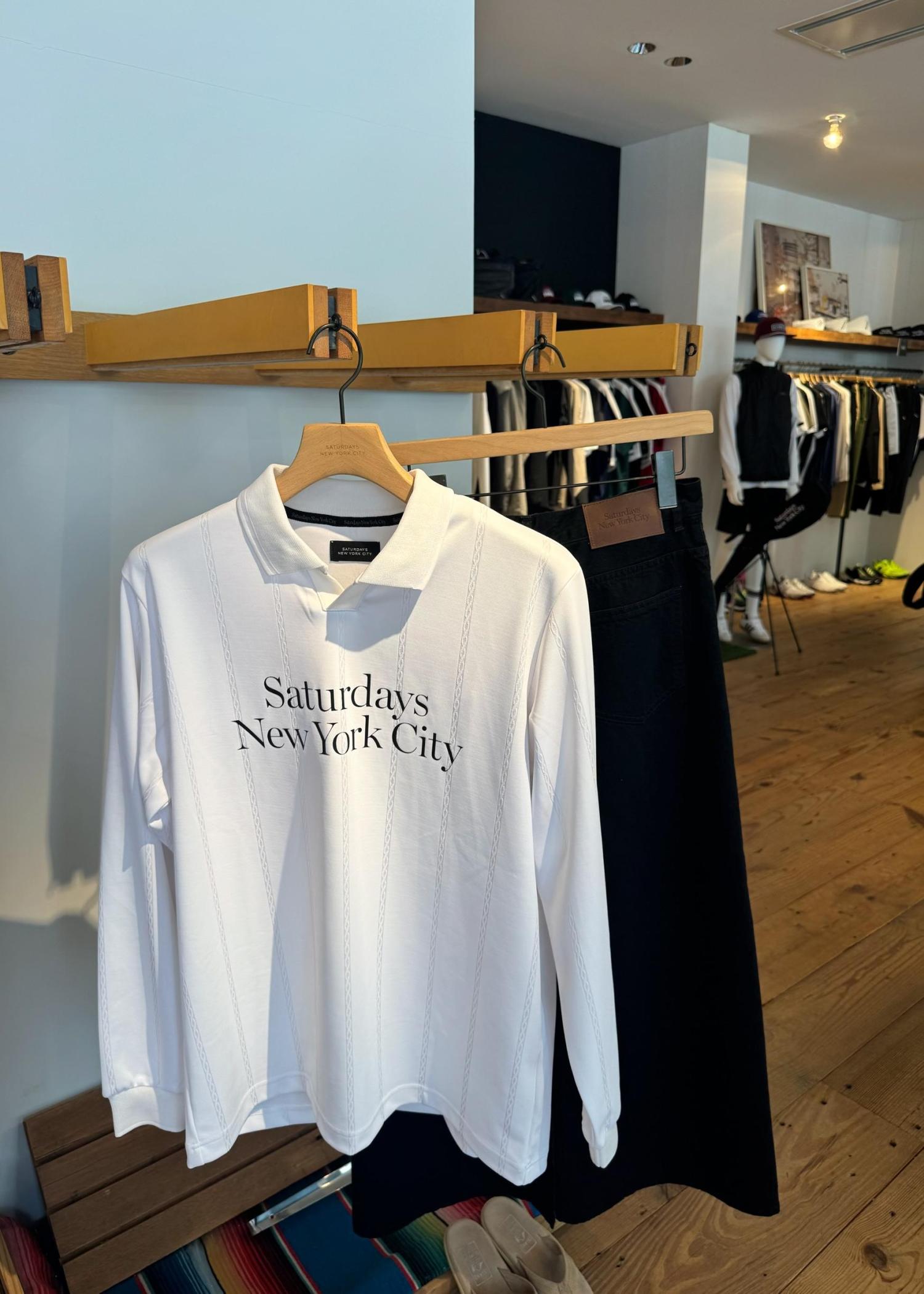 「Saturdays NYC」のロゴがアクセントになり、あえて街着として取り入れることで、シティカジュアルにアップデート⭐︎