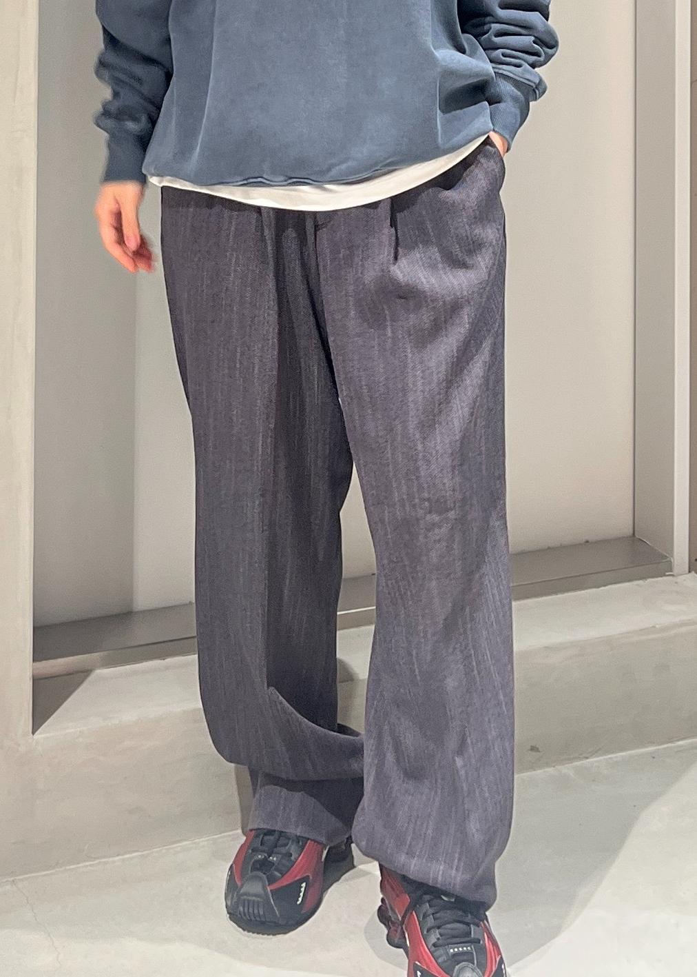 Saturdays NYCGeorge Tweed Two Tuck Pantチャコール / S¥25,300レビュー2タックから入るゆとりのある腰回りから、綺麗なラインで伸びるストレートシルエットは大人のリラックスシルエットを表現したパターンになっています。
