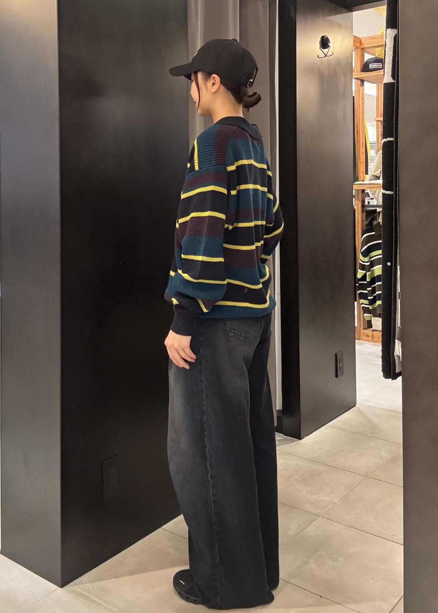 サタデーズNYCオリジナルのレトロな配色で構成されたボーダーのニットポロです。