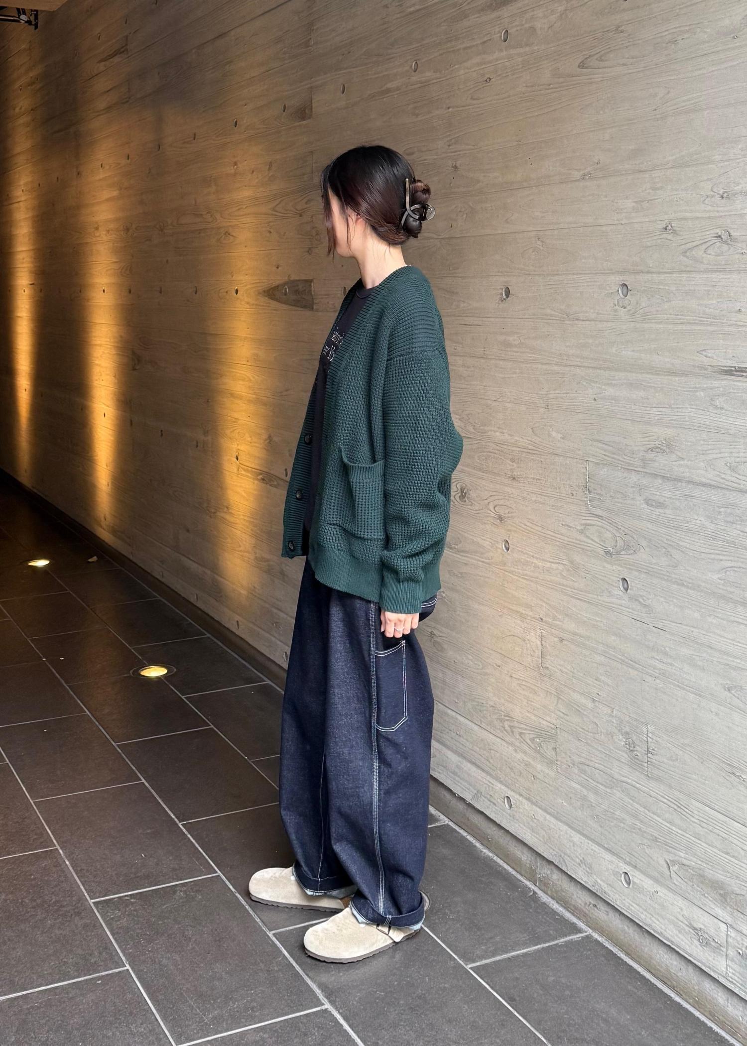 肉厚で度目のしっかり詰まったローゲージのカーディガンです。