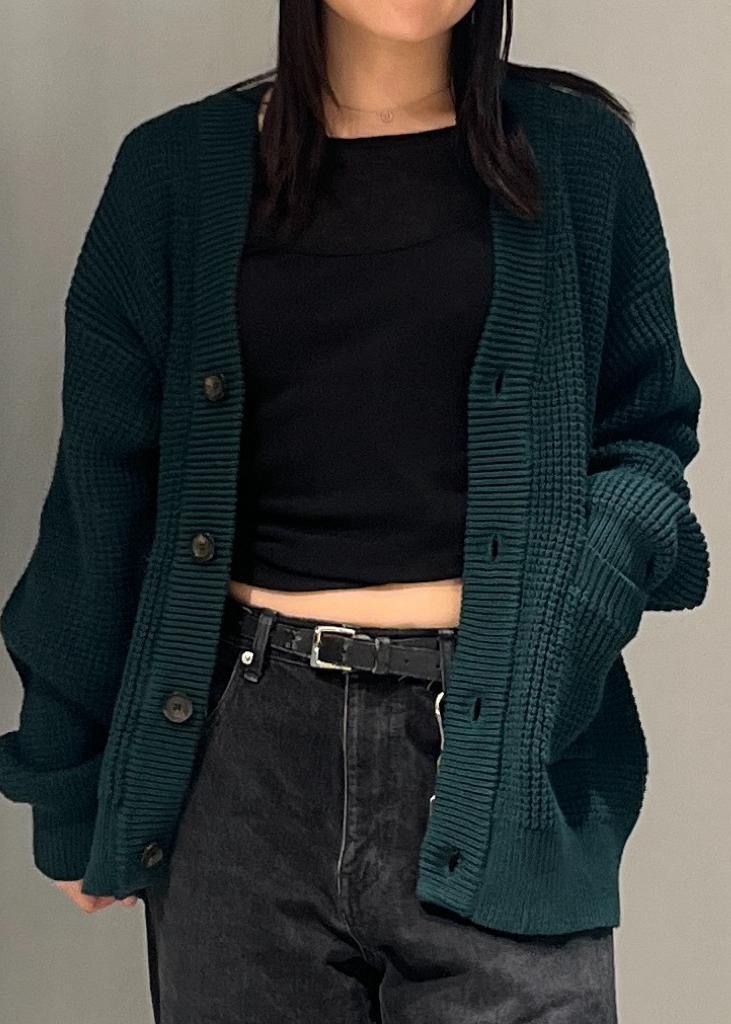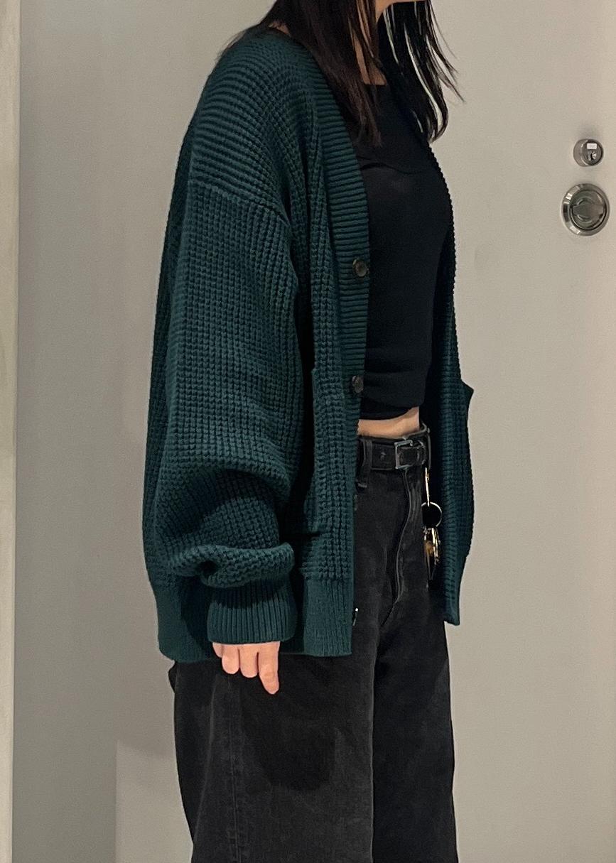 肉厚で度目のしっかり詰まった、アウターライクなショート&ワイドシルエットのローゲージカーディガンが可愛くておすすめです⭐︎