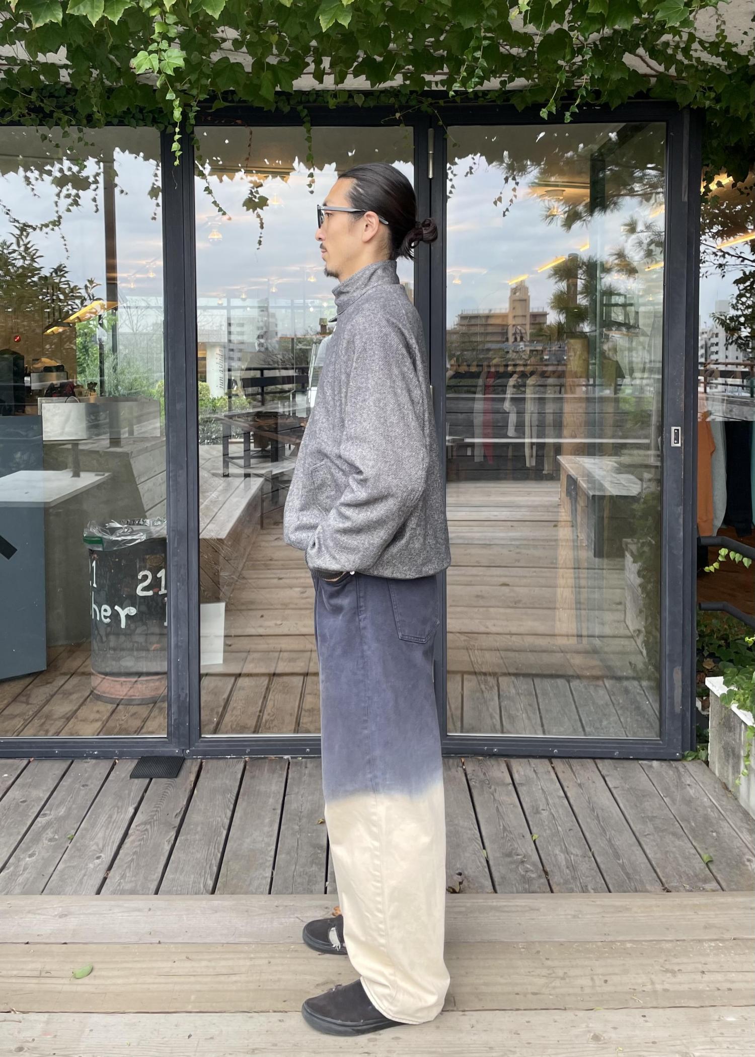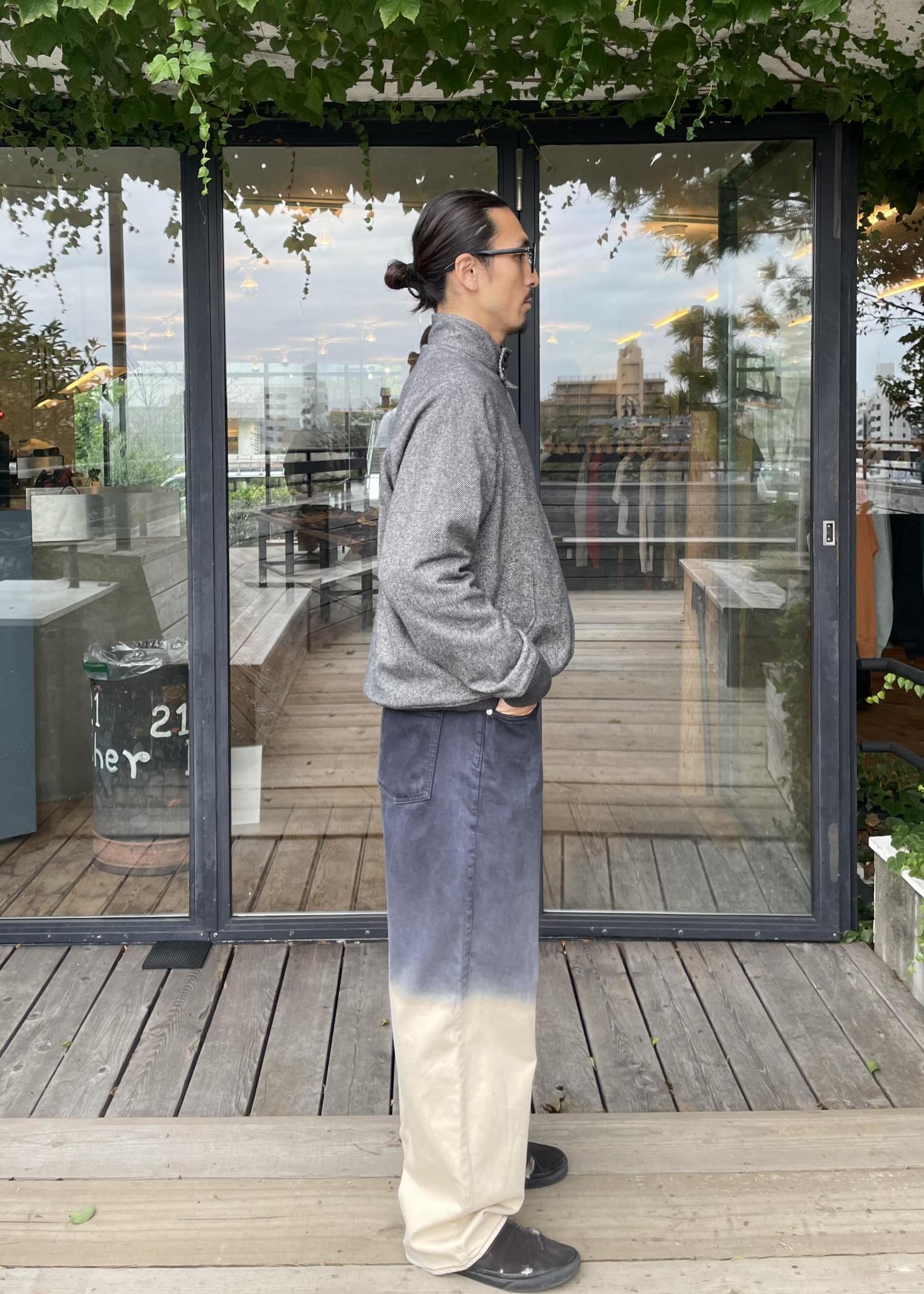 丈が少し短め、身幅も少しゆとりがある形で、首のところにボタンが2つあり首のところが立つ形!
