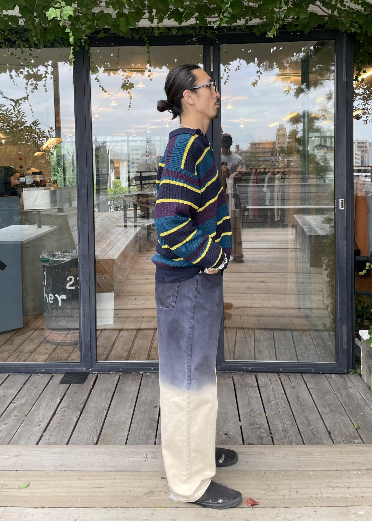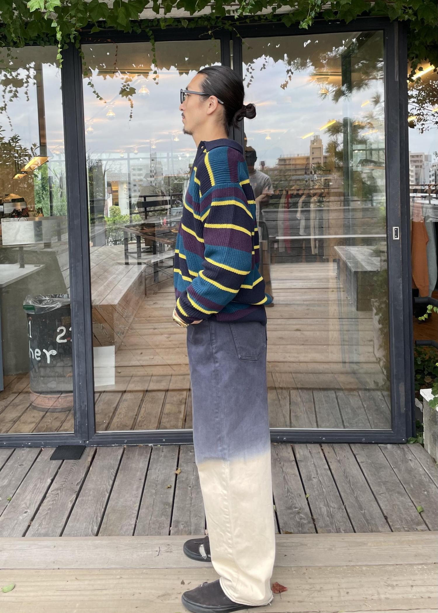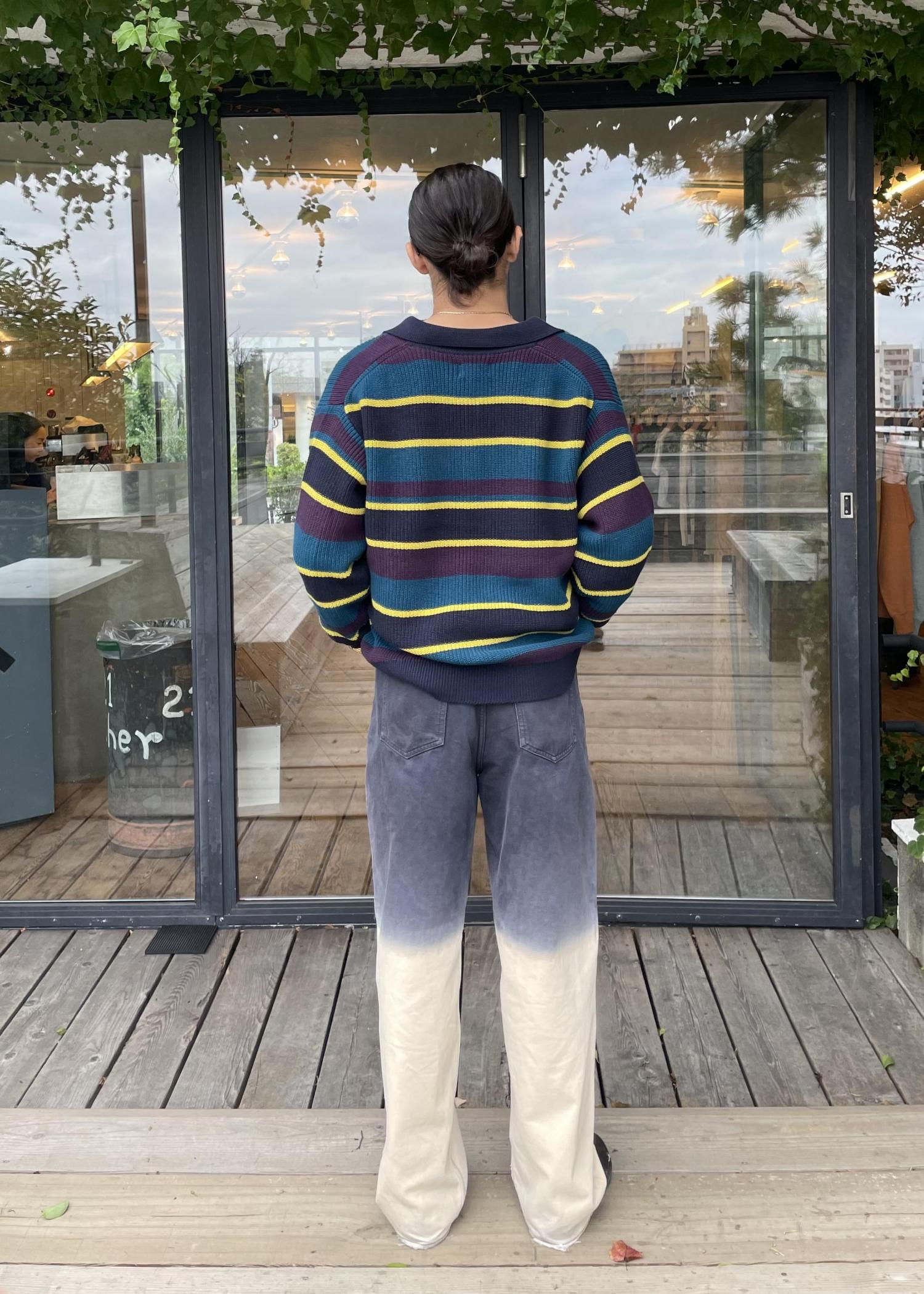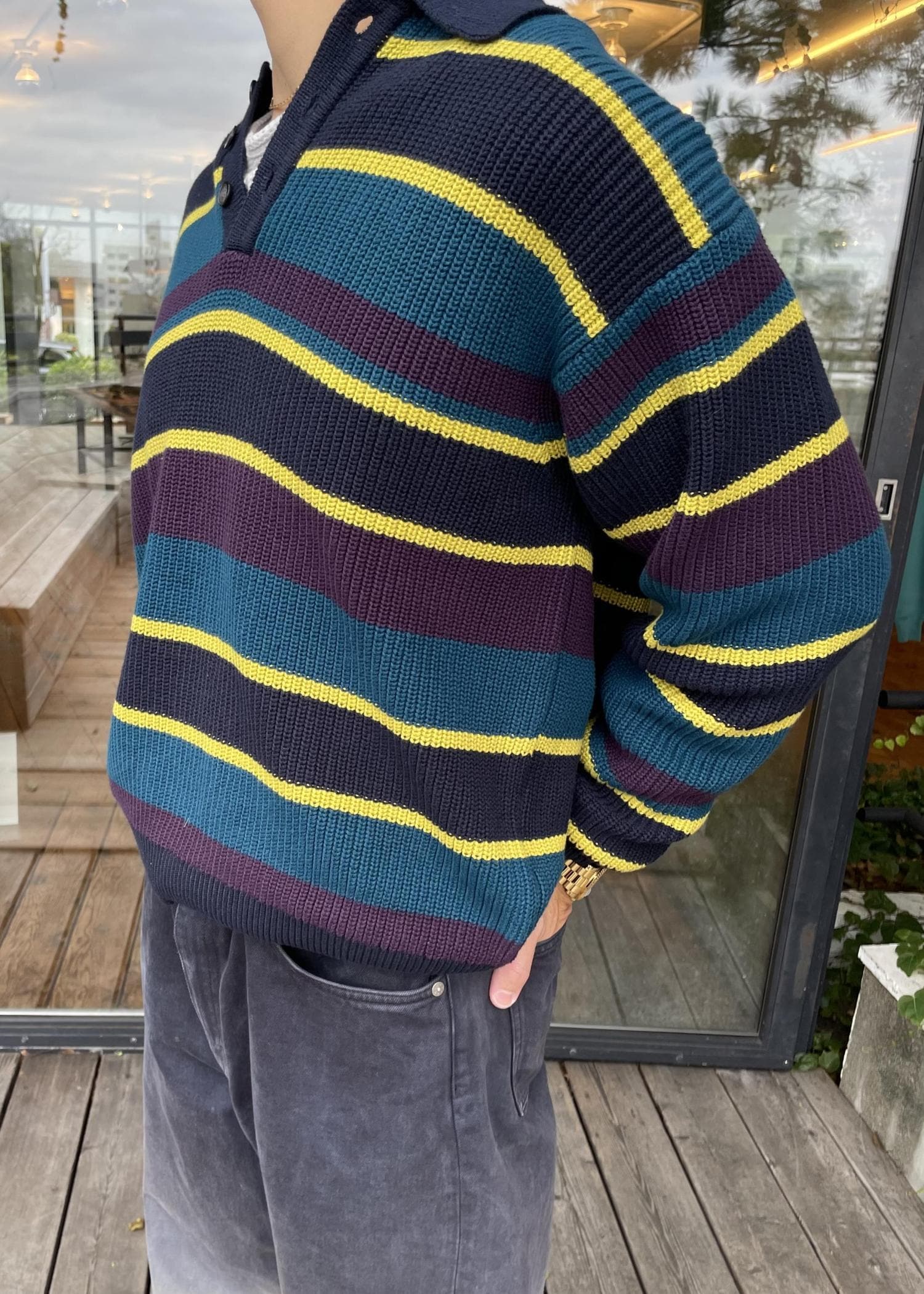 ネイビーベースのニットで、他にも3色使っていて合計4色入ったニット!秋冬物でポップな印象を与えるトップス!