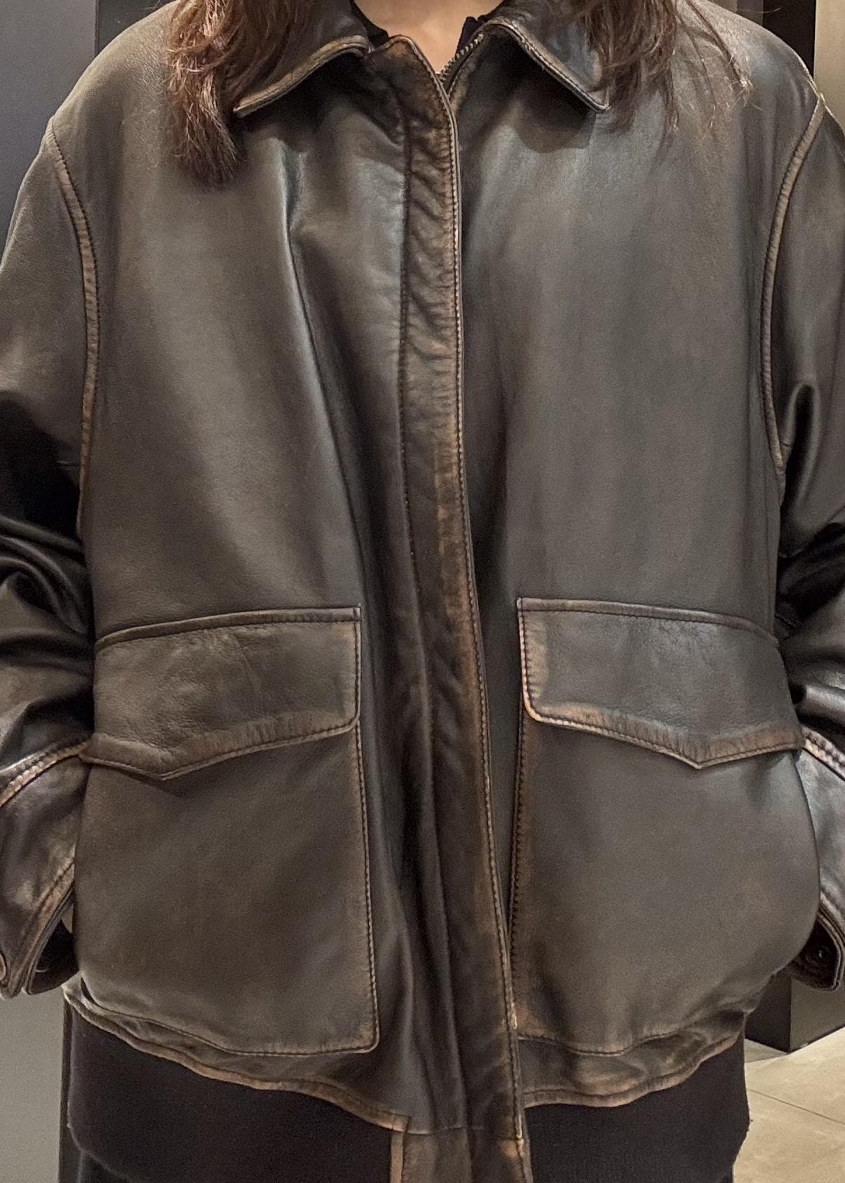 着用しているブラウンは、茶芯とあたりを出したエイジング加工でヴィンテージライクな仕上がりとなっています^^