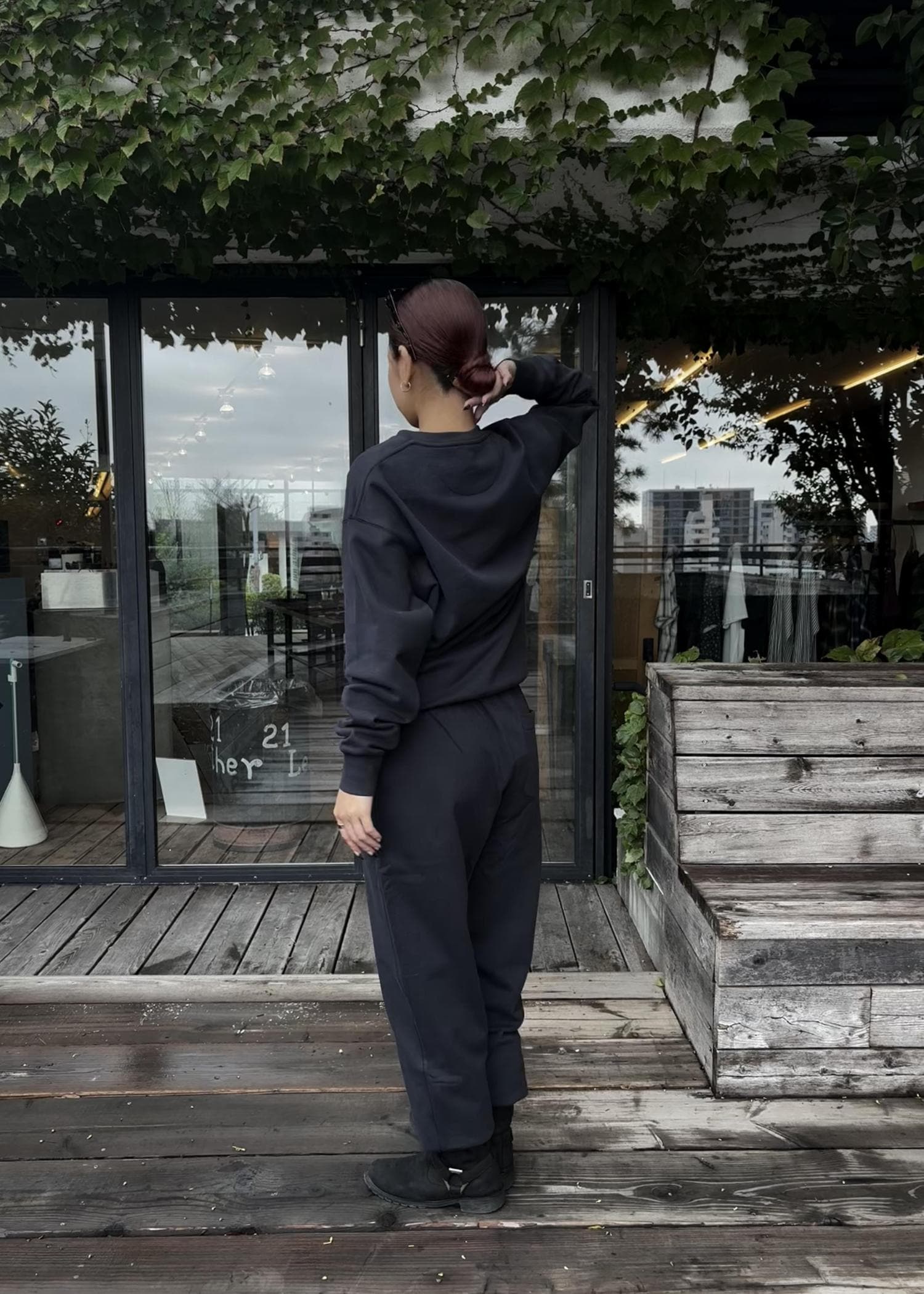 スウェット上下セットアップに、ブーツとサングラスを合わせてラフになりすぎないコーディネートを組みました!