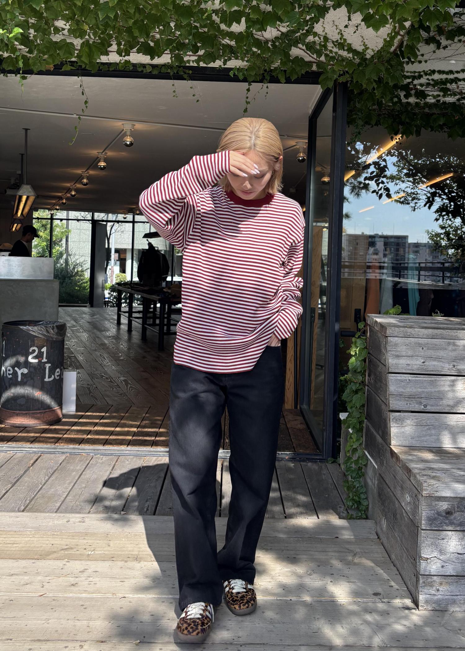 ボーダーデザインなので一枚でも存在感があり、重ね着にも最適です。