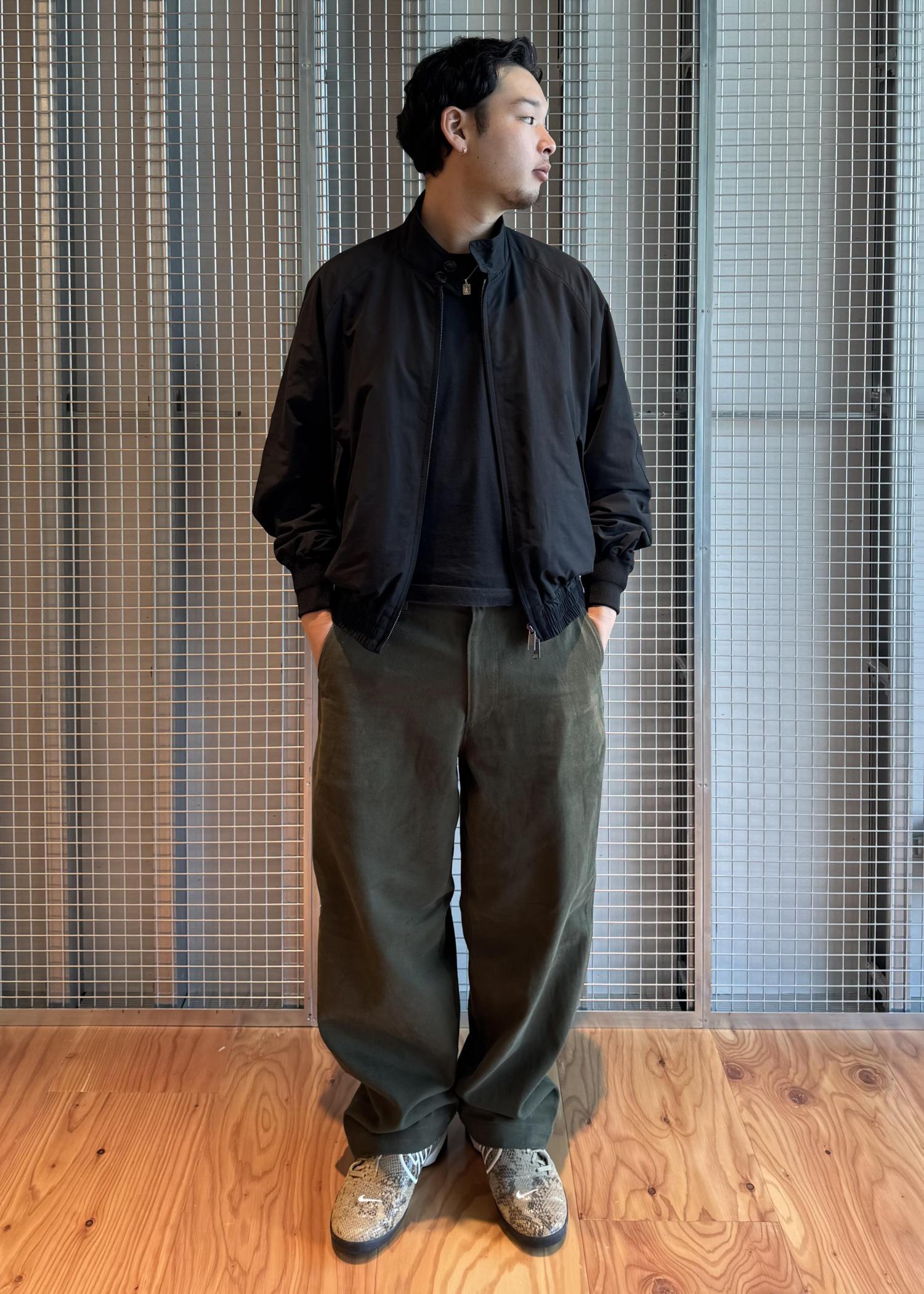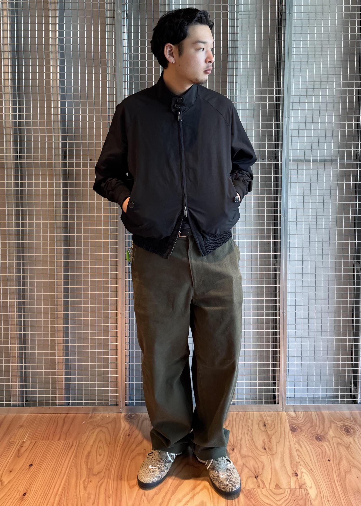 それをワイドストレートシルエットのペインターパンツで合わせました。UKスタイルですが、大人っぽく上品さの中に男らしい、いなたさを感じさせるアイテムコーデです!