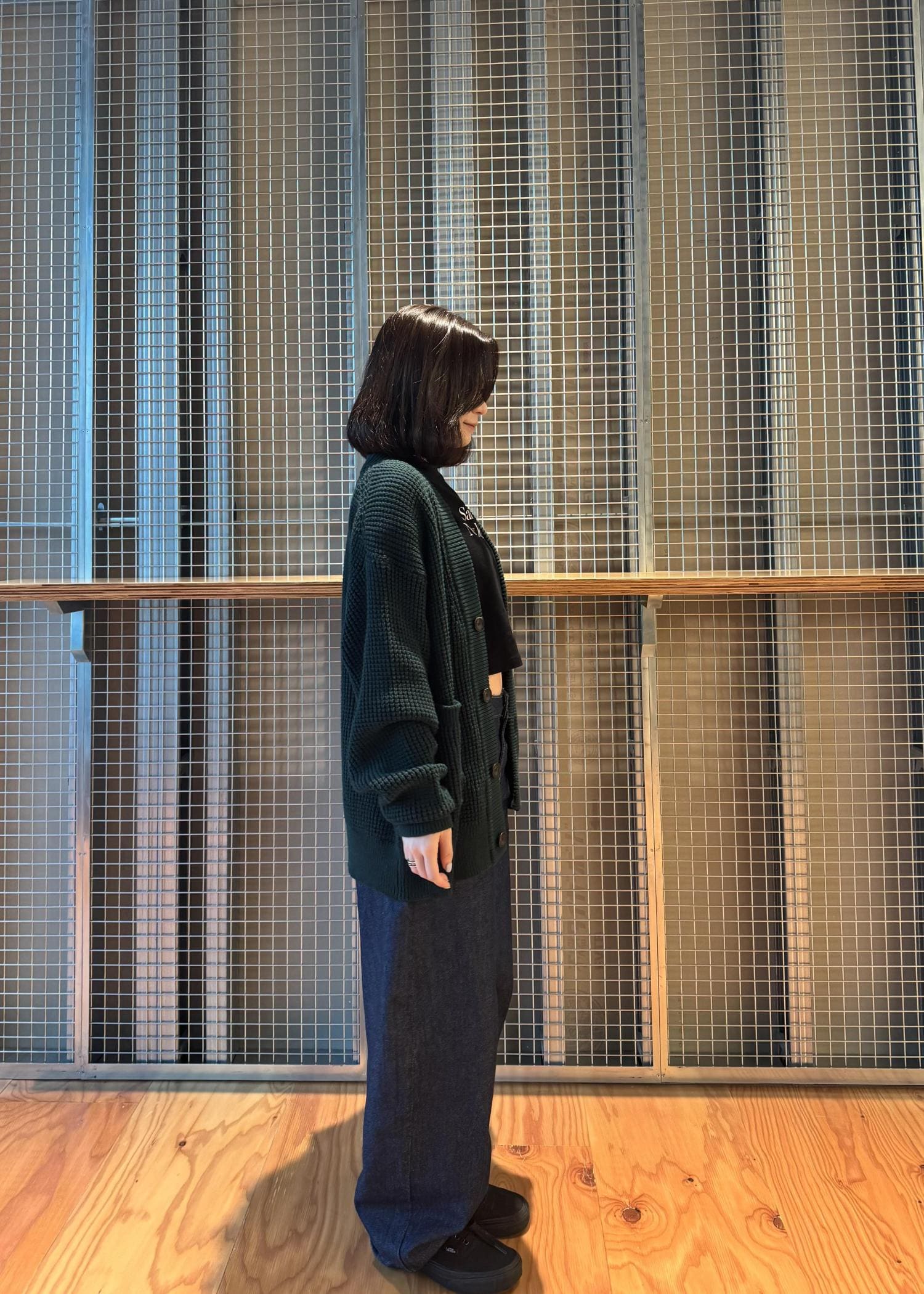 肉厚でしっかりとしたローゲージ編みが魅力のカーディガン。短めの丈感とワイドなシルエットで、今っぽい抜け感を演出できます!