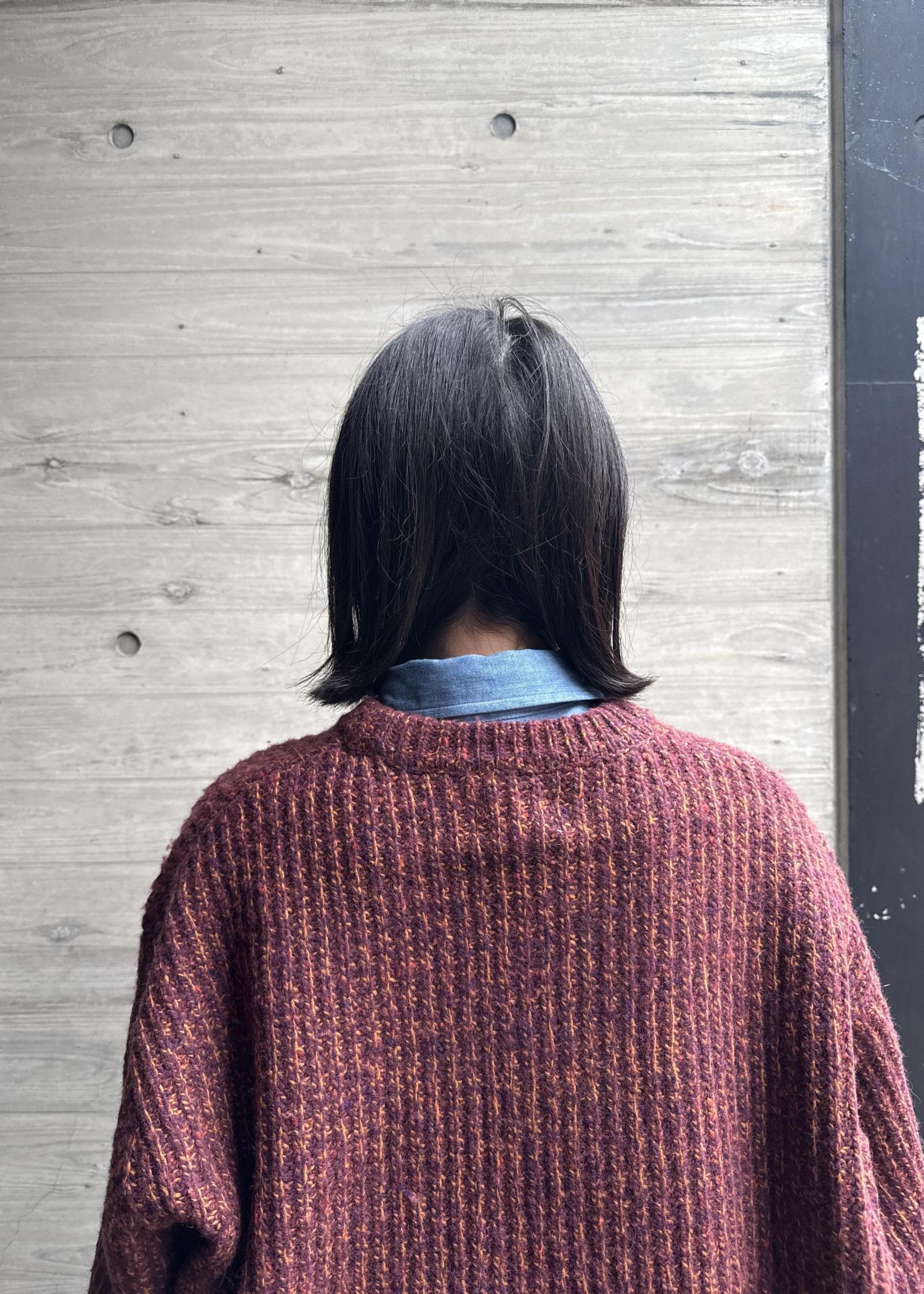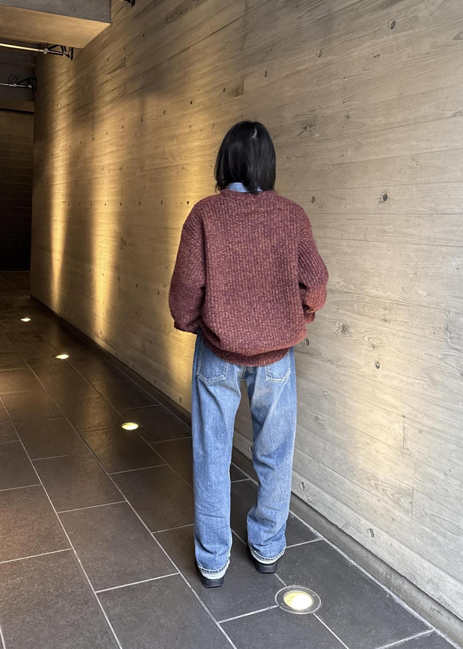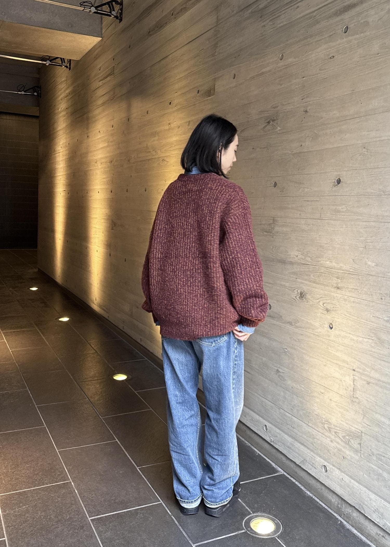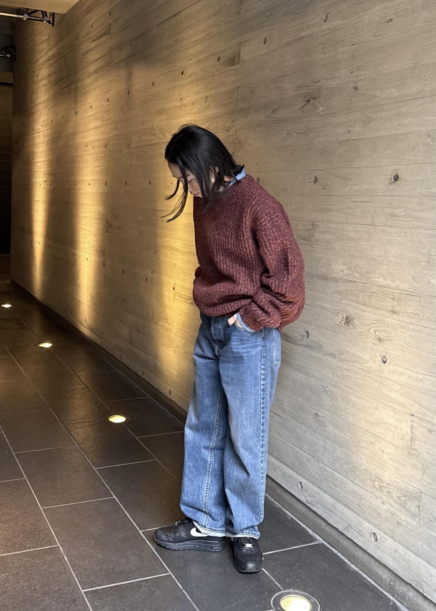ボリューム感が特徴のローゲージニットを使用したコーディネートをご紹介いたします。