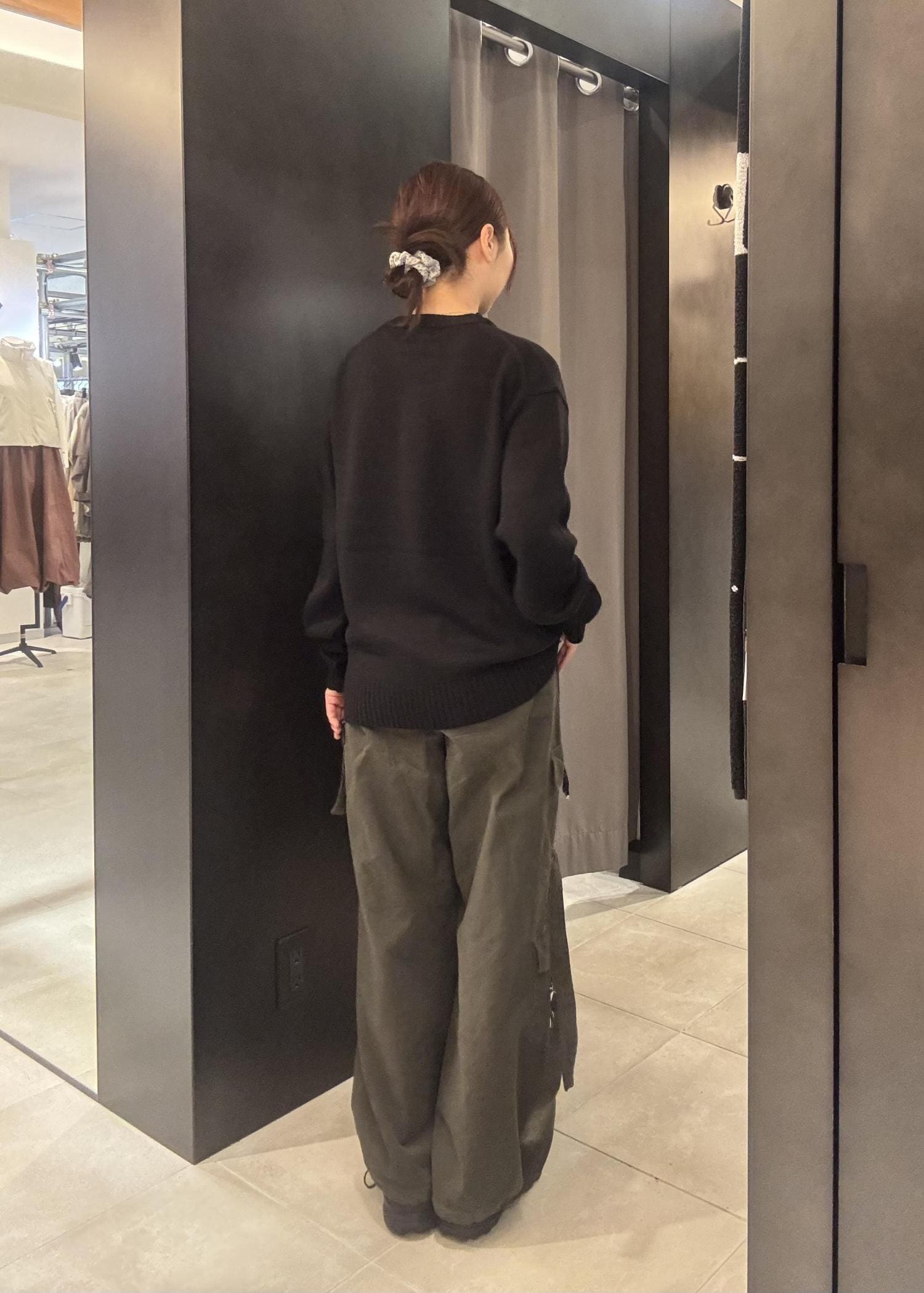 衿と袖のリブがクラシックな編地で、やや緩みを付けたサイジングがリラックスした印象になっています。