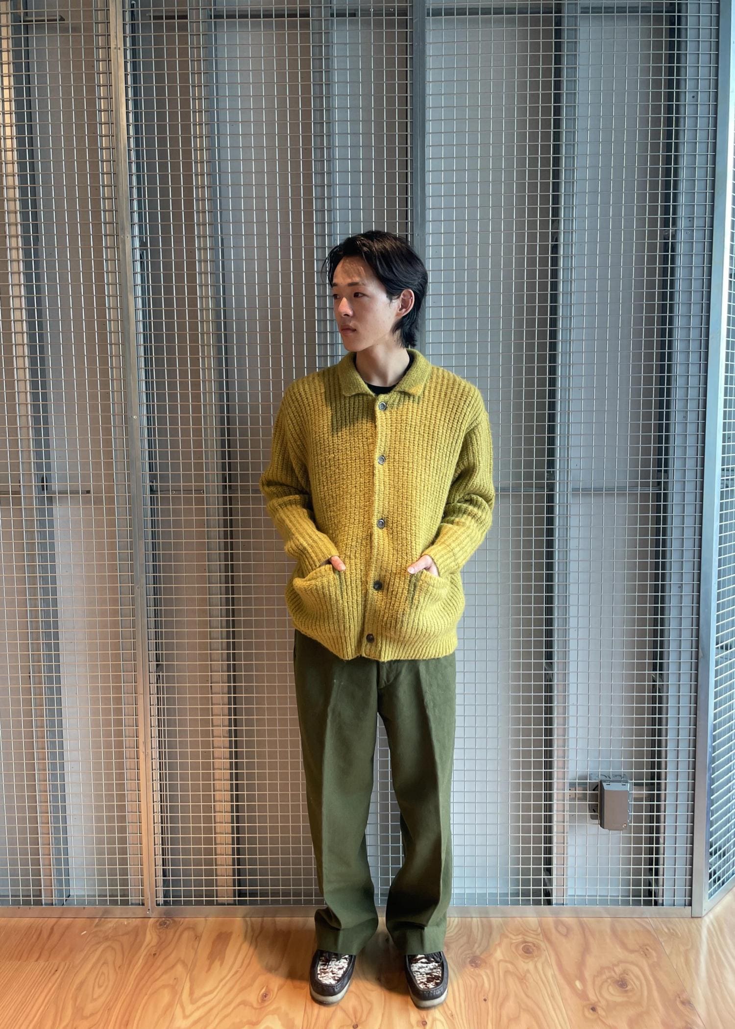 ローゲージでボリュームのあるポロカーディガンです。