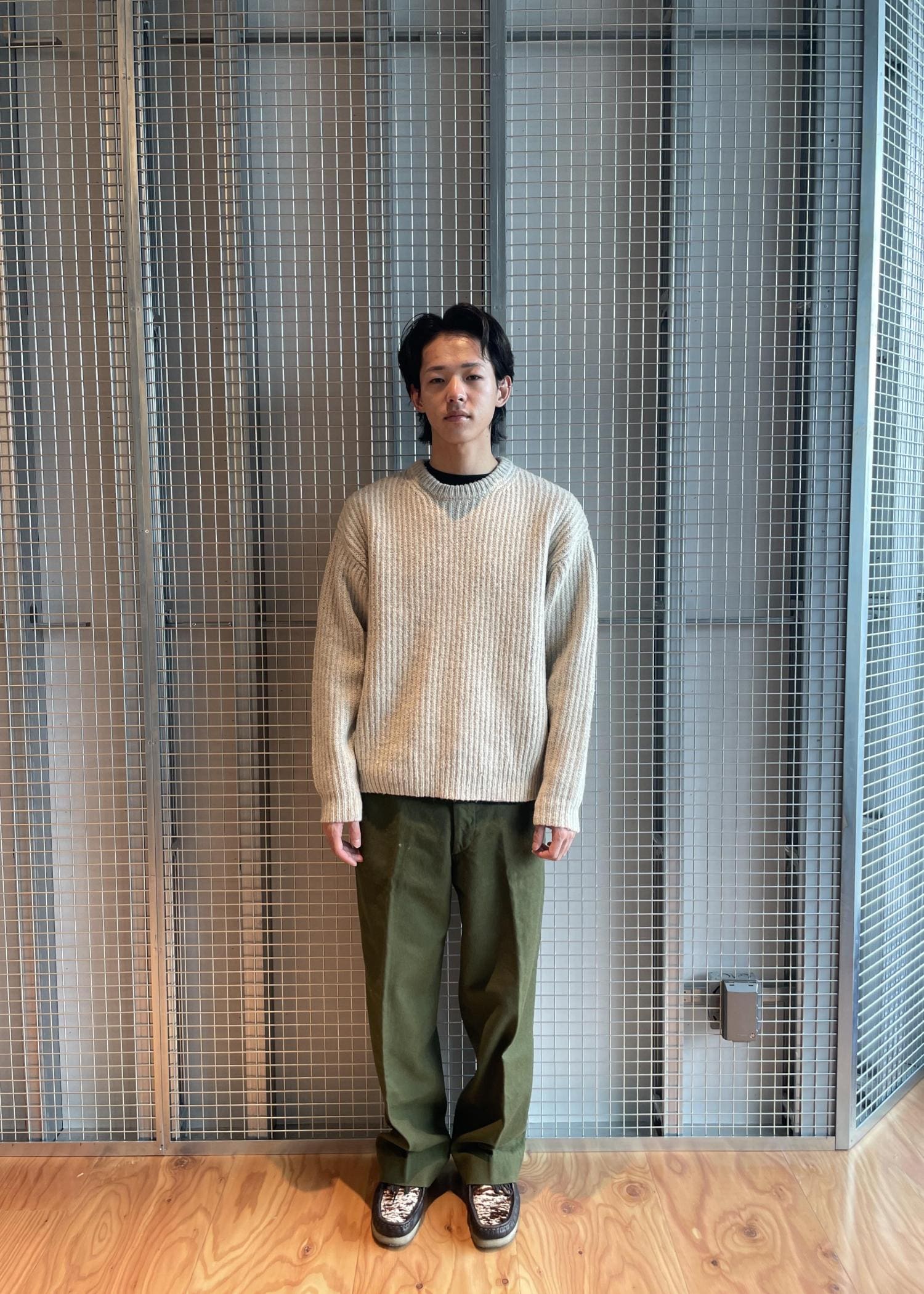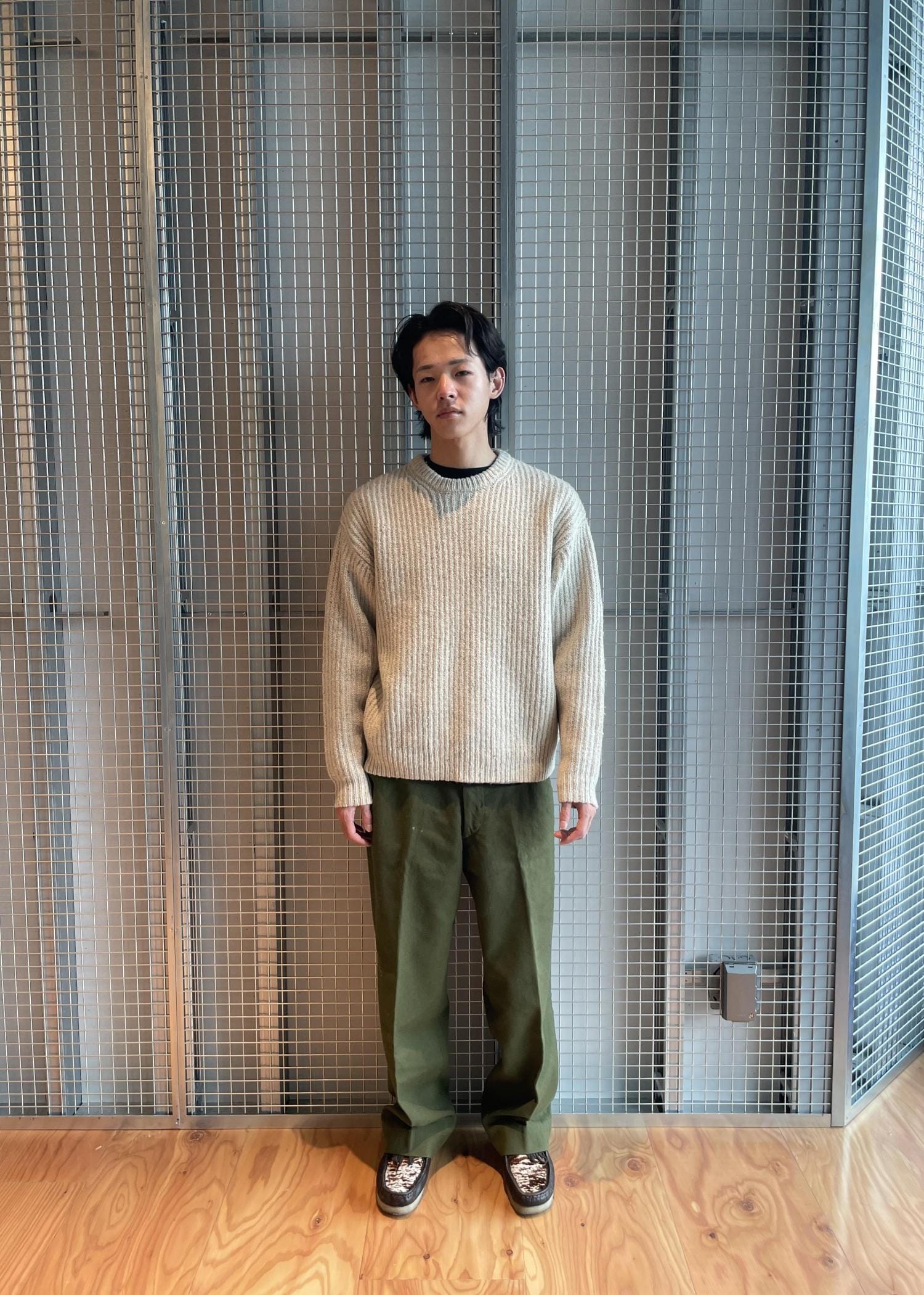 ミックス糸の特徴を活かしたシンプルなデザインはレイヤードに映え、1枚着でも様になるアイテムです!!
