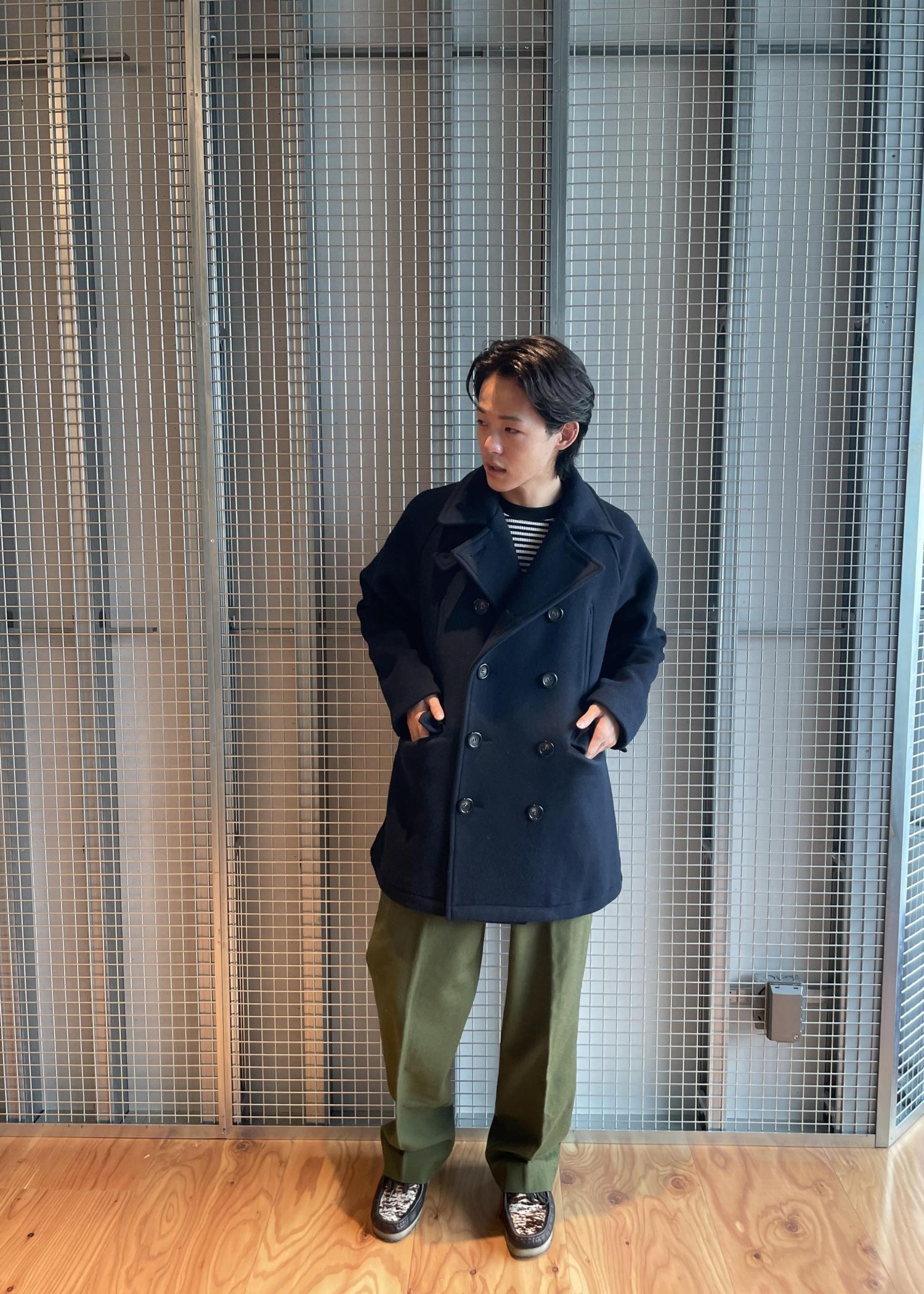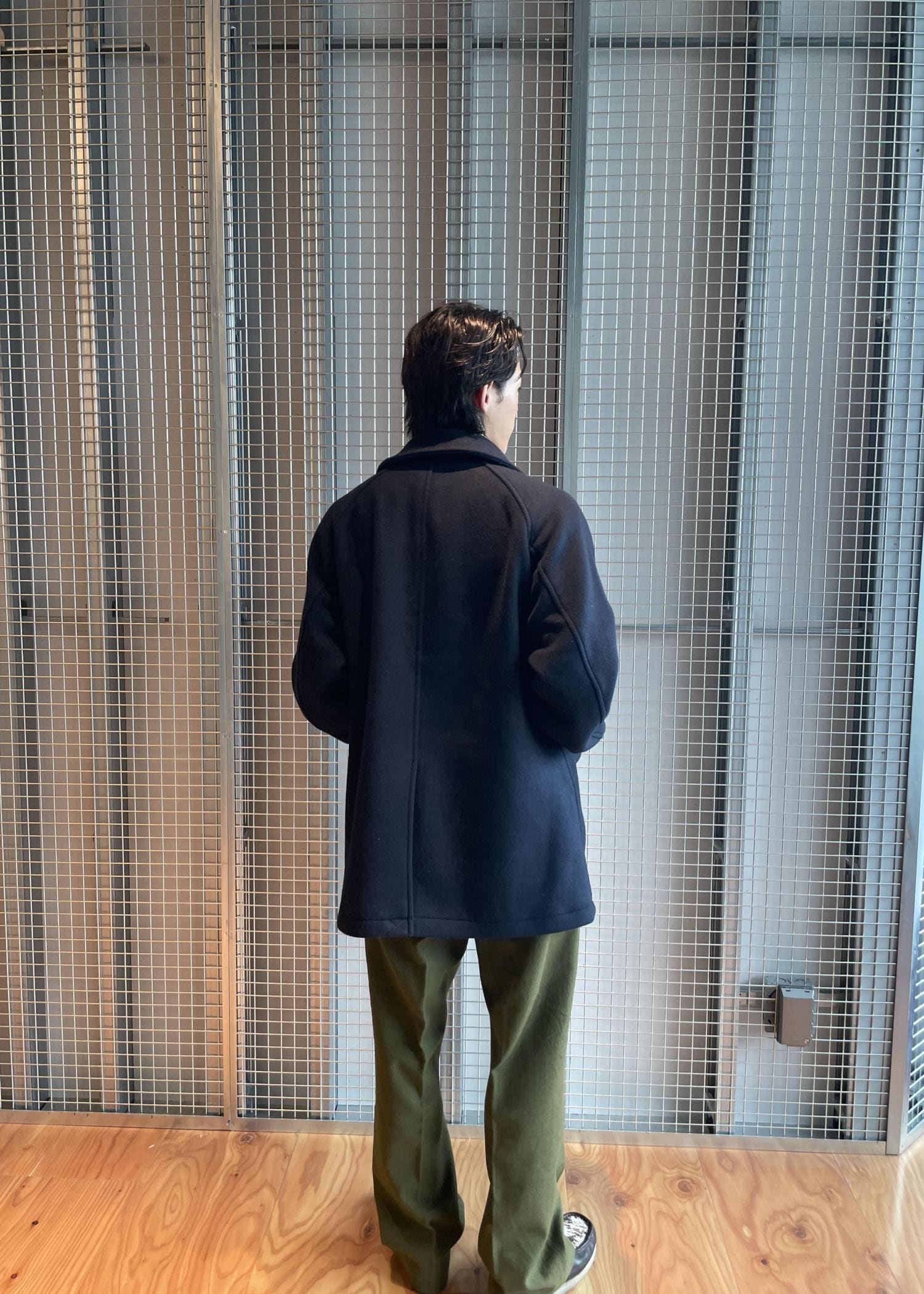 ゆとりを持たせたリラックスしたサイズ感ではあるものの全体のおさまりと着丈バランスが良くボタンをすべて閉めた時の雰囲気も抜群に良い大人のコートに仕上がっています!