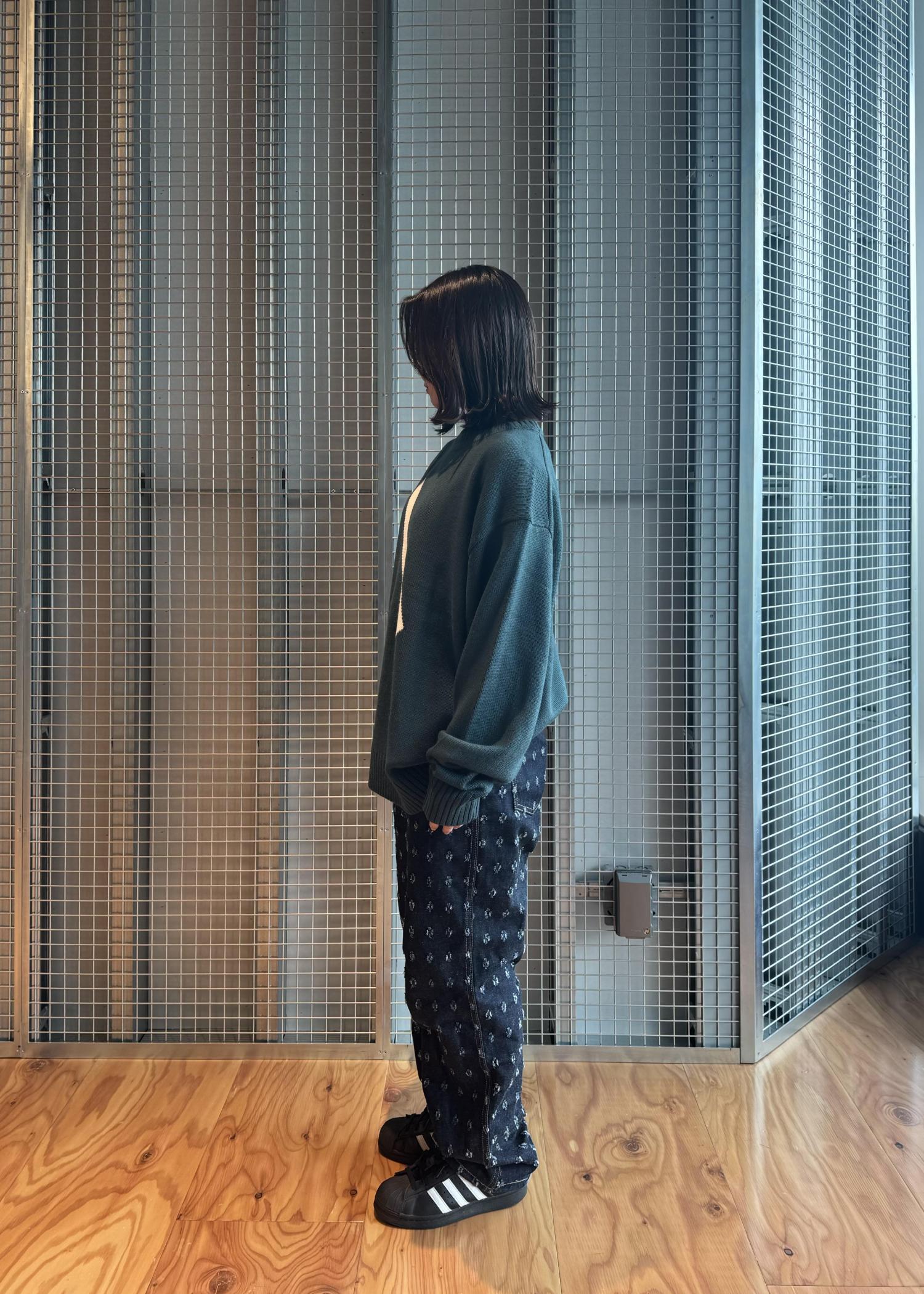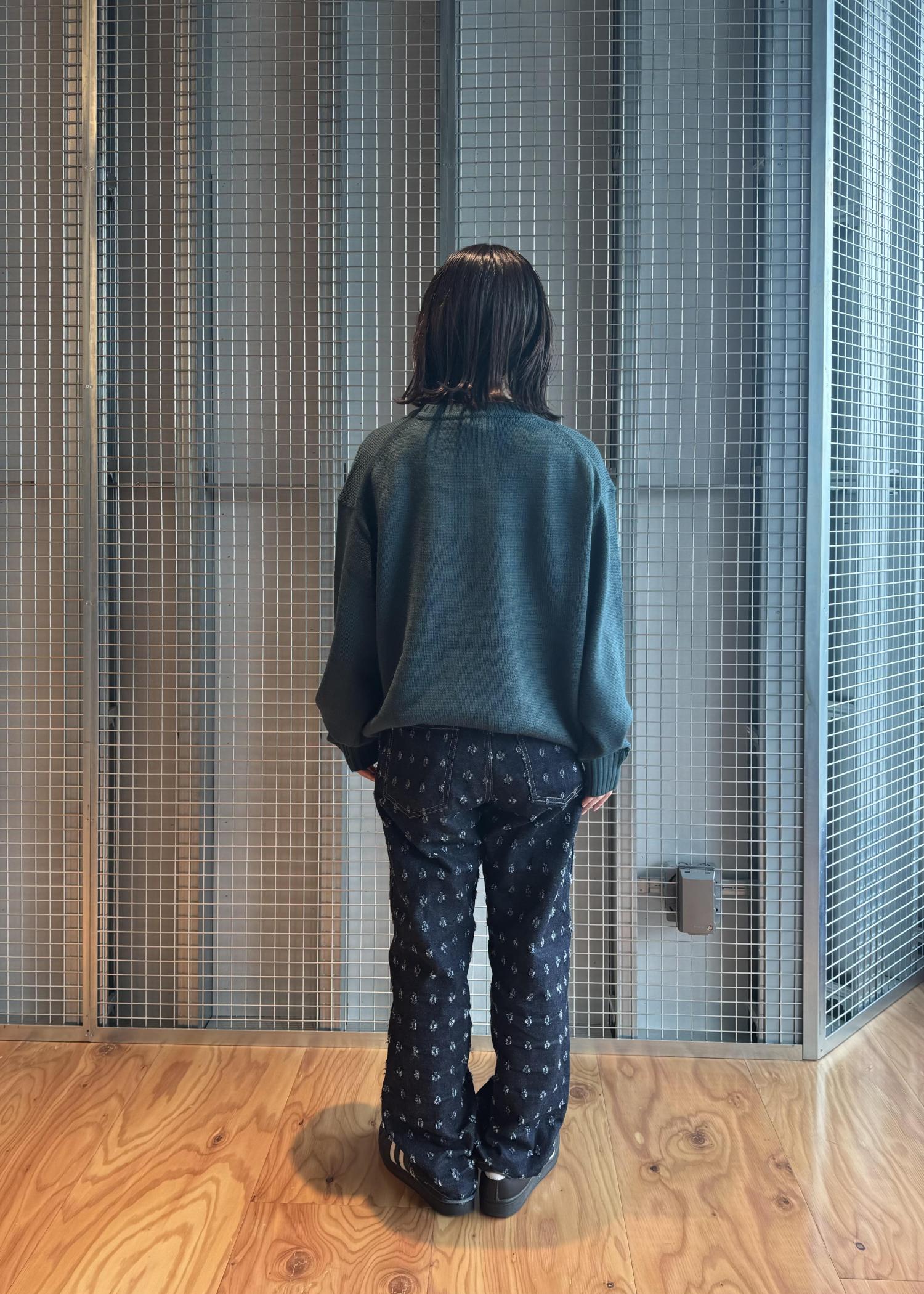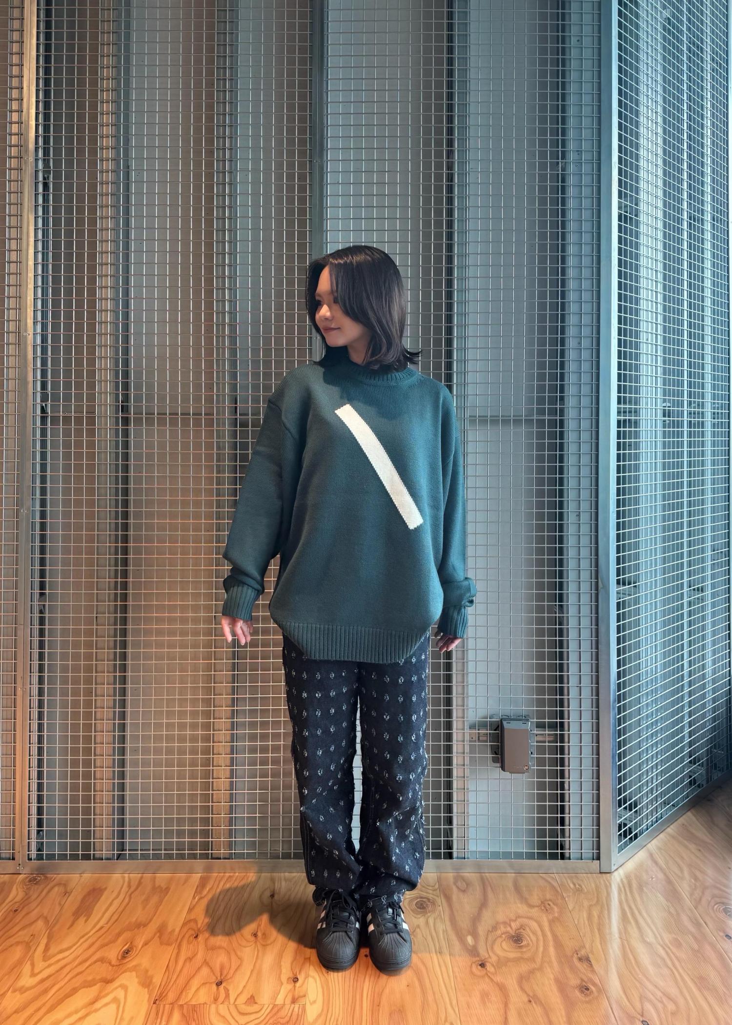 フロントの大きなスラッシュロゴが印象的なニットです!