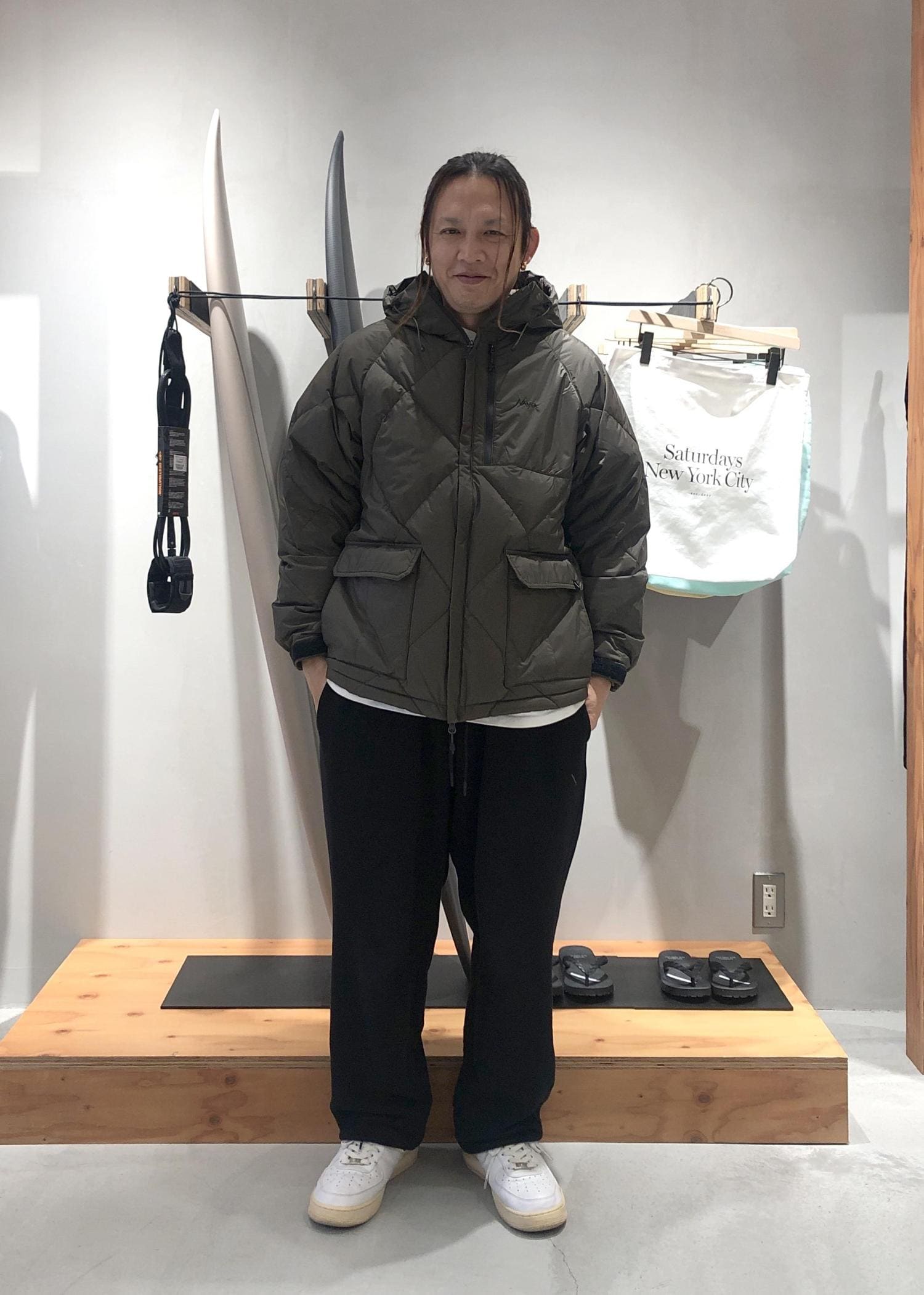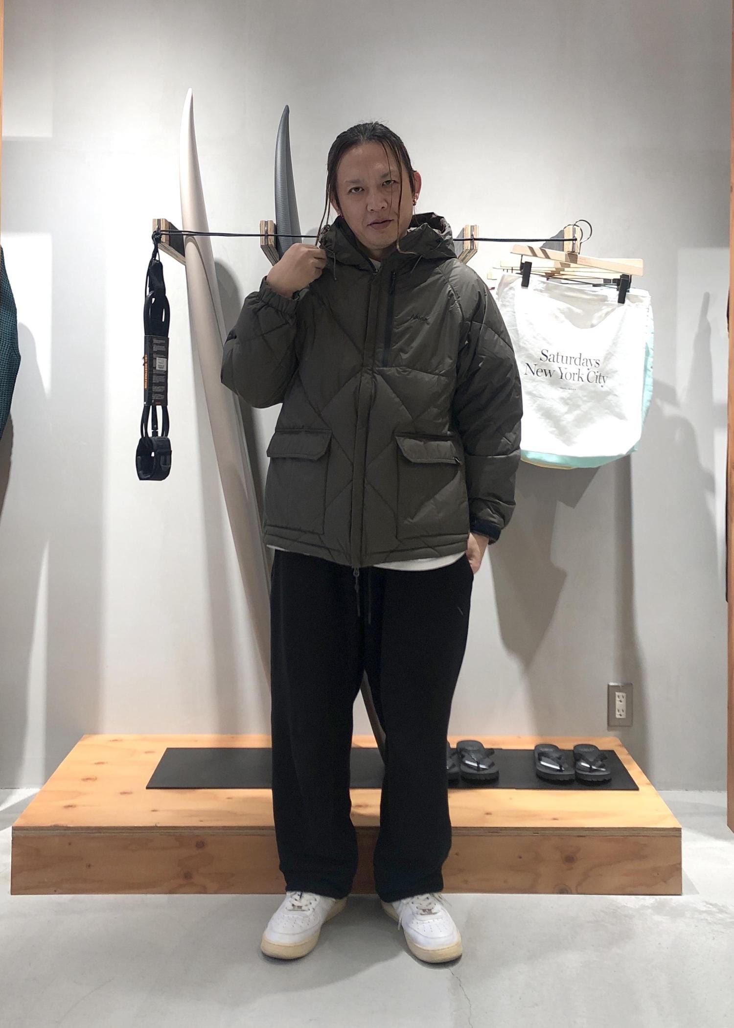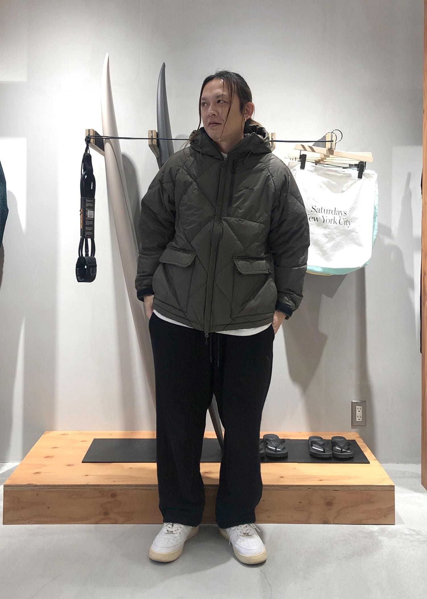 アウターは、NANGA × Saturdays NYCのキルティングダウンジャケットです。