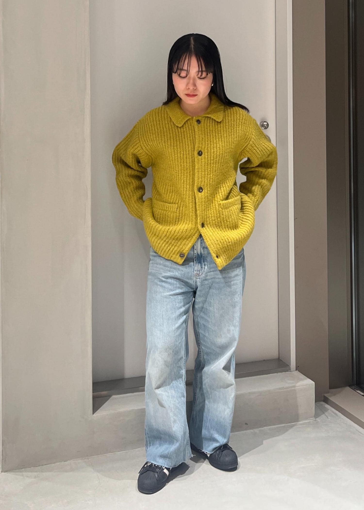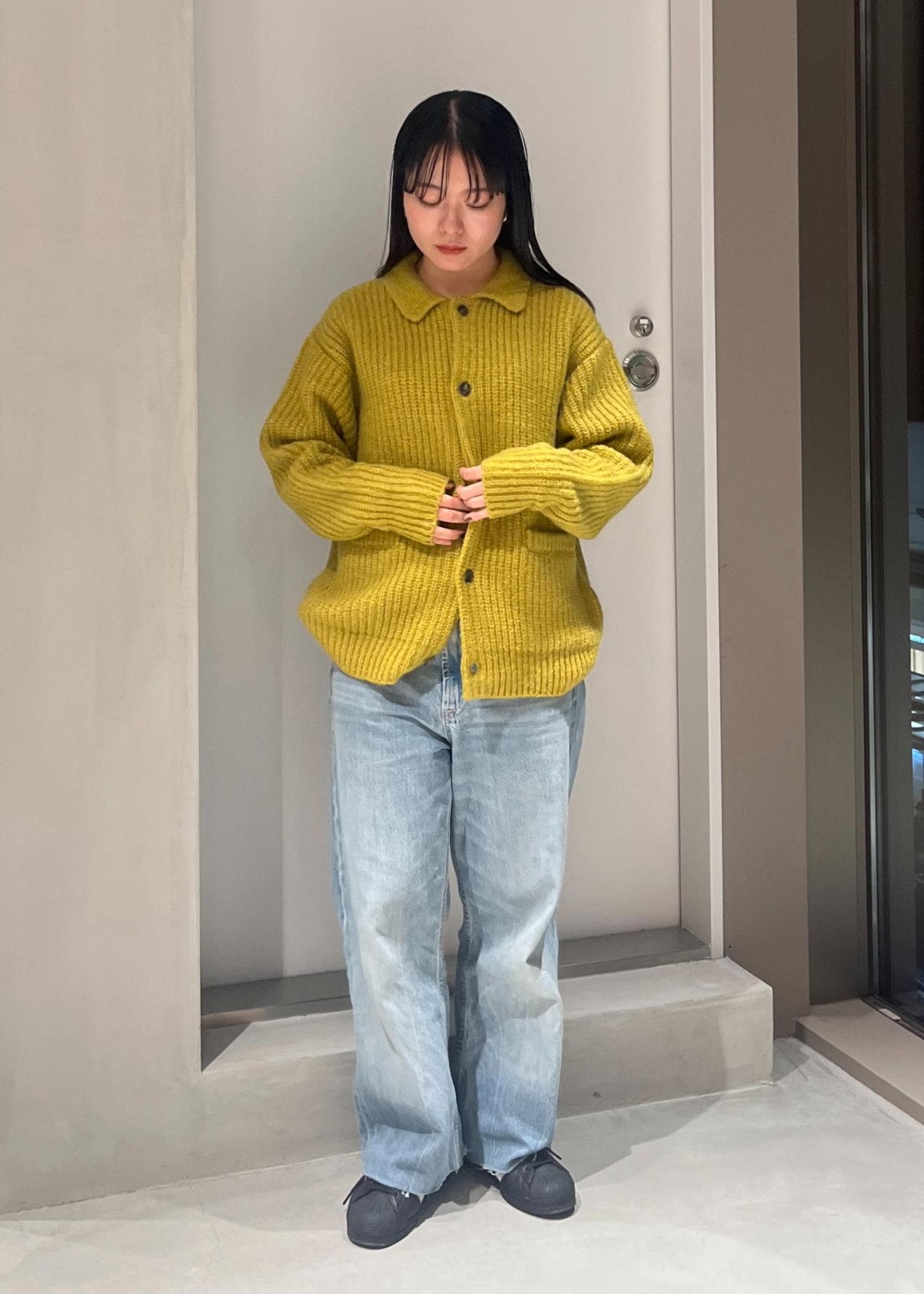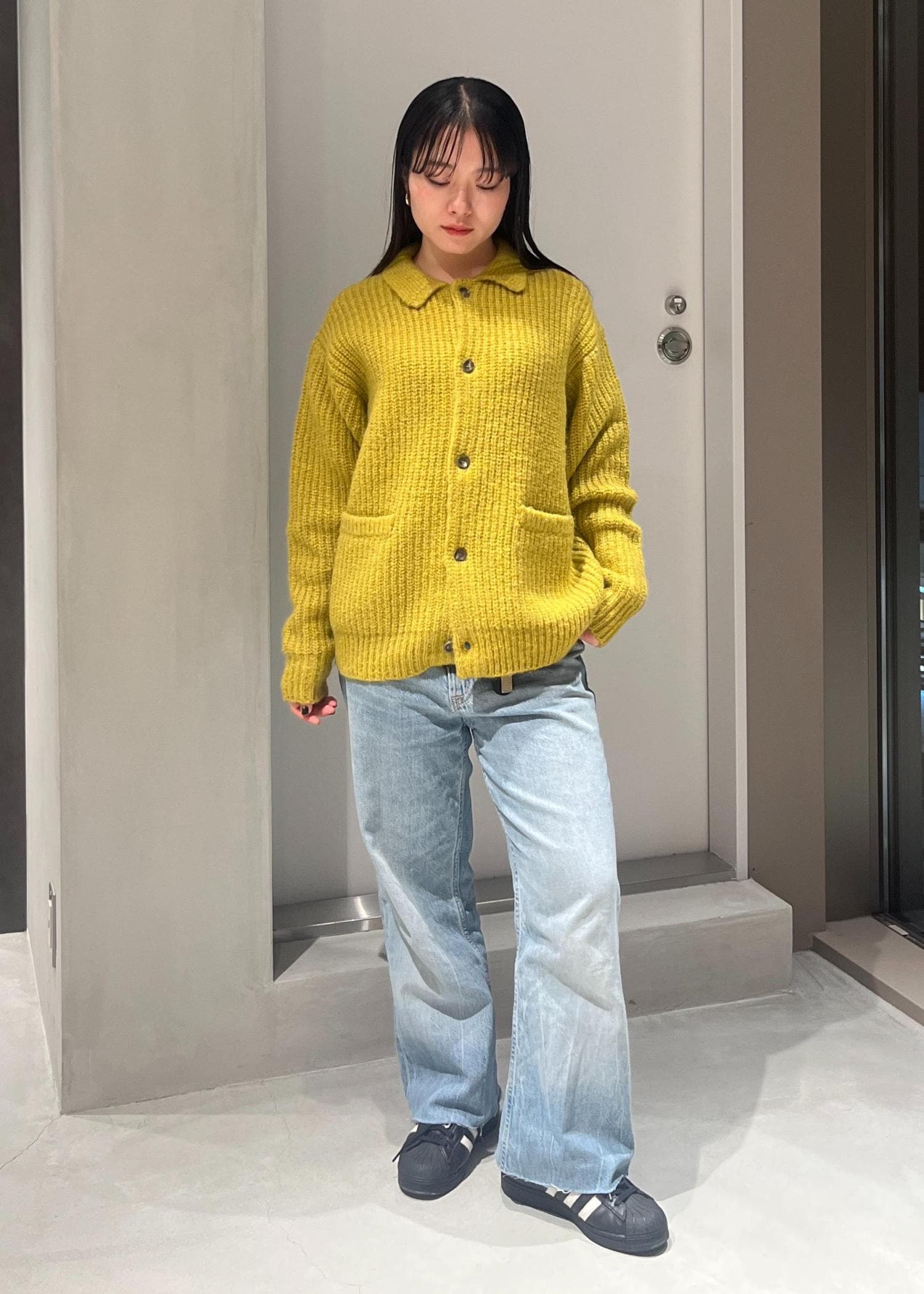 Saturdays NYCJahmad Long Sleeve Cardiganイエロー / M¥29,700レビュー度目が詰まったローゲージの片畦で編み立てたボリュームのあるポロカーディガンです。