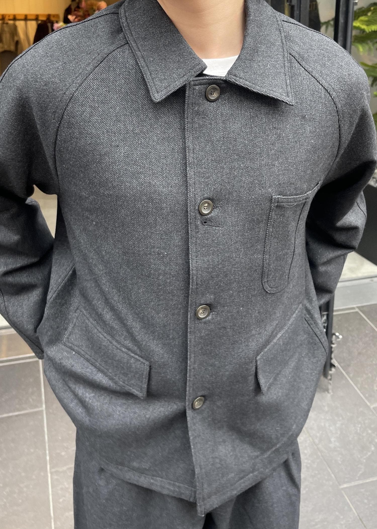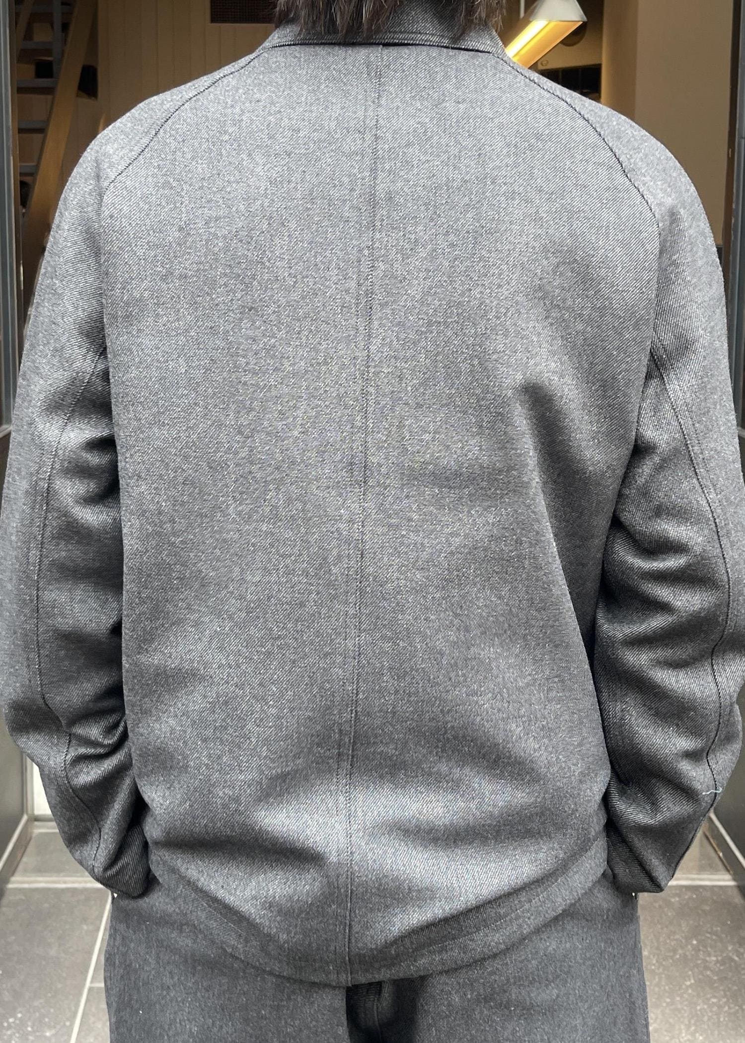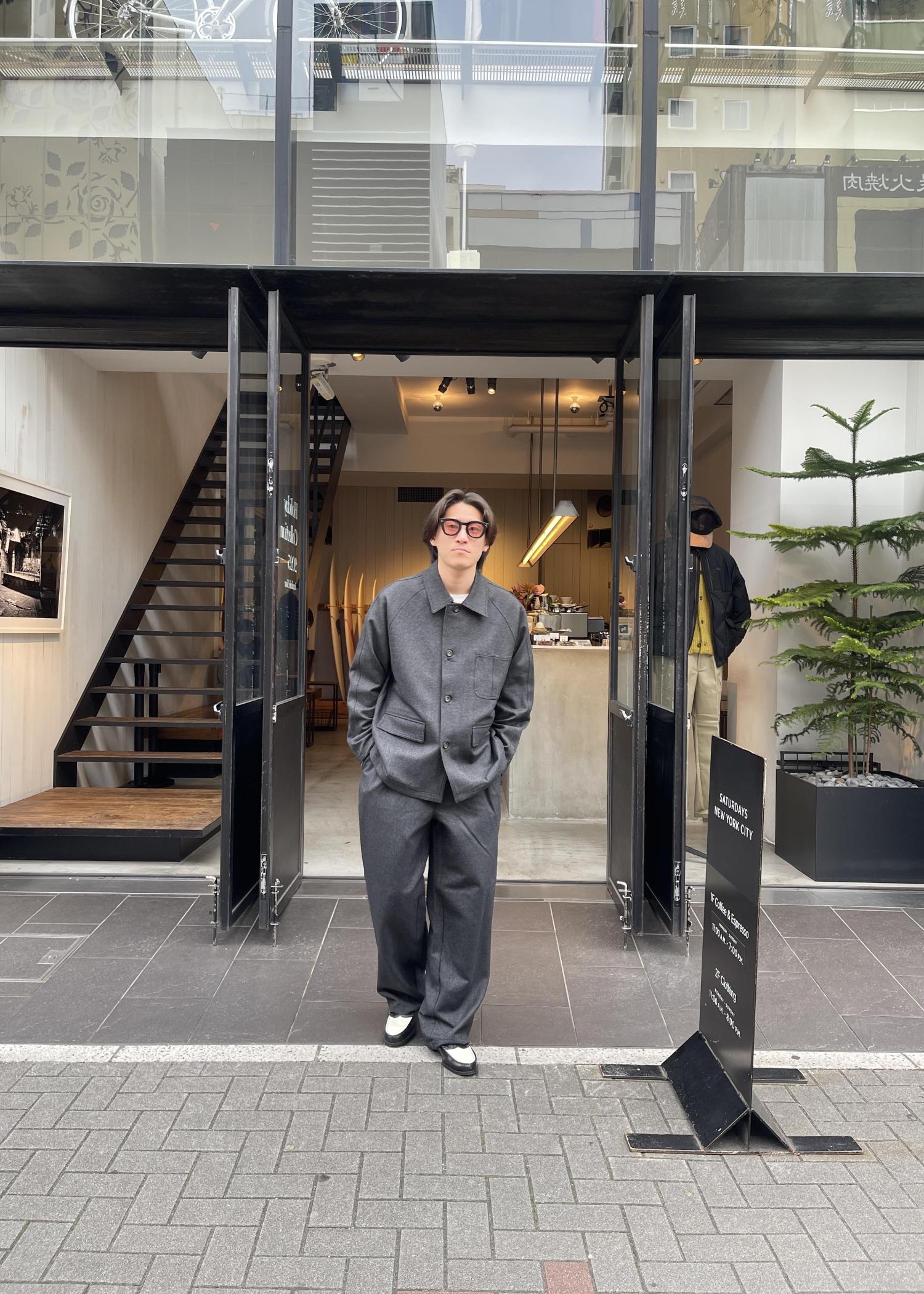 ジャケットは、ボリュームはありつつもカジュアルすぎないシルエットでラグランスリーブなのが特徴