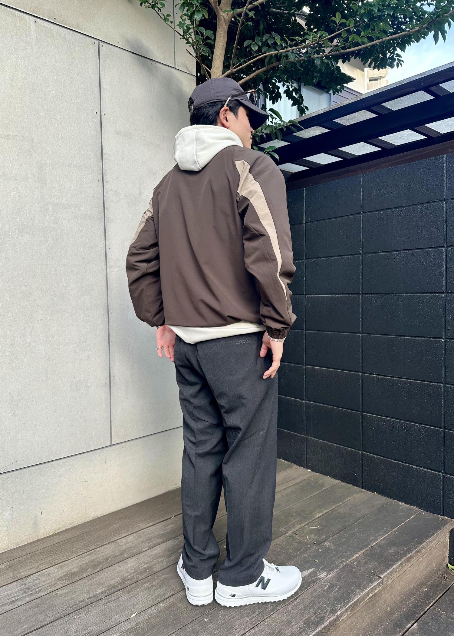 秋、冬、春幅広いシーズンで着用していただけるスタイリングになっています。パーカーは袖部分がポリエステルになっている為、プレー中もとても動きやすくてオススメのポイントです。