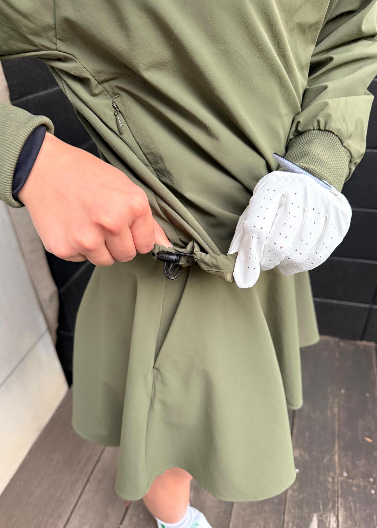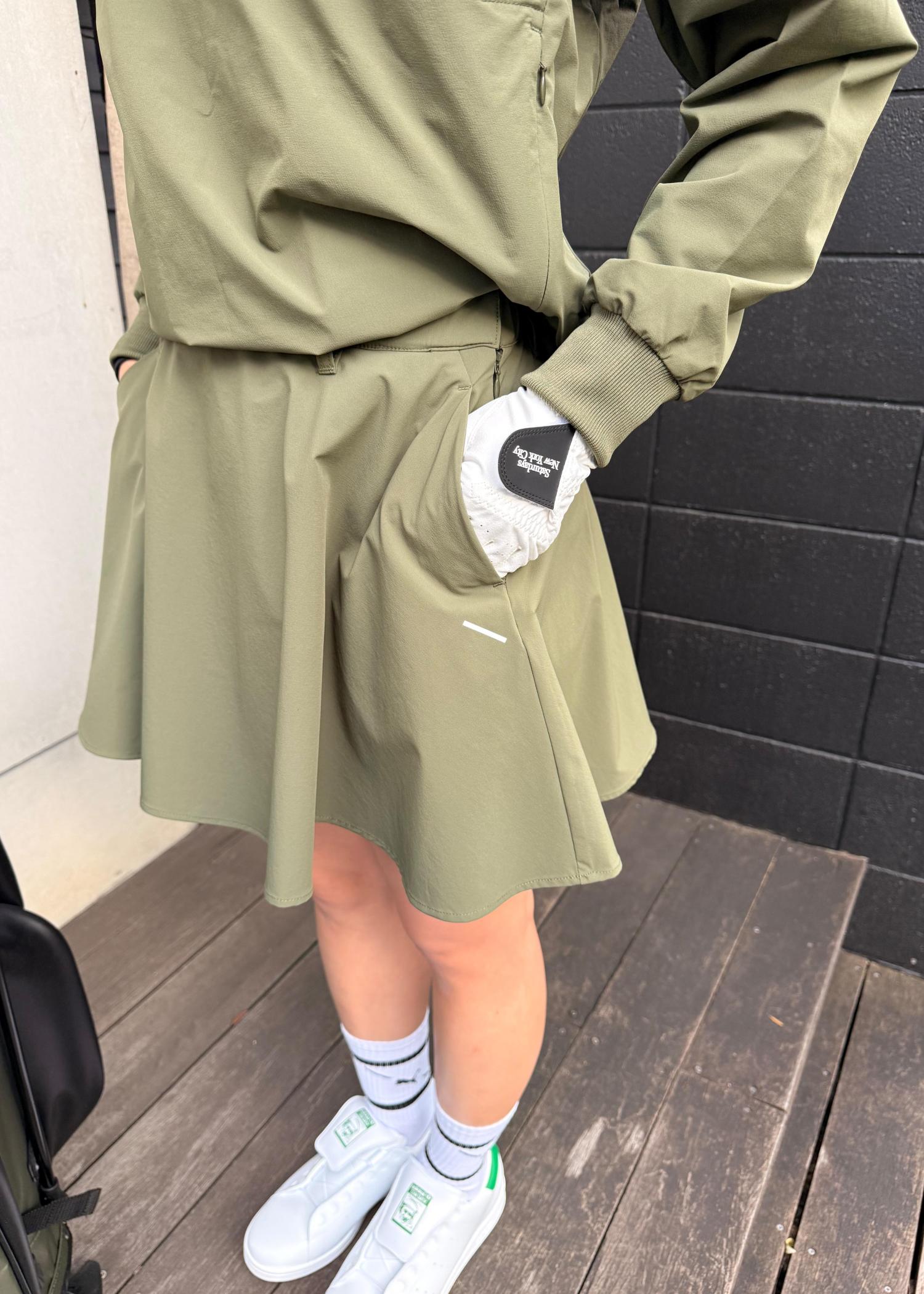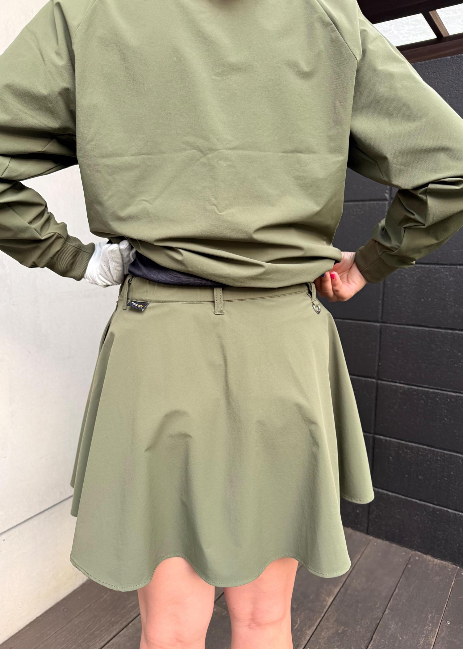 NEW!Saturdays NYCCORDURA Flared Skirt | WOMENオリーブ / M¥24,200レビュー構えた時に前の裾が膝まで来ると長く見えてしまうので後ろだけ少し長めになっています!