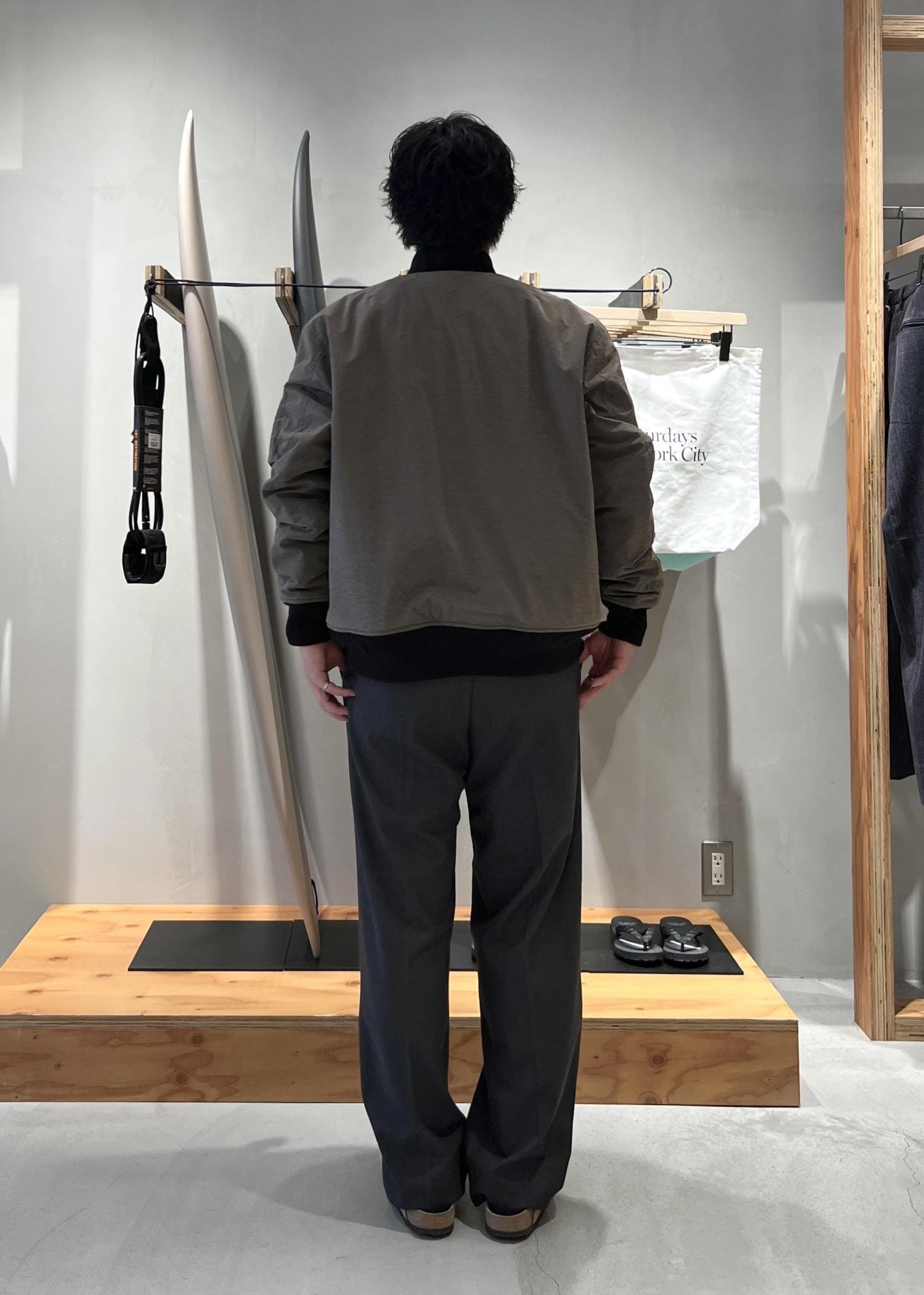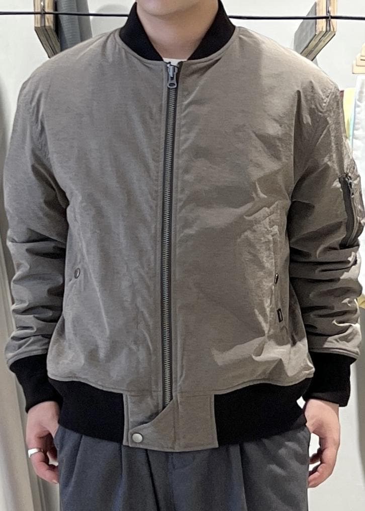今回着用しておりますブルゾンは、定番のMA-1をベースに、フロント裾のフラップや敢えて表に出したポケットのステッチなどよりフライトジャケットらしさを表現されています!