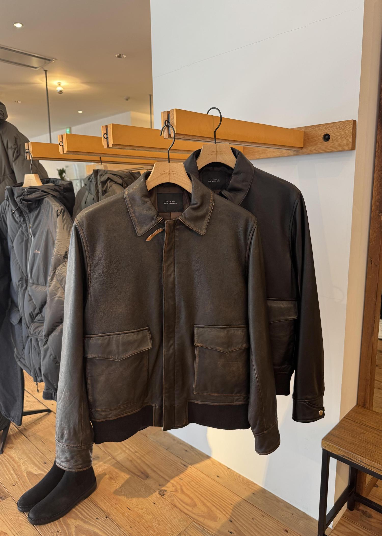 今期のレザージャケットはラムレザーで作られています。生地感、着心地ともに最高です。