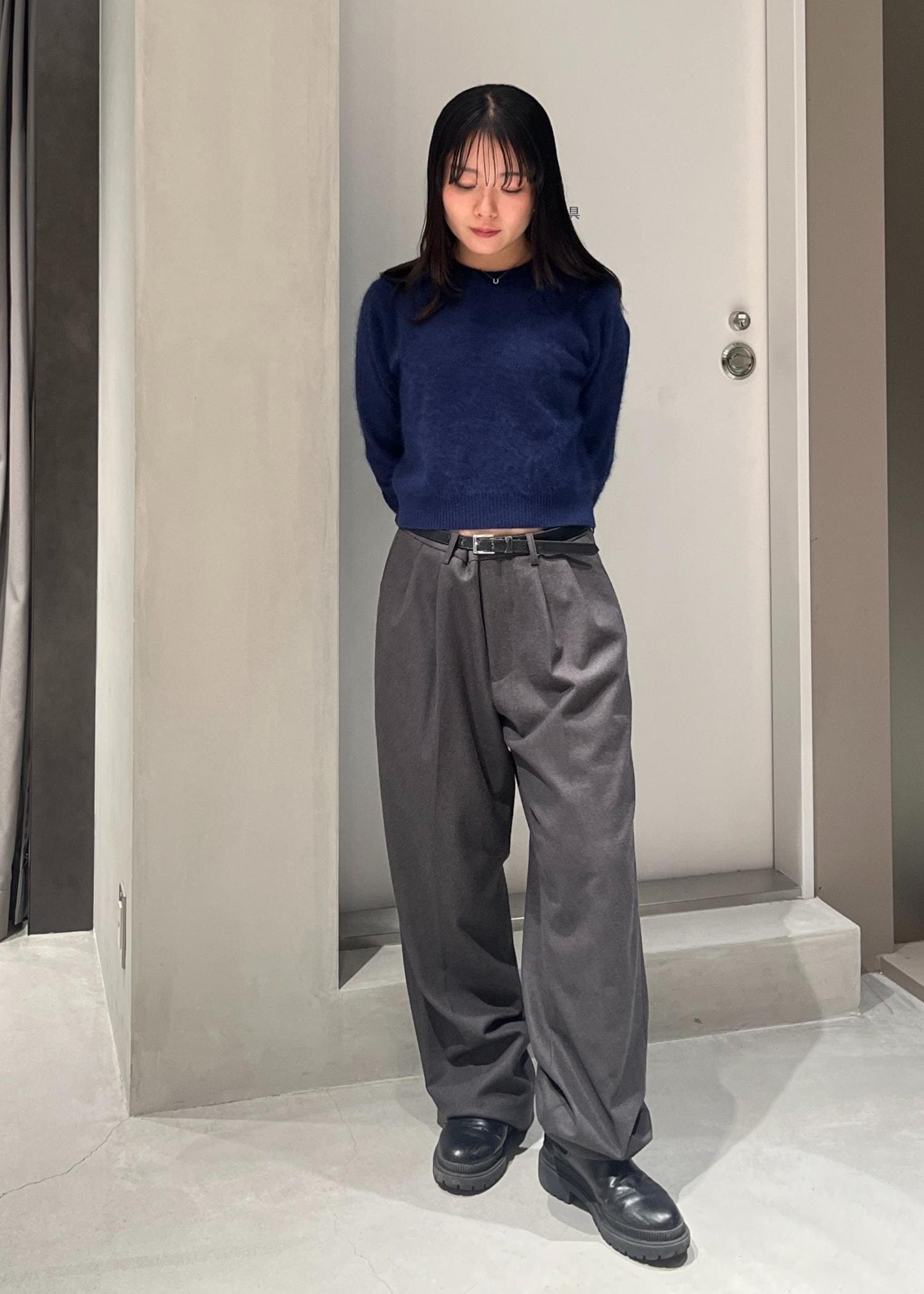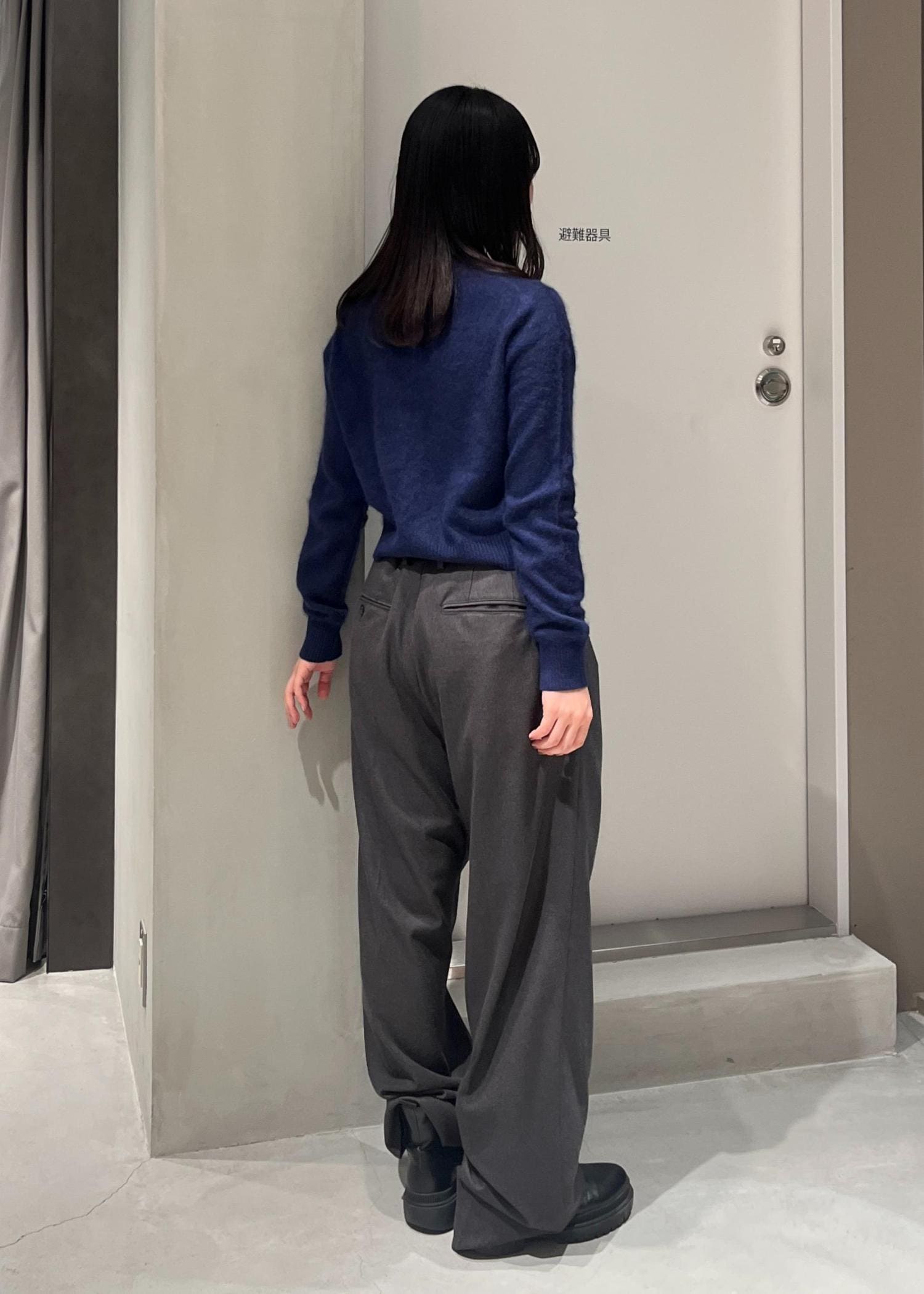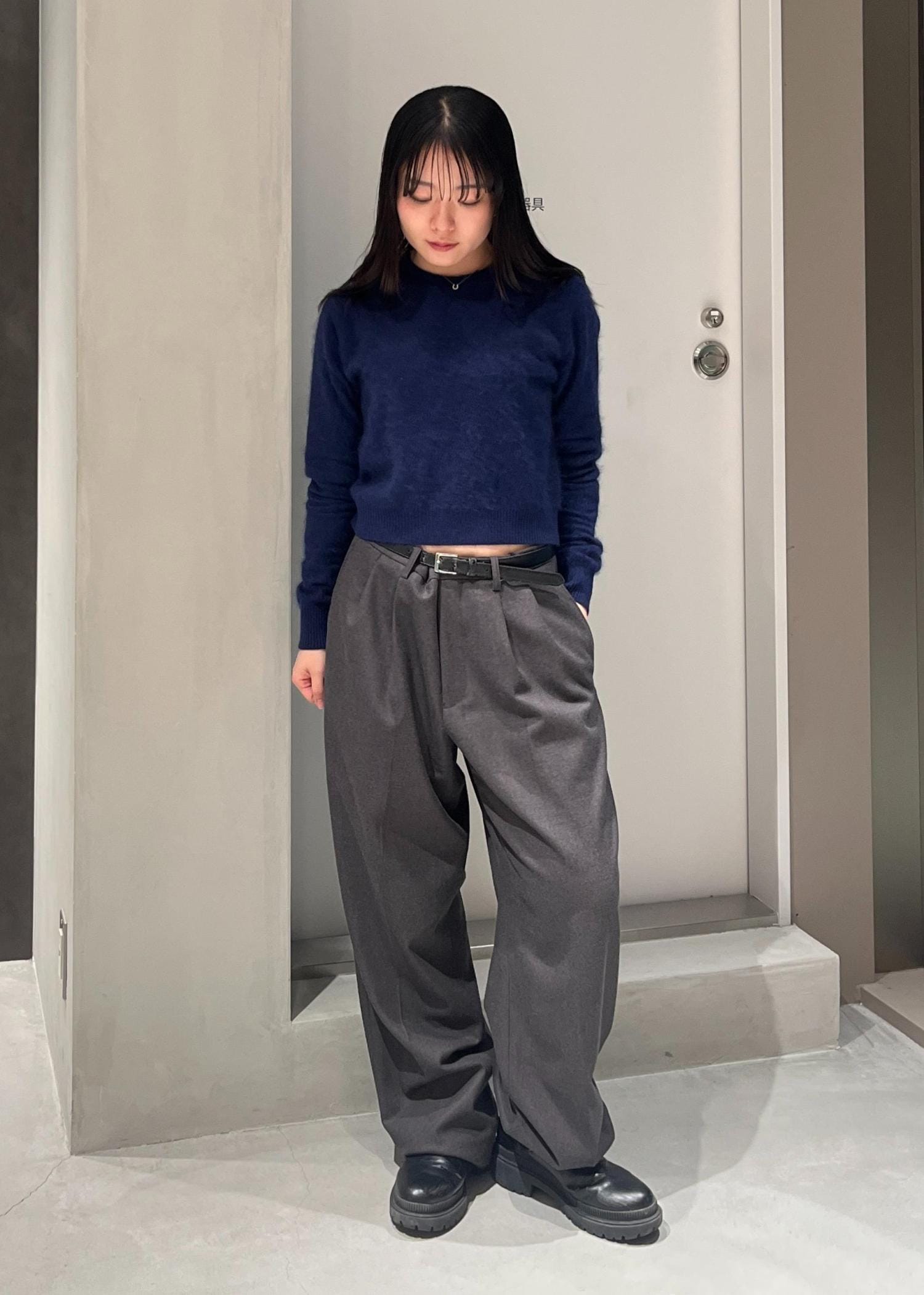 ブルーのニットと合わせて落ち着いた雰囲気のスタイリングにしました!