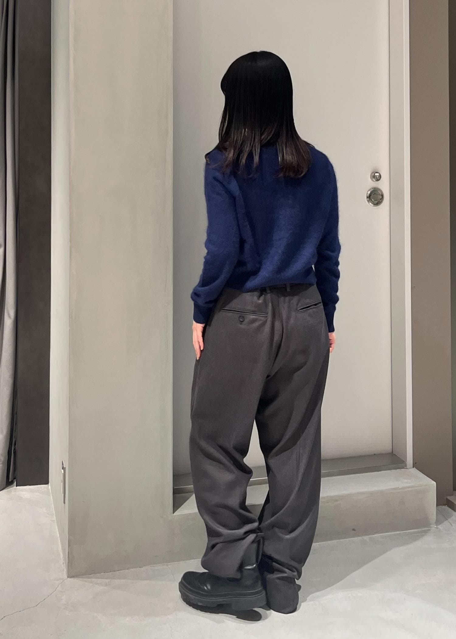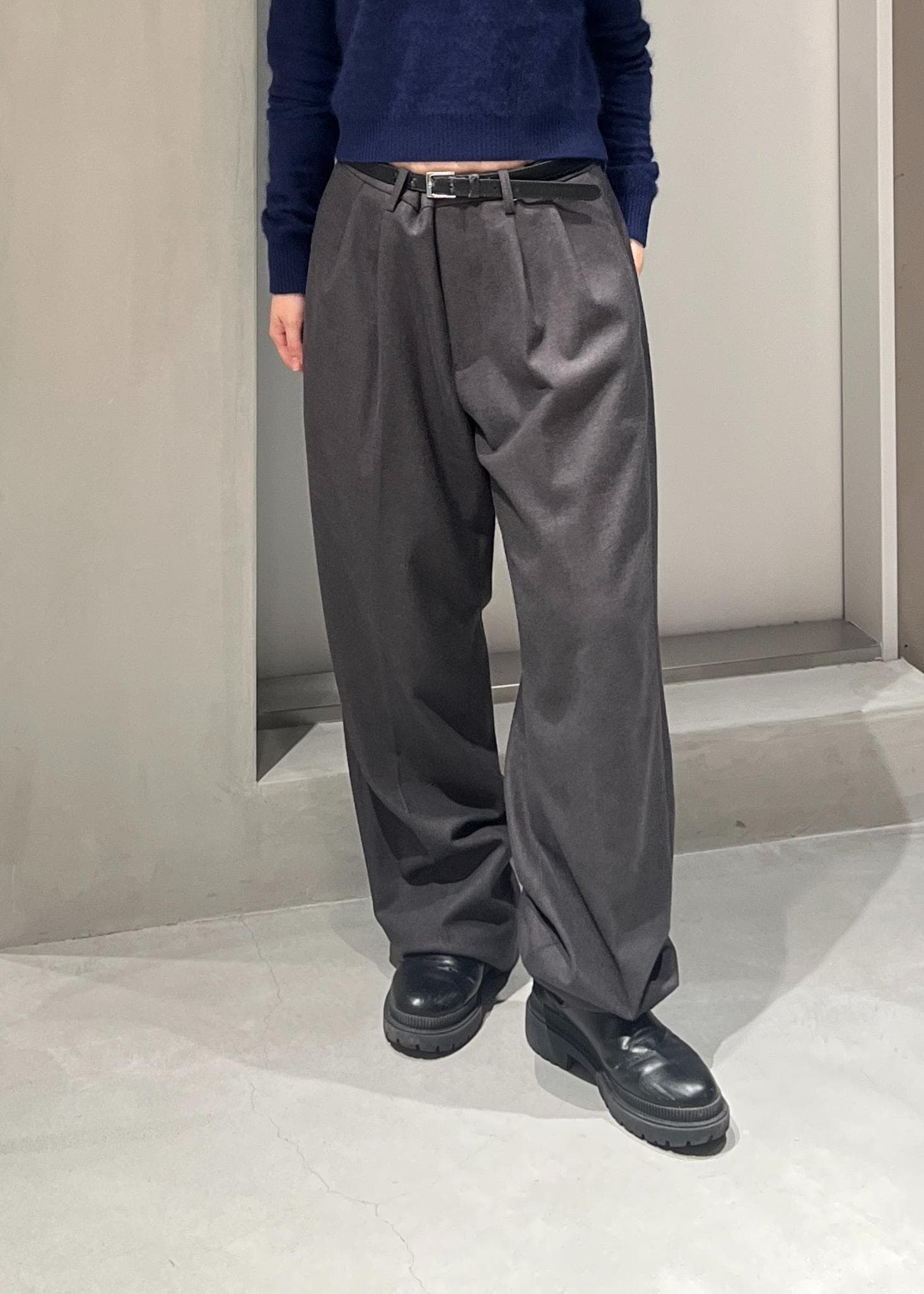 Saturdays NYCGeorge Flannel Two Tuck Pantsチャコール / S¥27,500レビュー2タックから入るゆとりある腰回りから、綺麗なラインで伸びるセミテーパードシルエットは大人のリラックスシルエットを表現したパターンになっています。