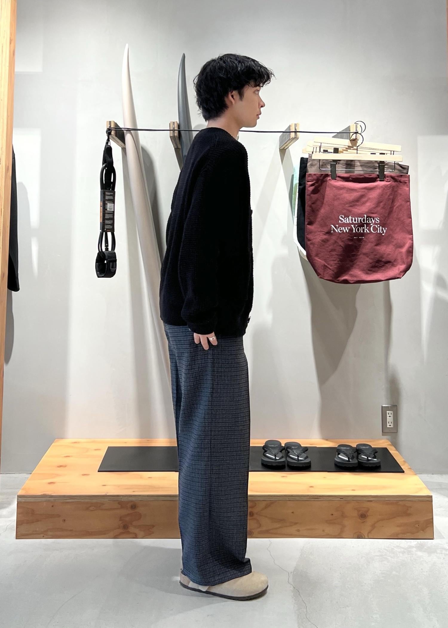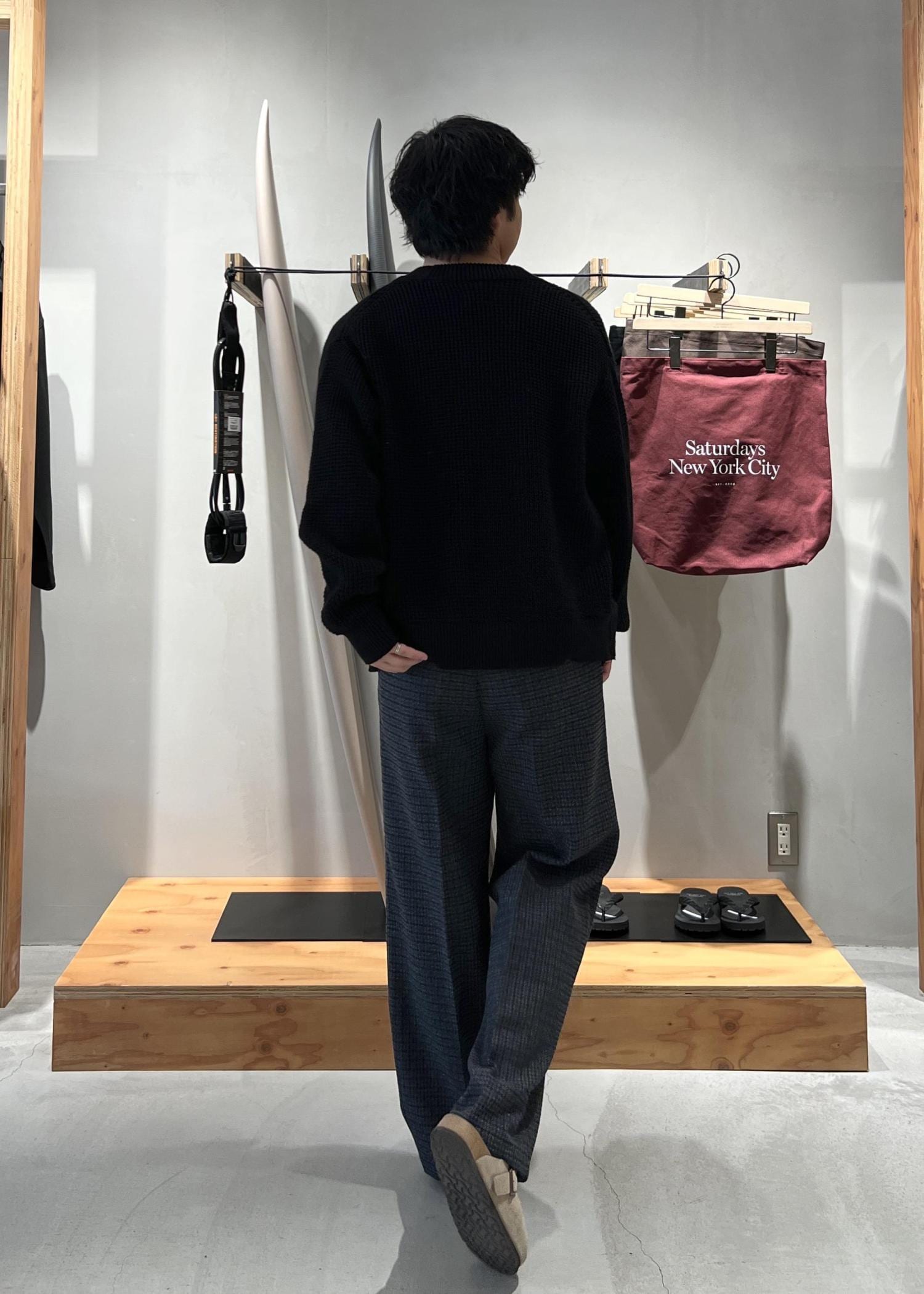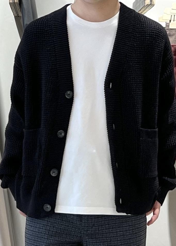 今回着用しております、ローゲージのワッフルカーディガンは、短めの丈でワイドシルエットというトレンド感があるデザインとなっております!