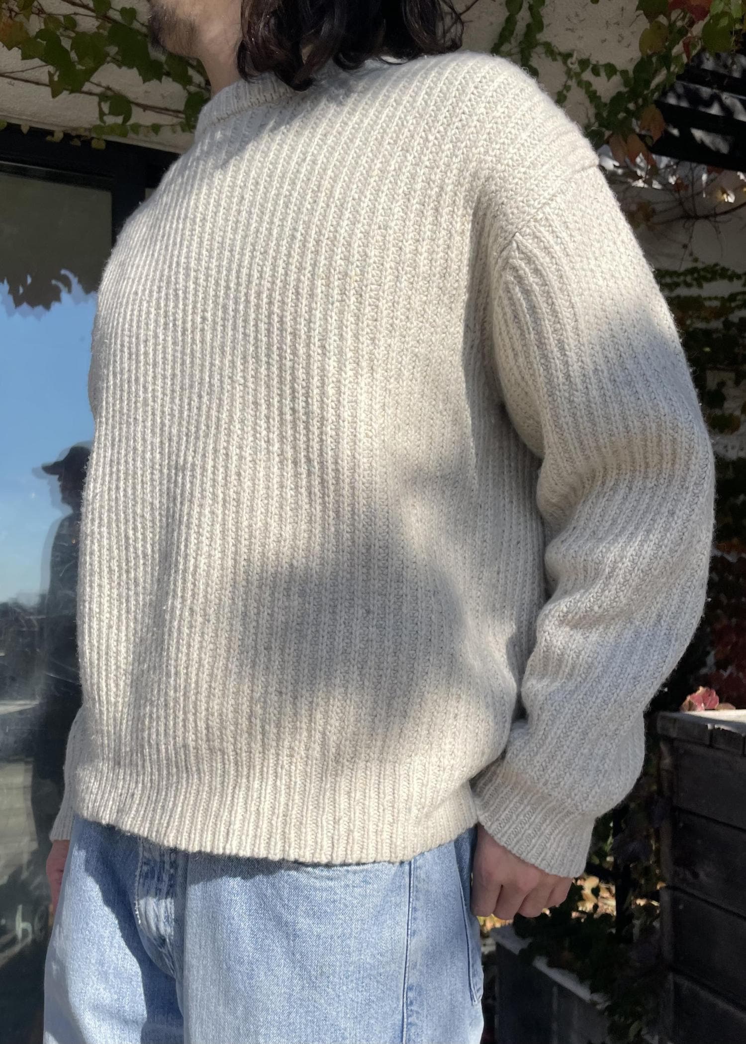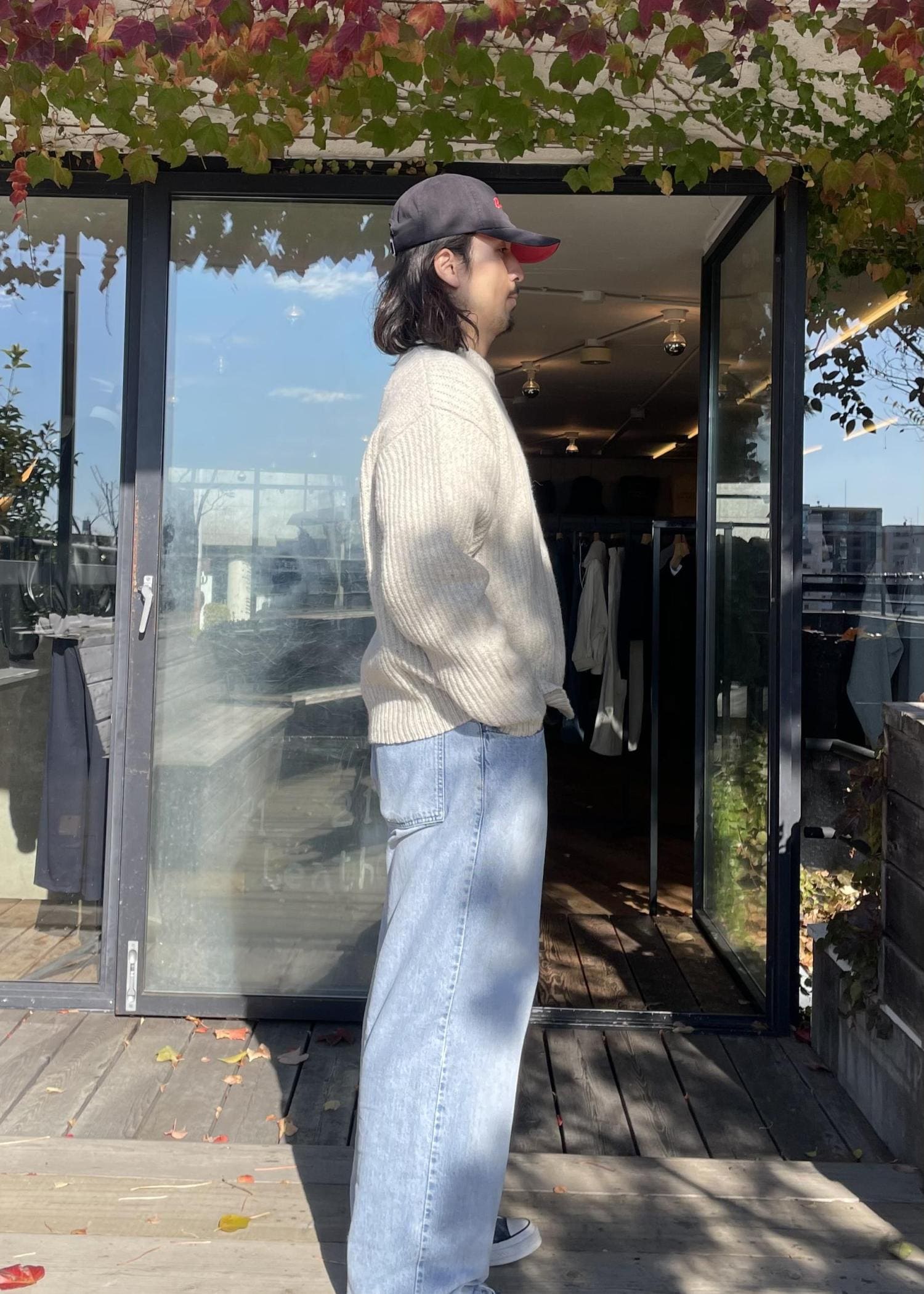 丈が少し短めで身幅があるデザインなので、スタイルが良く見えるニットデザイン!