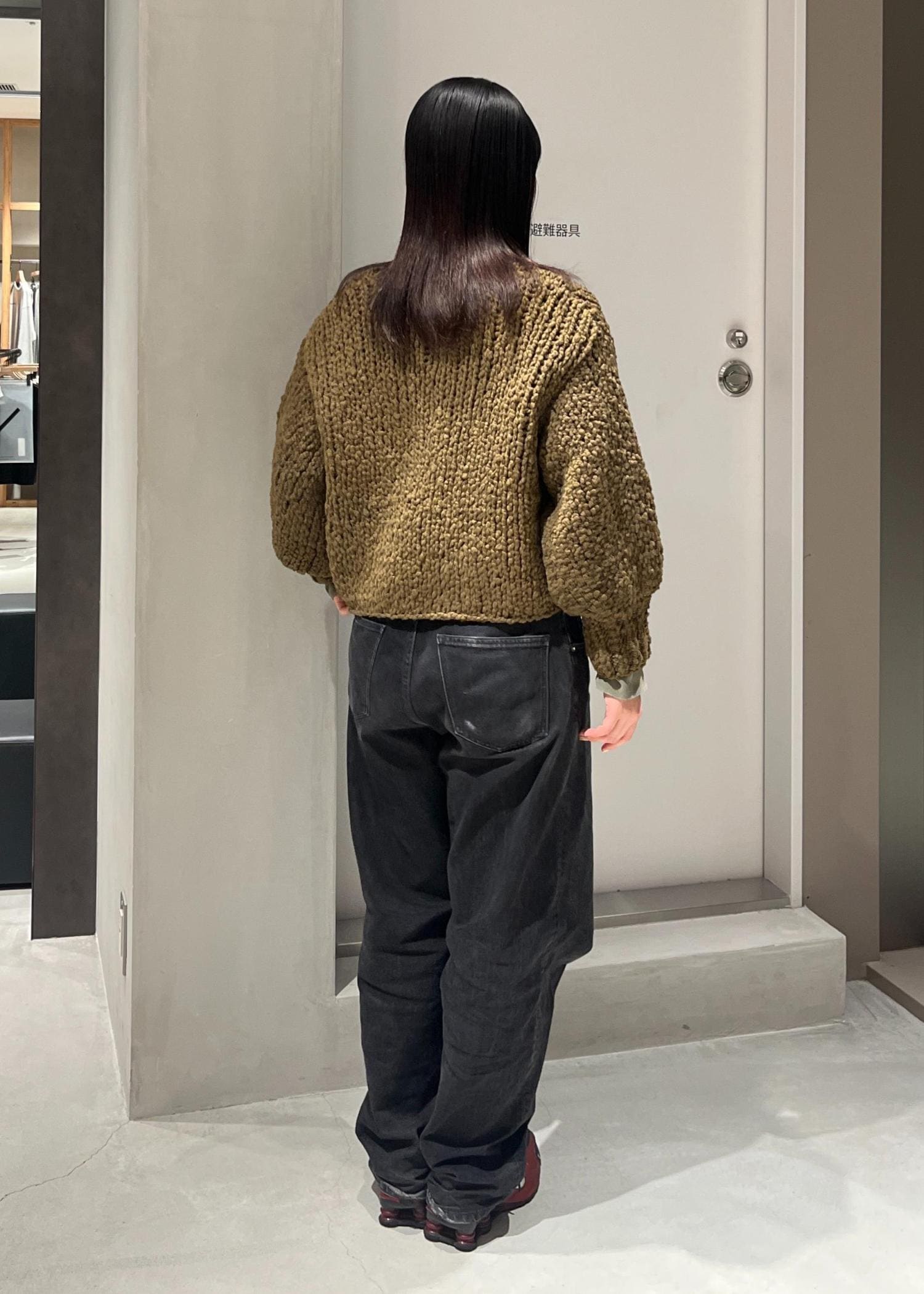 ハンドニットならではのふくらみのある編み目と自然な弾力で着心地も良く、軽さと保温性を兼ね備えた素材でこの冬に沢山活躍するアイテムです!