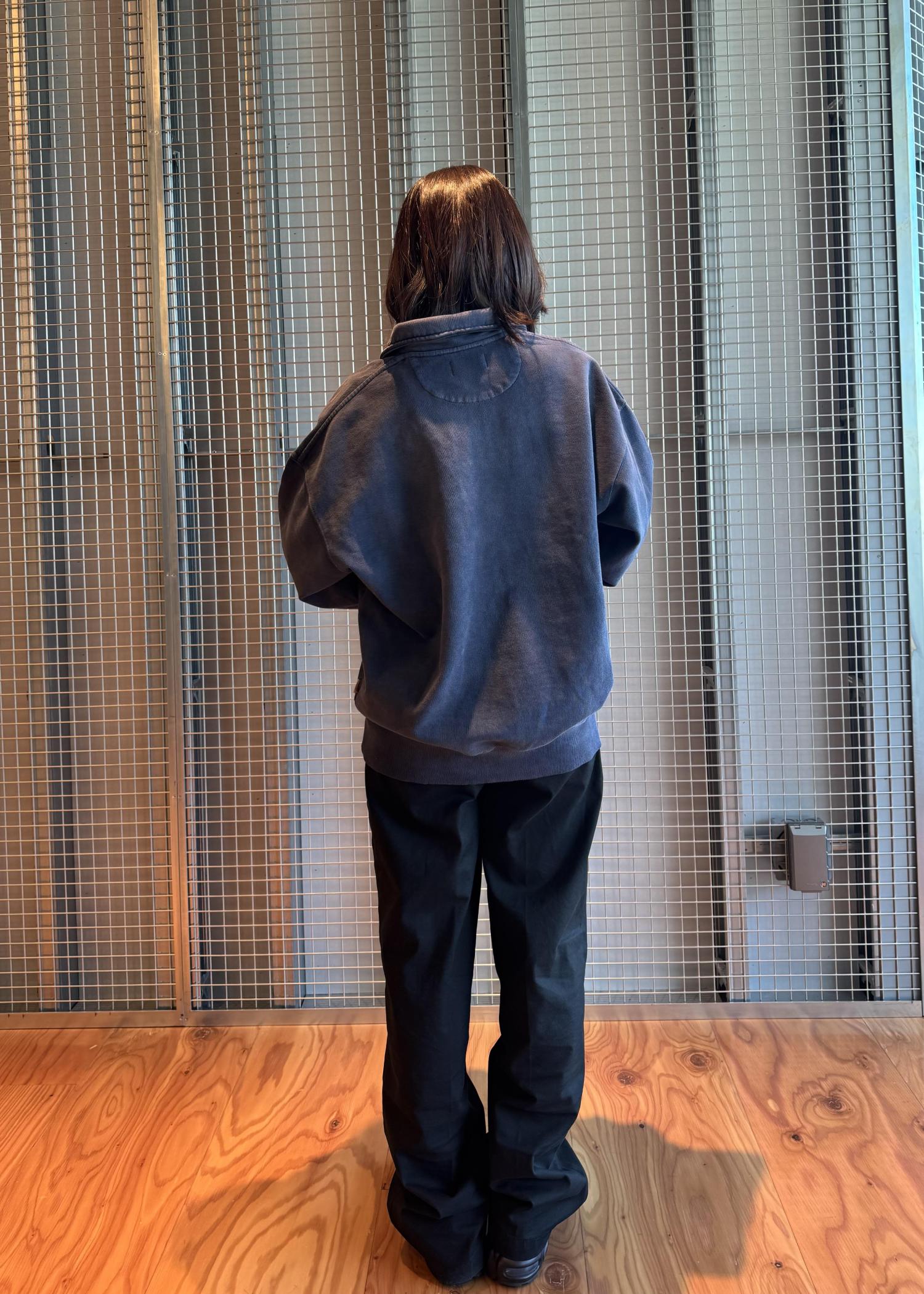 衿付きのジップポロデザインが目を惹くスウェットシャツです!