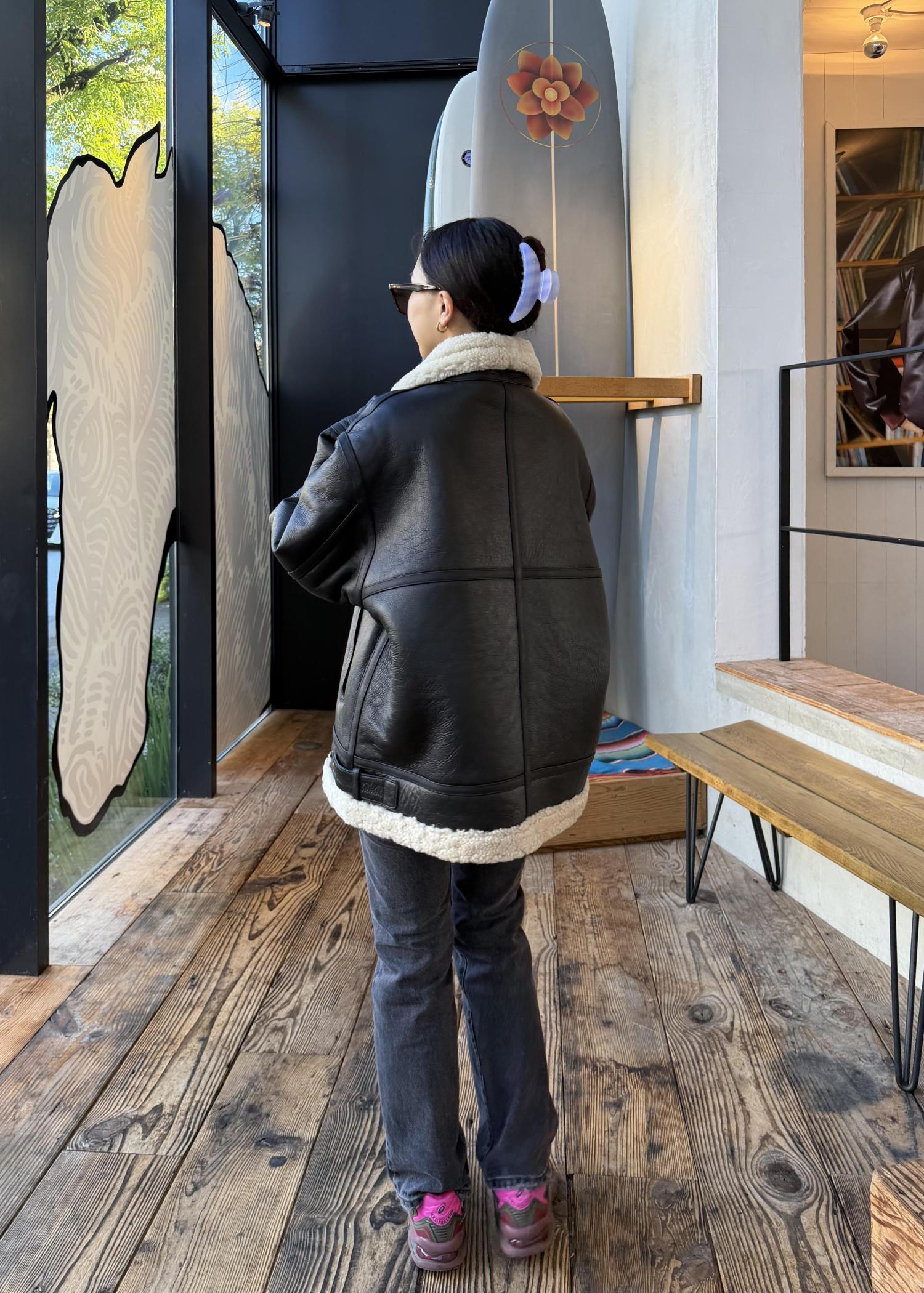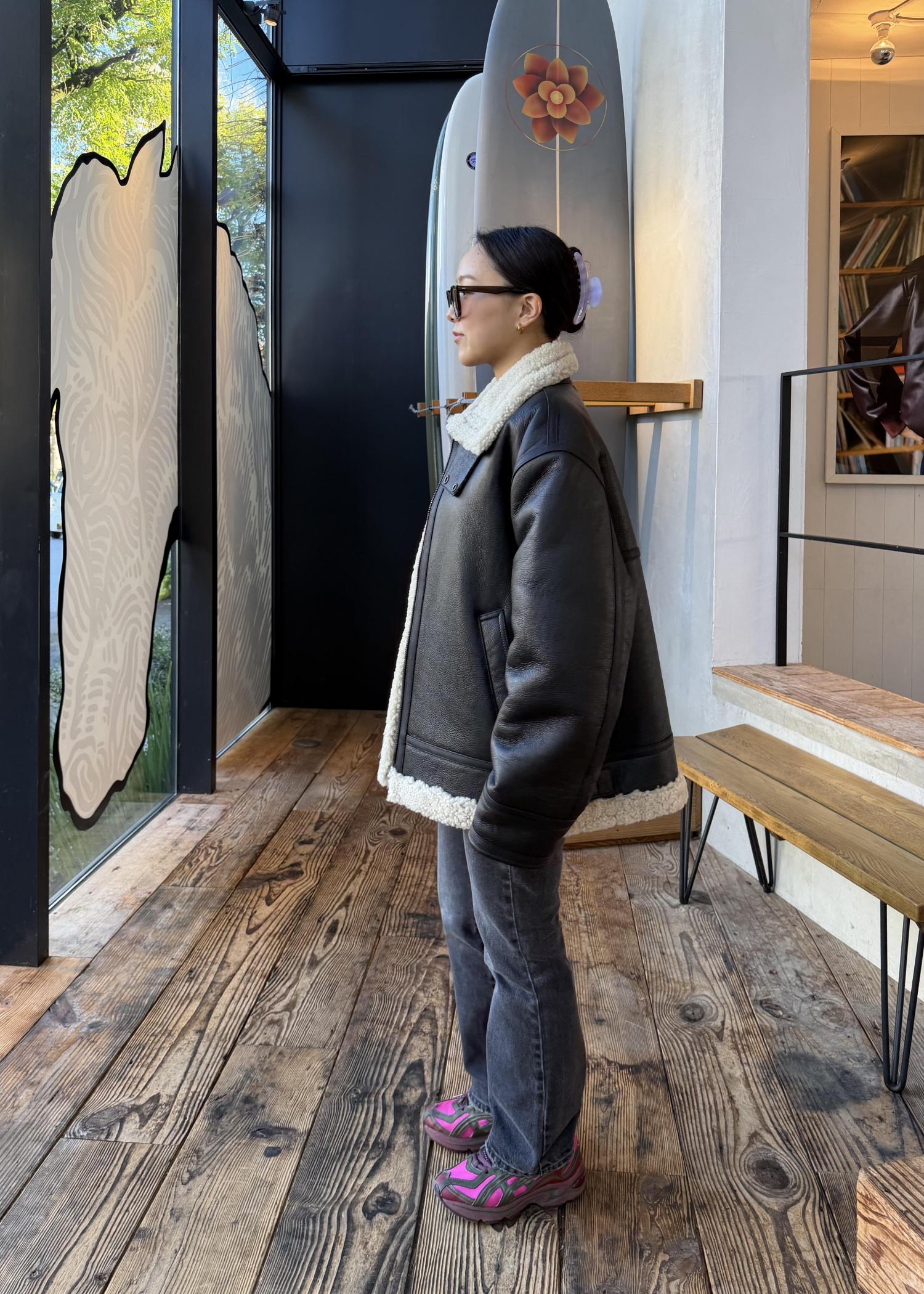 ビンテージのB-3フライトジャケットから着想を得たムートンジャケット。かなり暖かいです