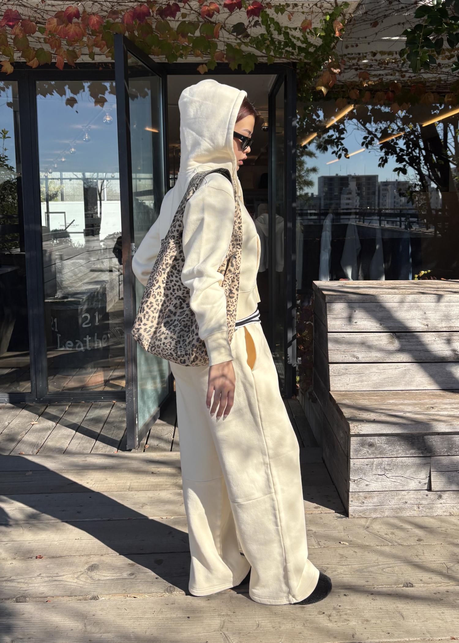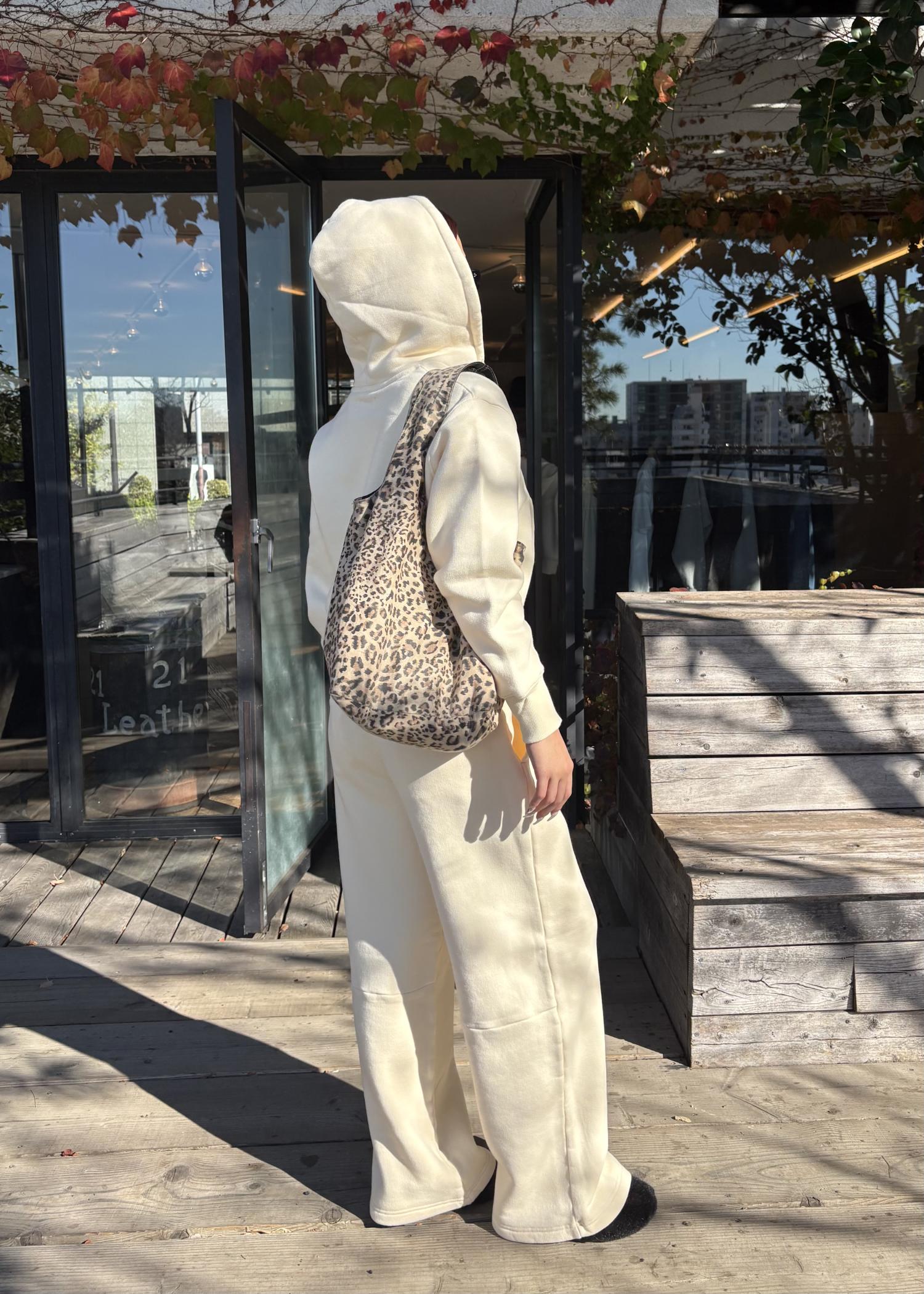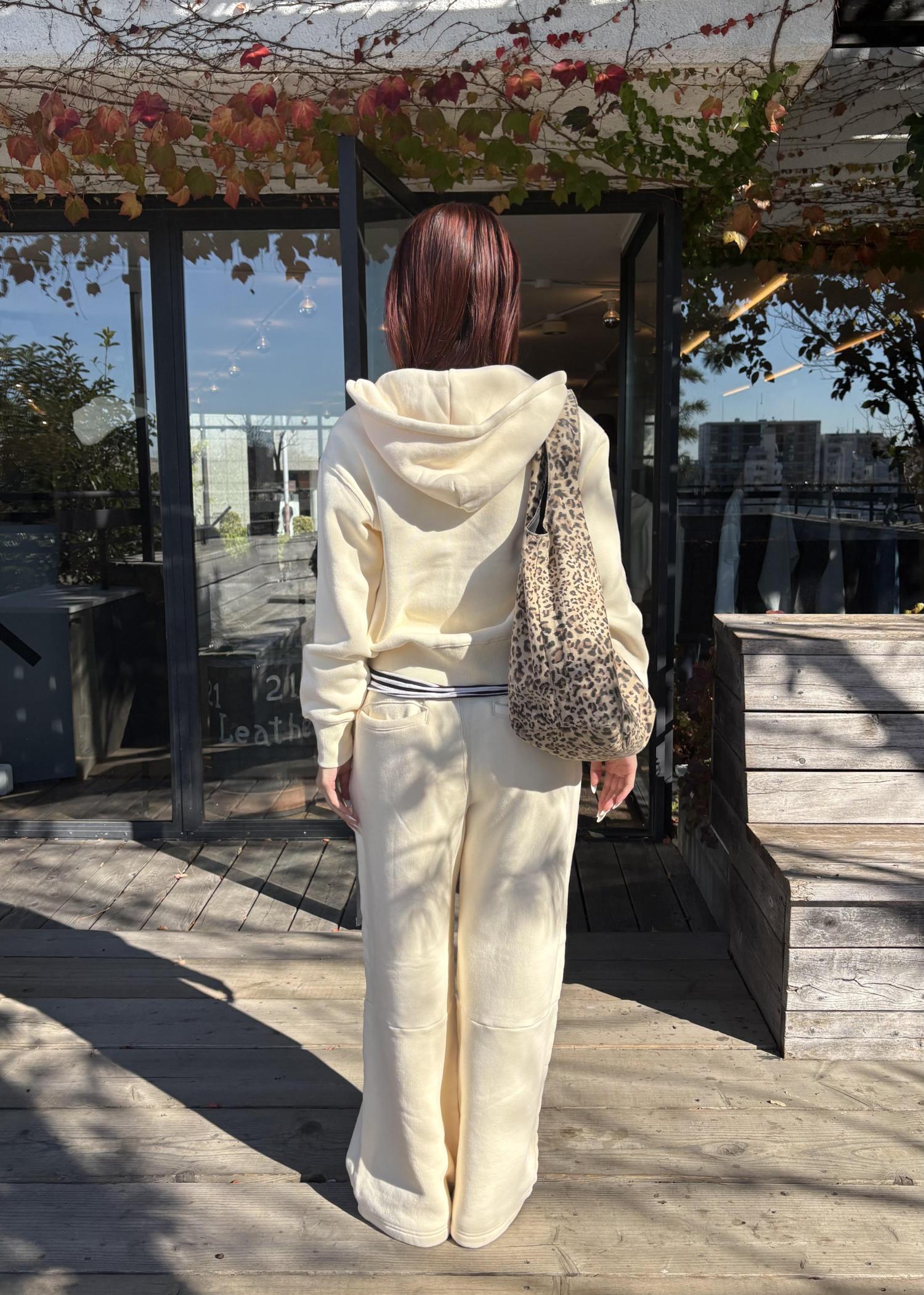 スウェットパンツは、私は165cmでレディースアイテムの場合普段はMサイズを着用するのですが、大きめに履きたかったのでLで合わせています。 ストンと綺麗に足元までシルエットキープされつつ、腰回りのリブが太めだったり、ポケットの使いやすさ、最高です!