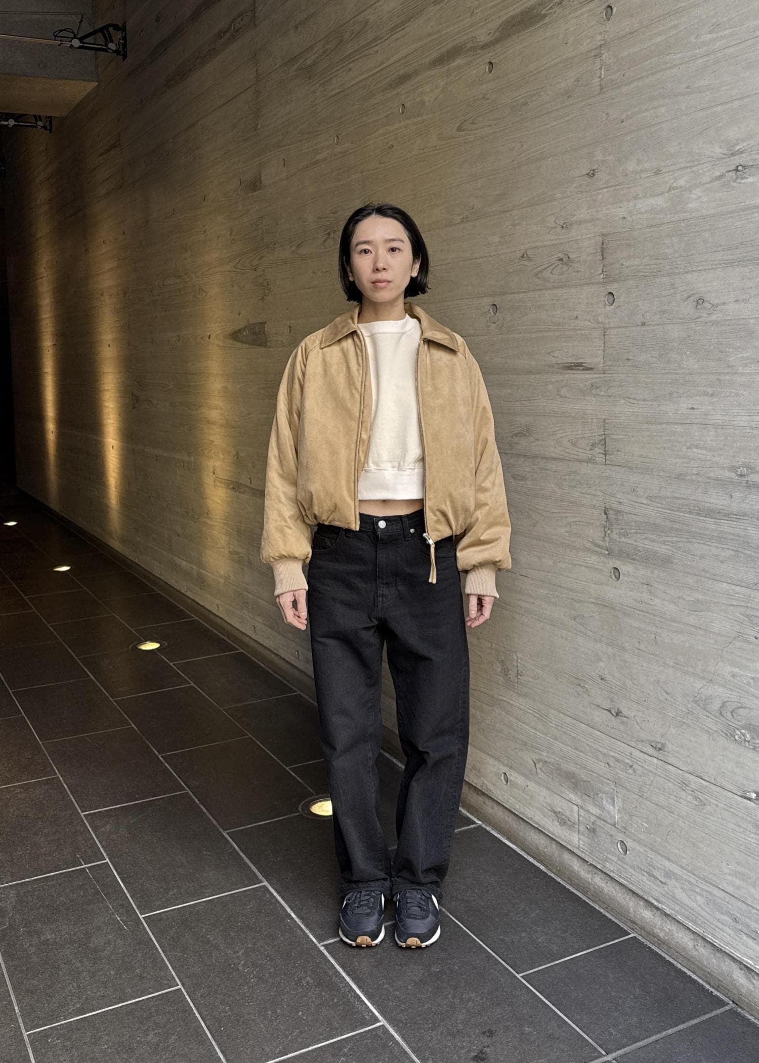 落ち着いた色でシンプルなデザインだからも、細かいディテールがあるので1枚でも決まるのがポイント!