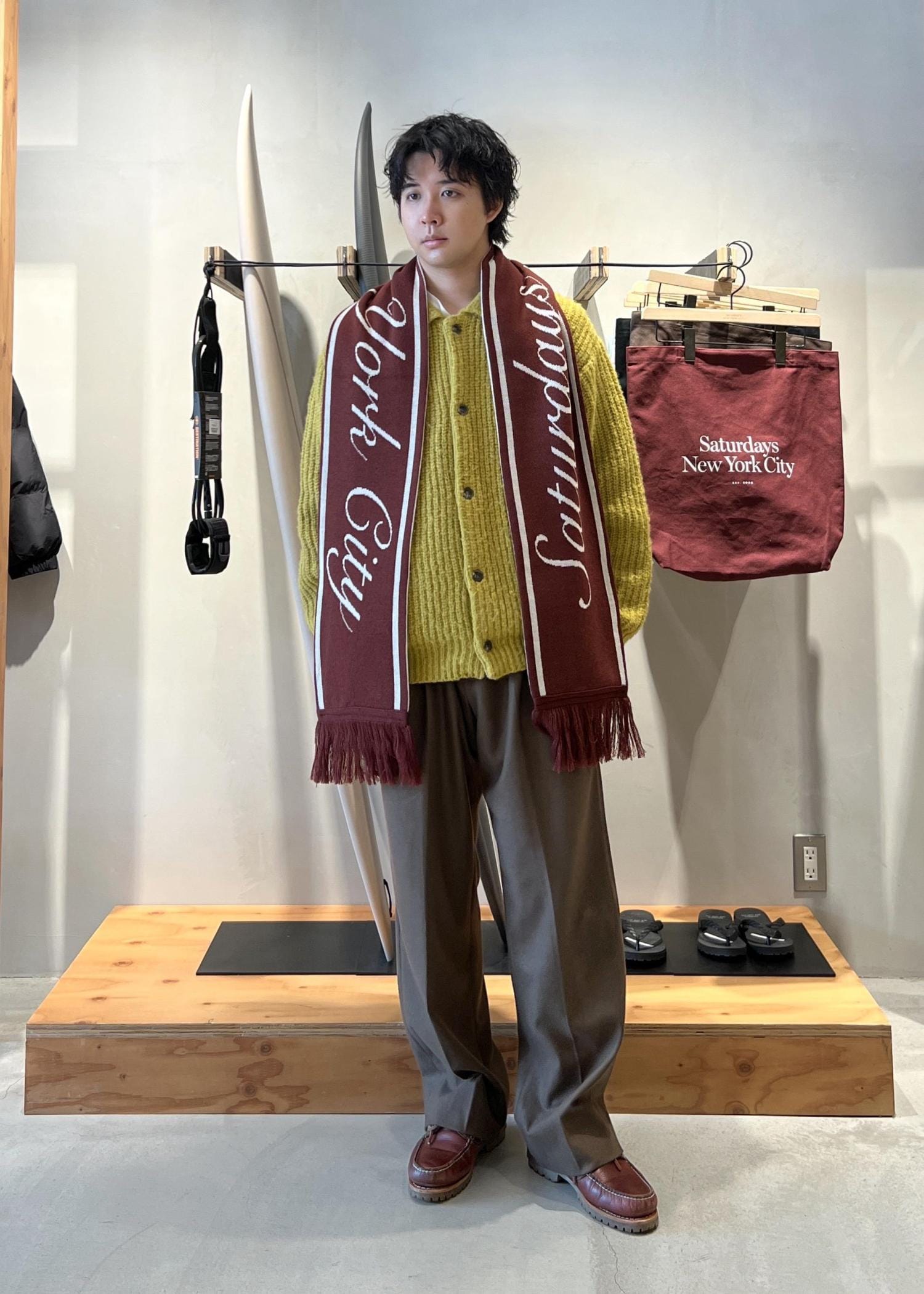 シーズナルロゴを大胆にダブルジャガードで表現したサッカーマフラーは、リバーシブル仕様になっているのもポイントです!◎