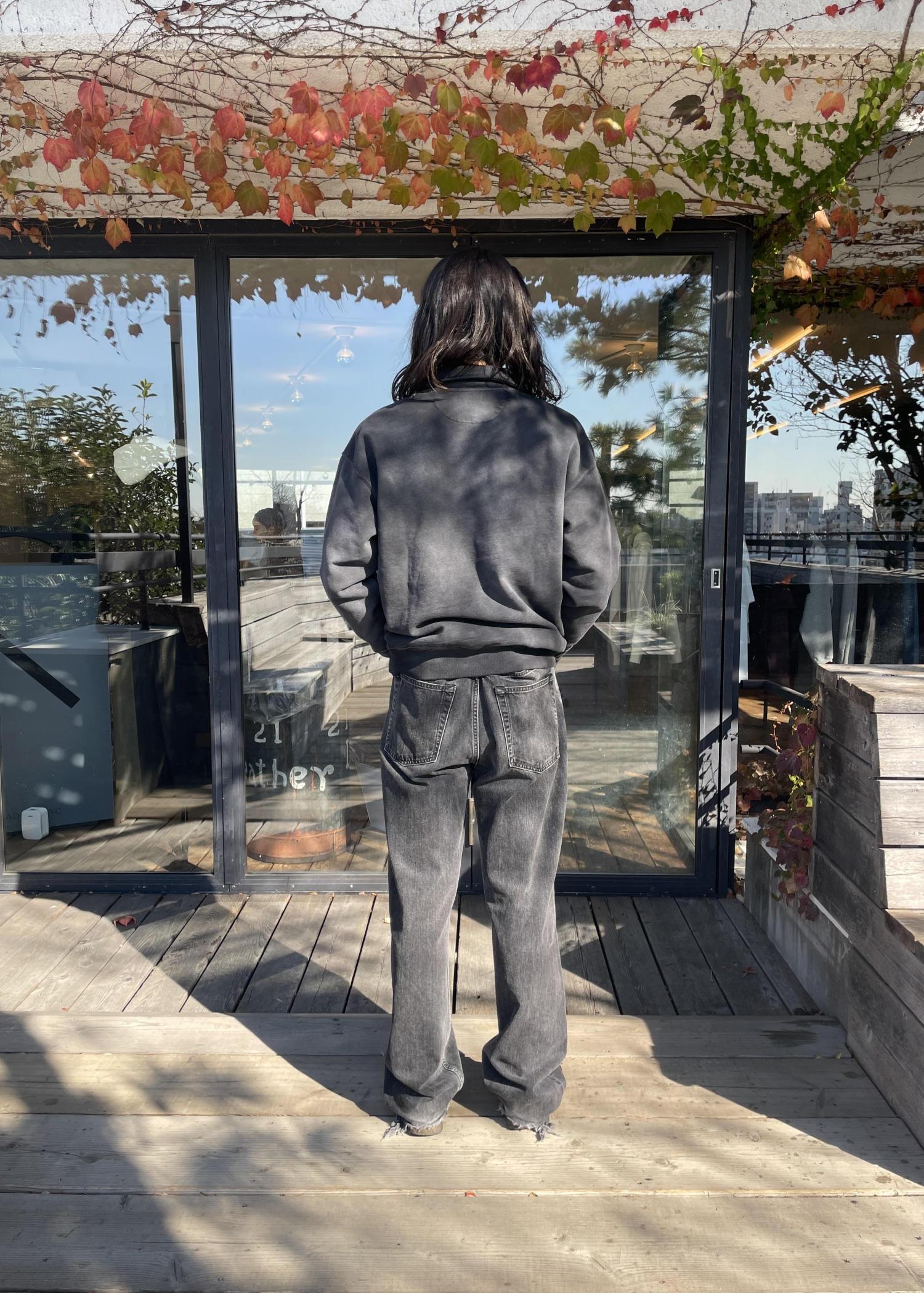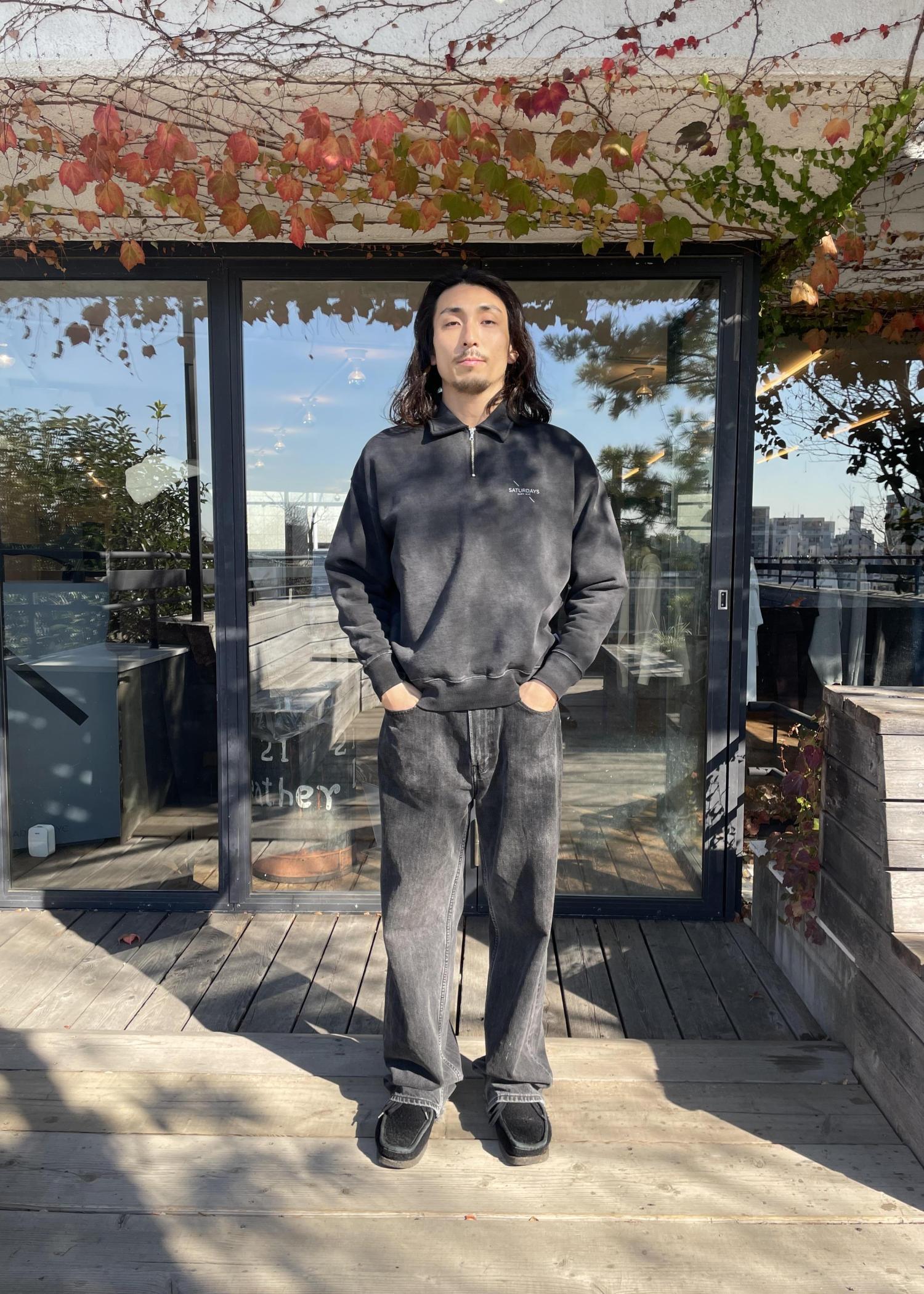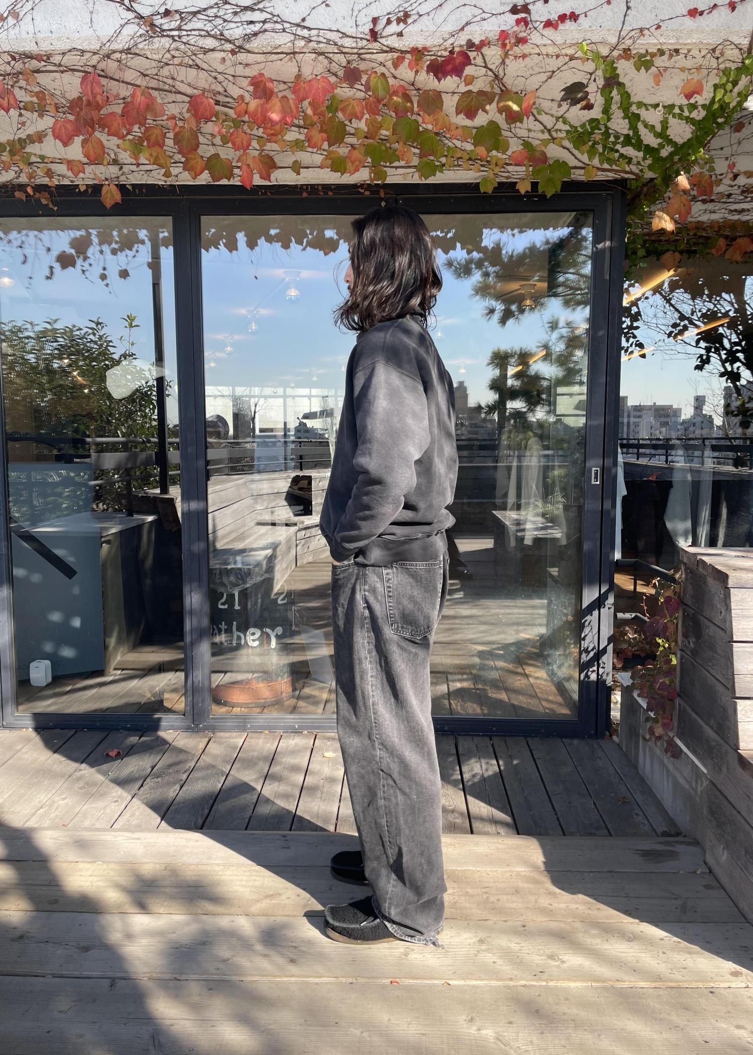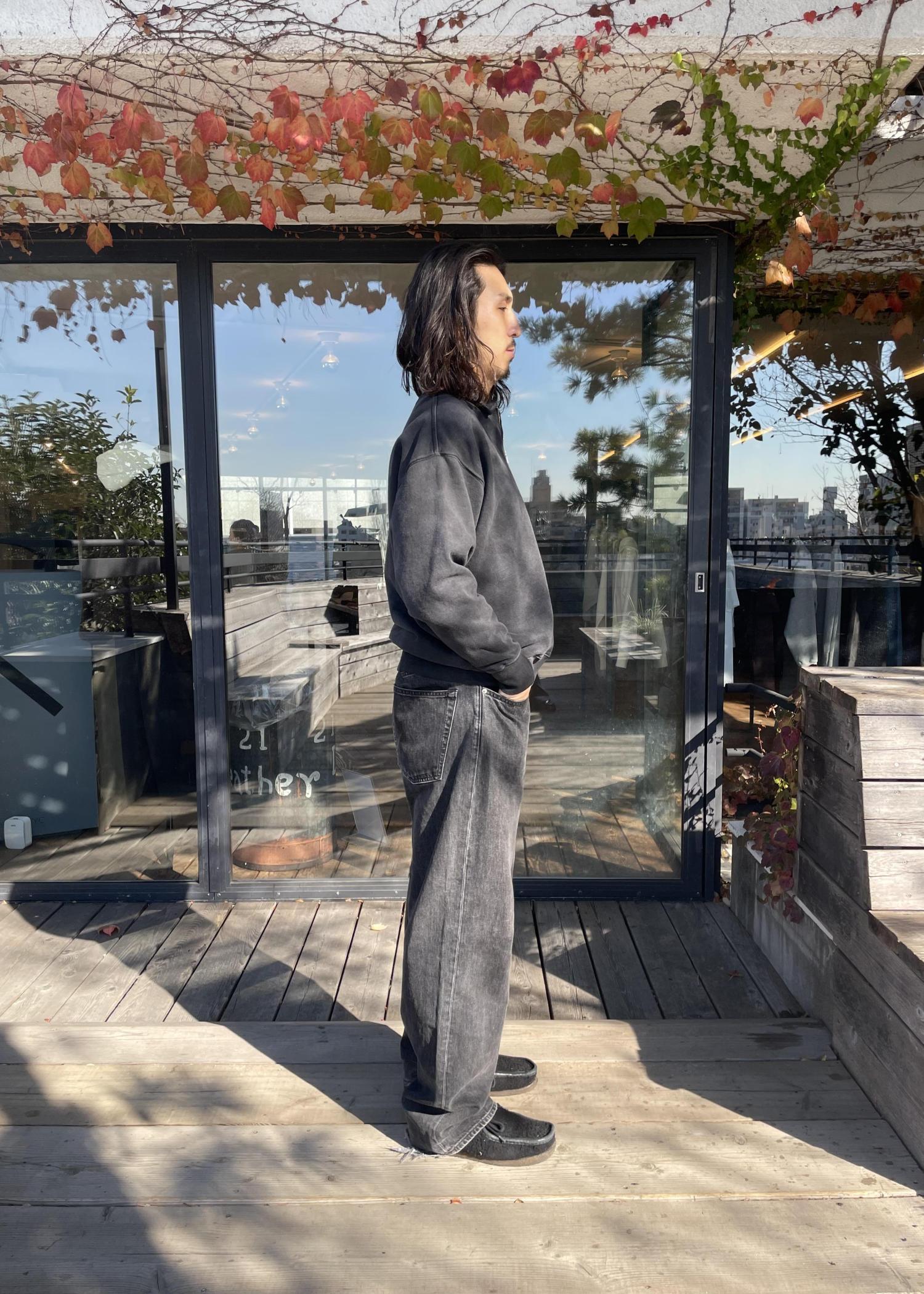 色は、ブラックなのですが、ウォッシュがかかっているブラックなので、グレー色にも見えるアイテムです!