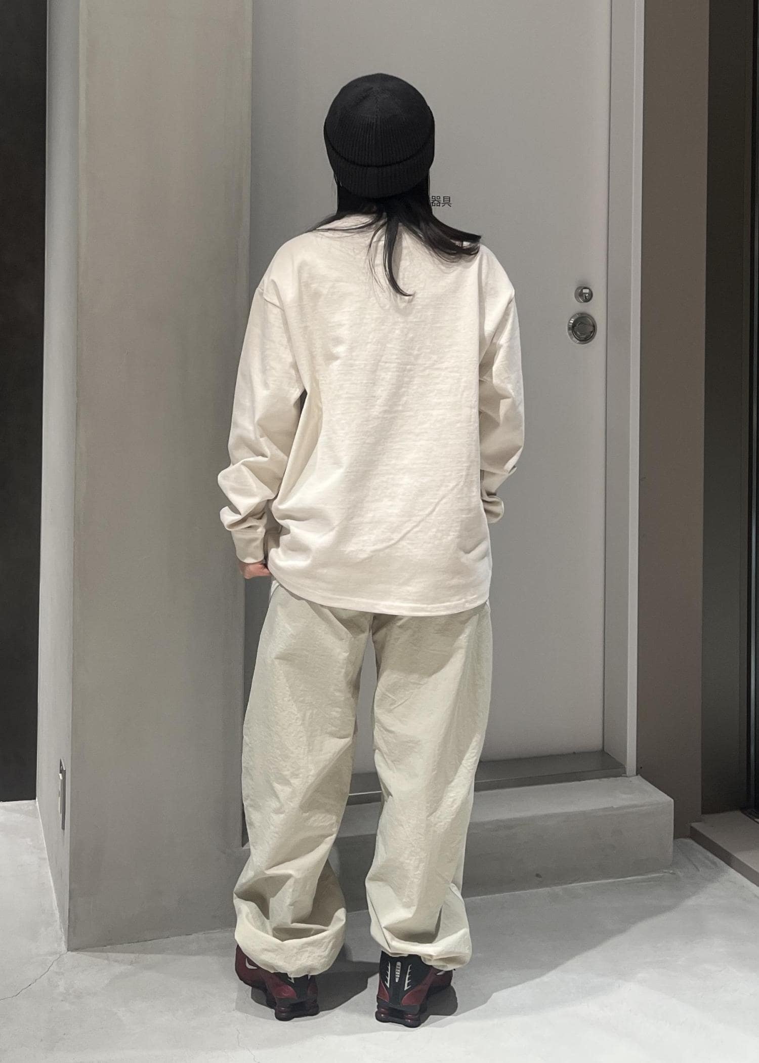 胸元にスラッシュのロゴがプリントされたシンプルなロンTで、身幅が広くリラックスフィットな着用しやすいアイテムです!