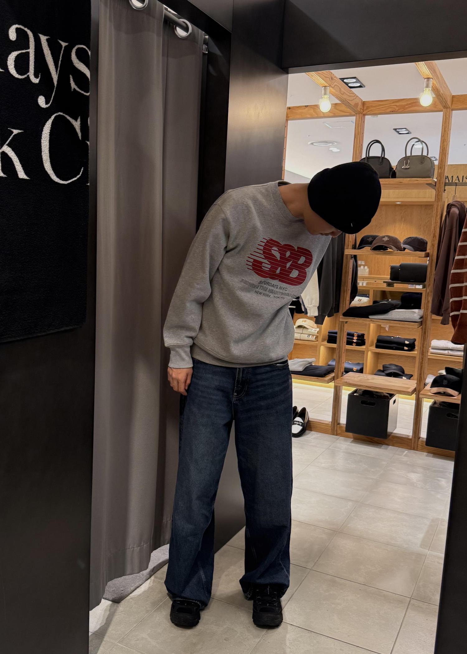 80’sアメリカンスウェットを彷彿とさせる程よい肉感と、S&Bグラフィックの存在感が、デニム合わせでもしっかり映えます。