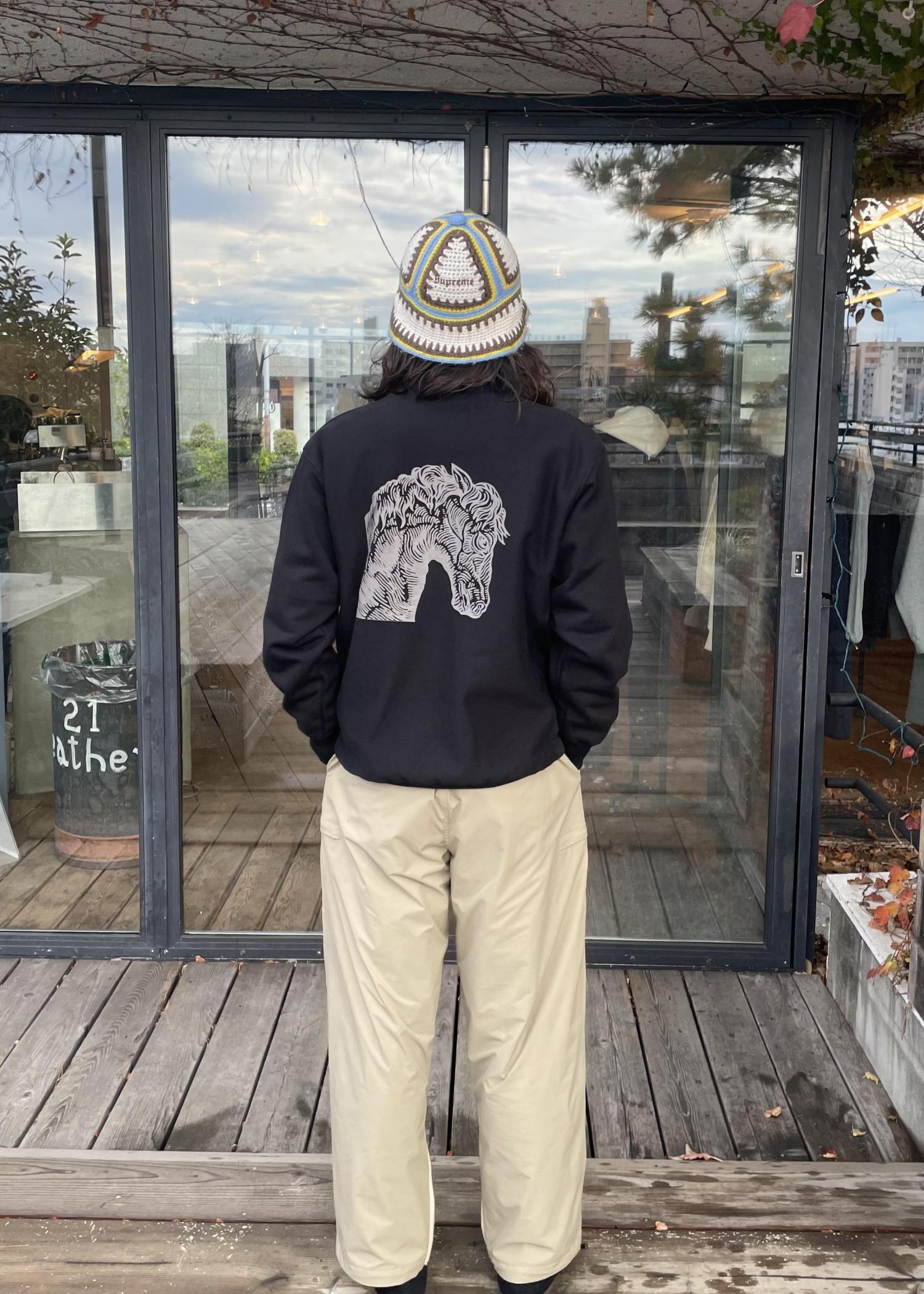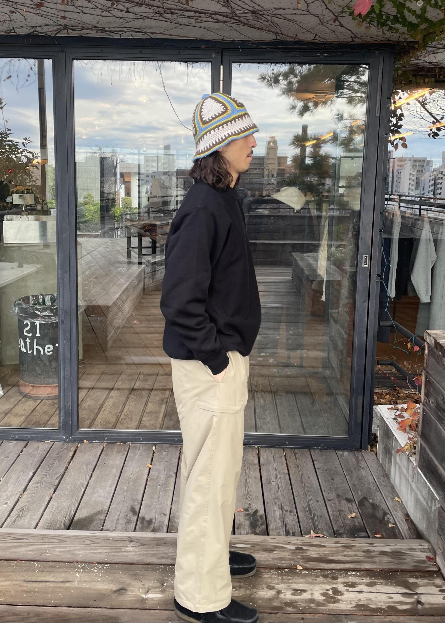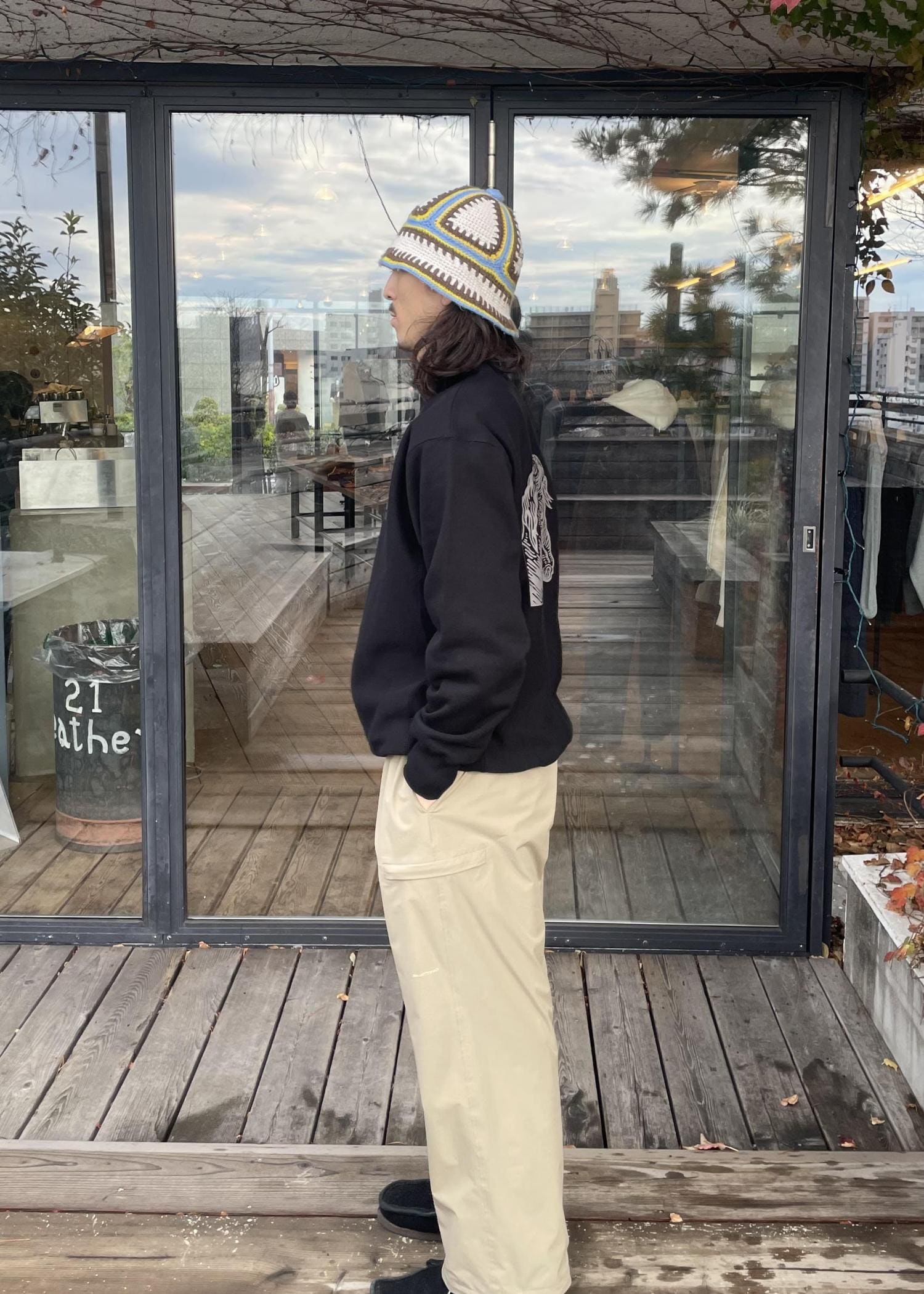 シンプルな形と裏起毛で少し肉厚なボディなので、普段使いしやすい一品になっています!