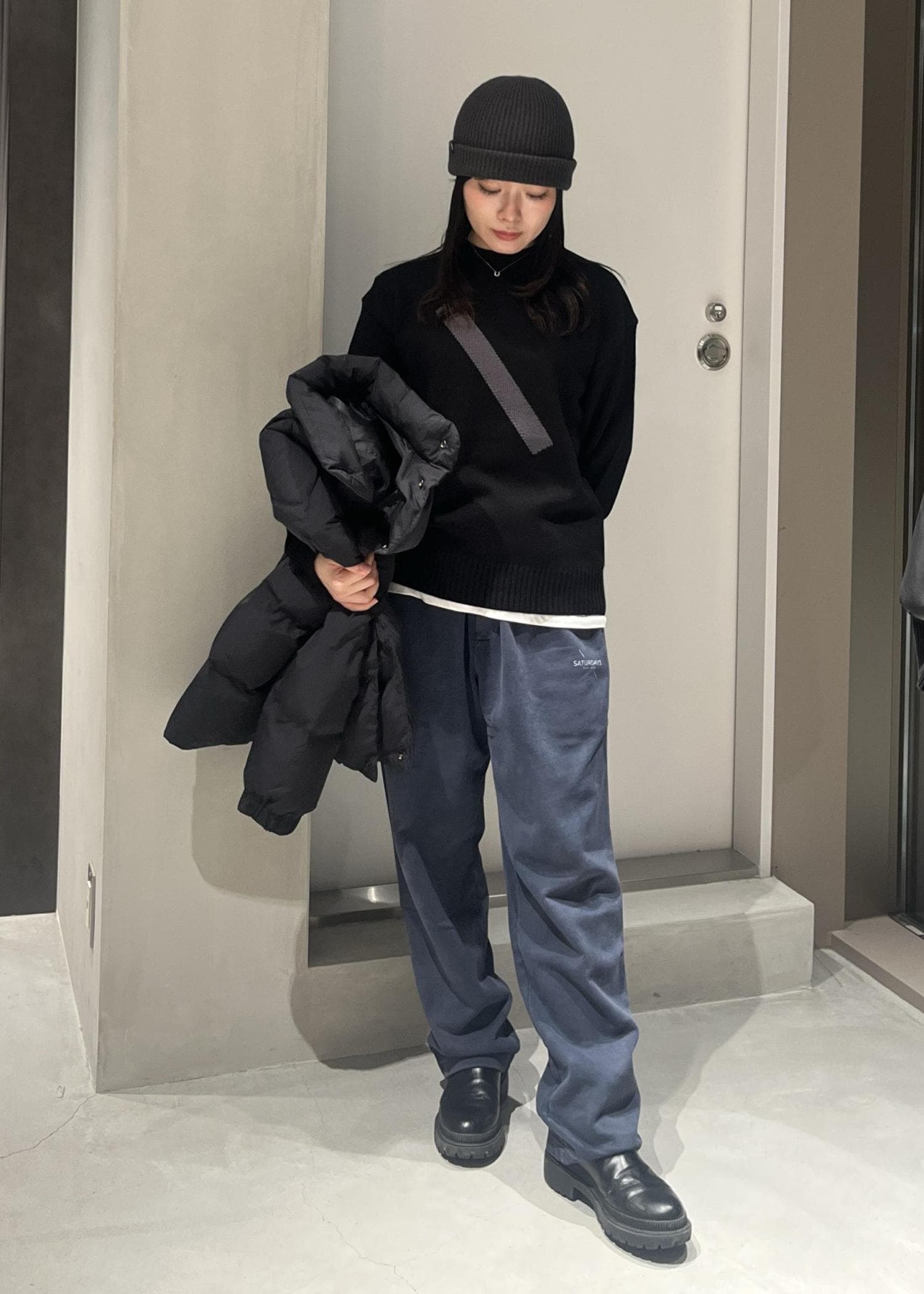 Saturdays NYCGreg Slash Sweaterブラック / M¥22,000レビューNANGAの定番モデルで使用されるAURORA TEX(R)を採用し、サタデーズNYCオリジナルパターンで別注したフードタイプのダウンジャケットです。
