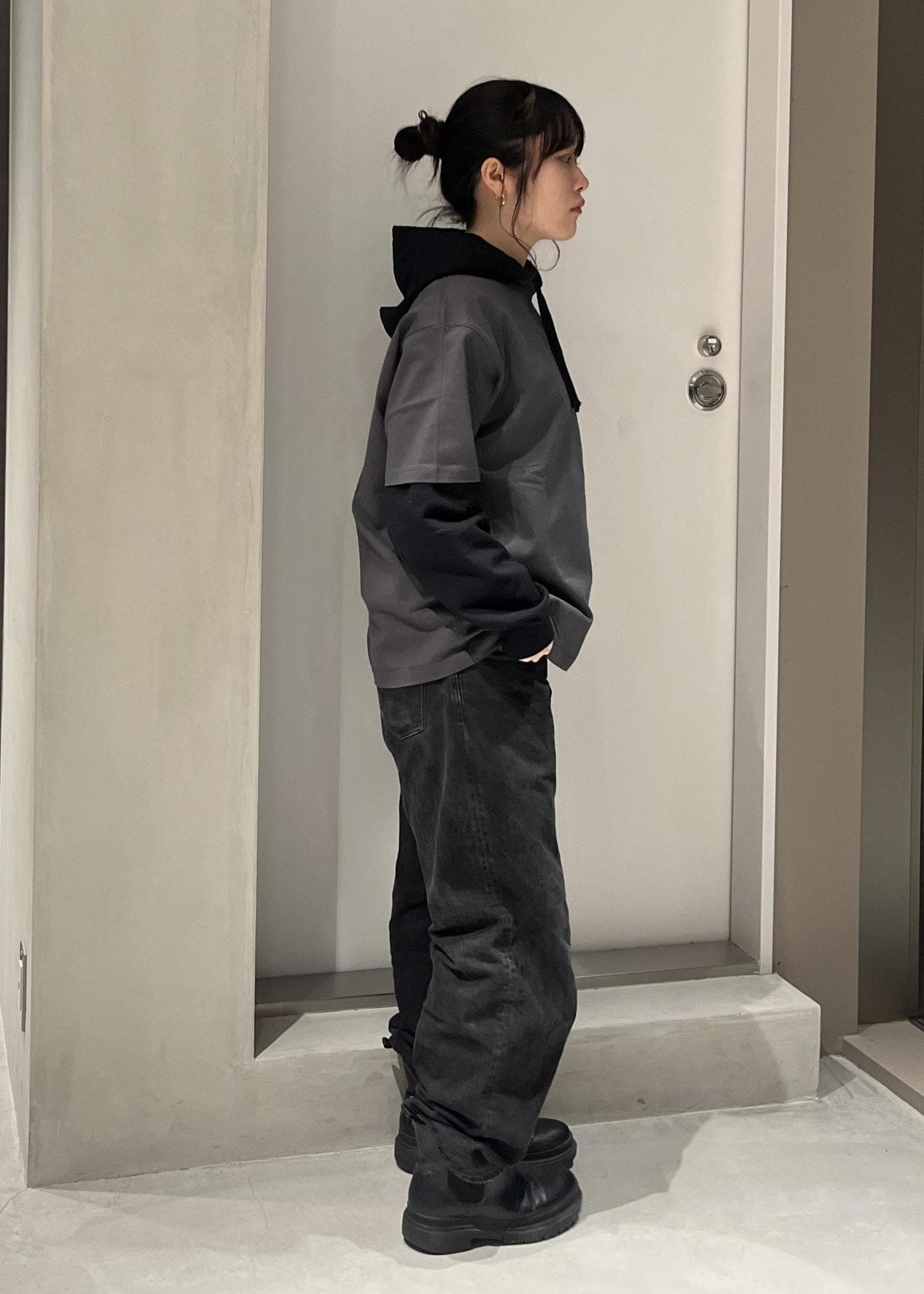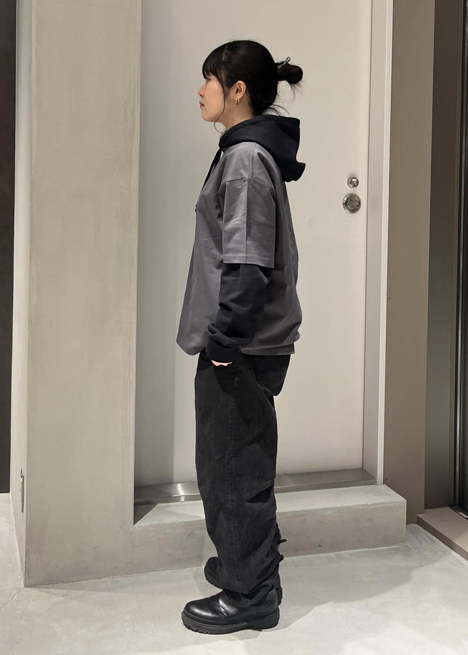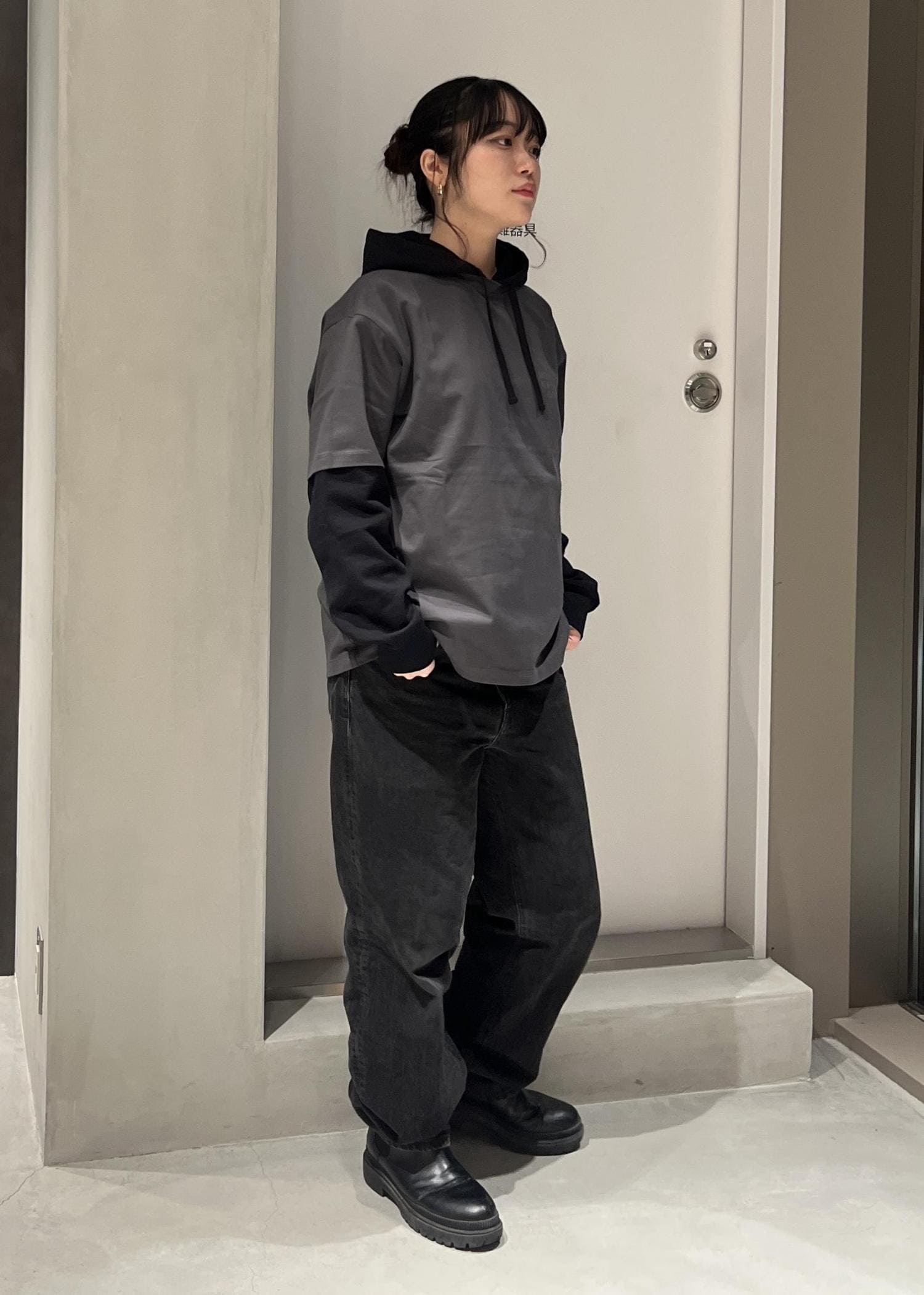 フーディーの上にレイヤードして今っぽく着るのがGOOD◎