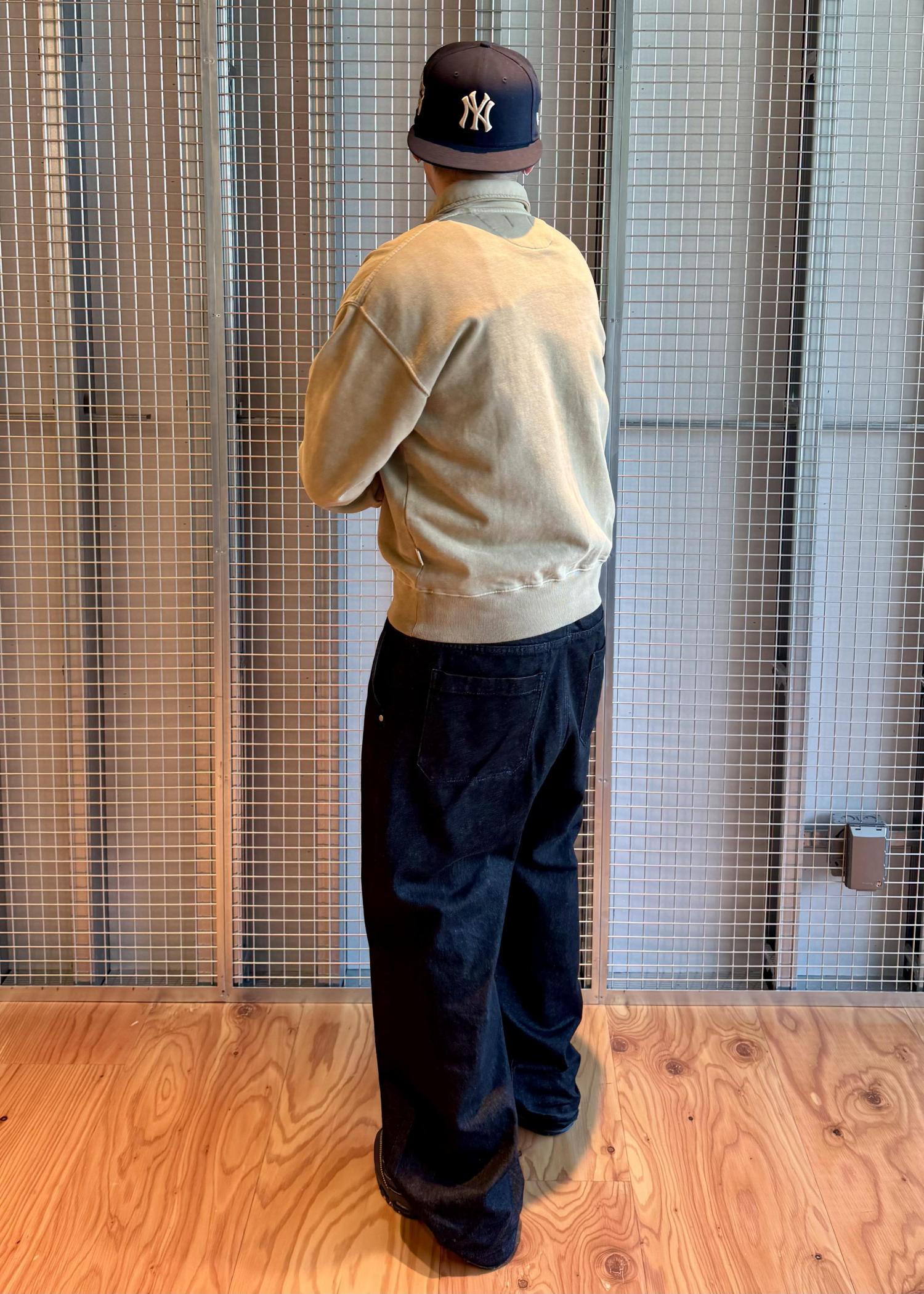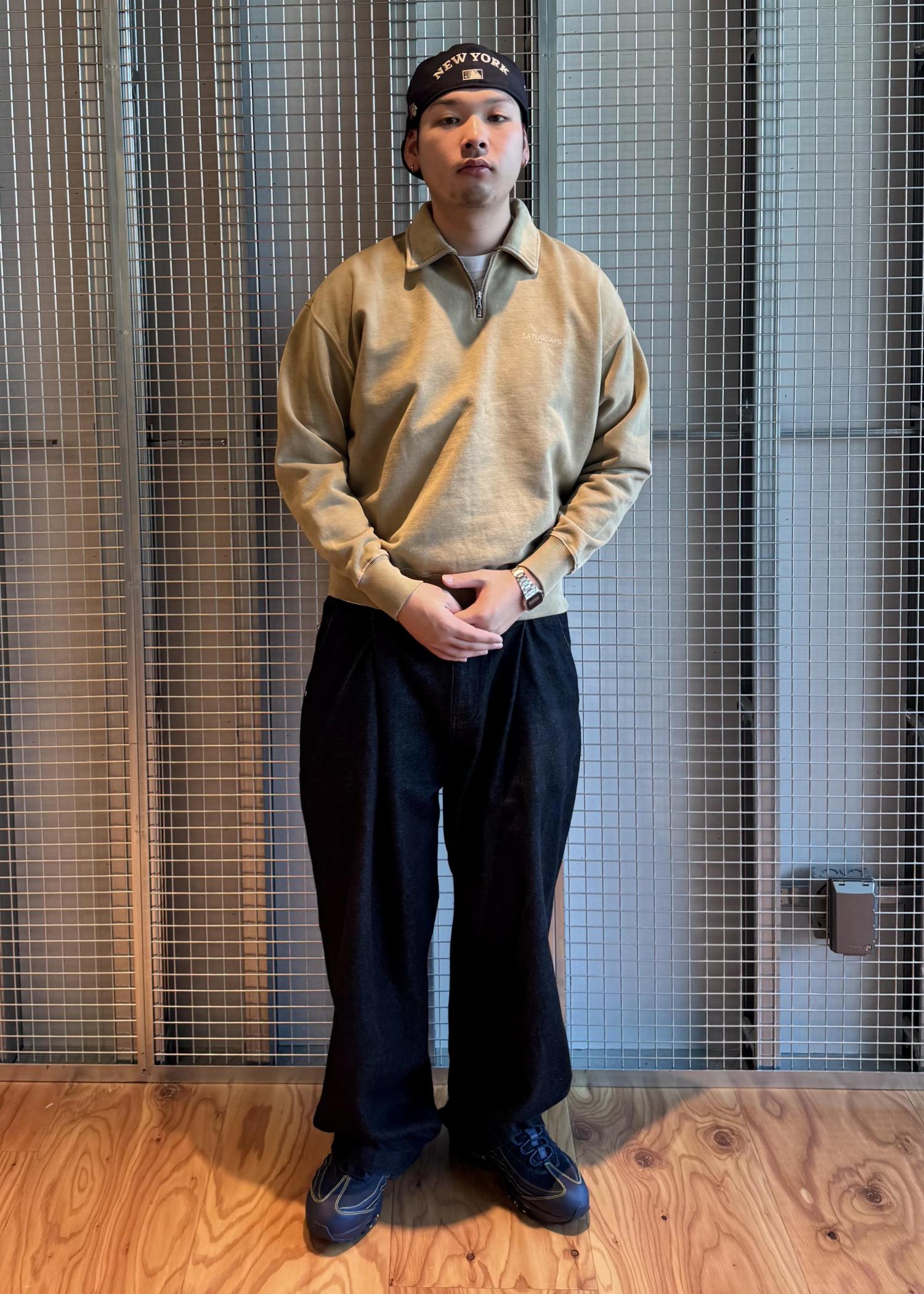 衿付きジップポロデザインのスウェットシャツは、ヘビーウェイトの裏毛素材に日焼け加工を施したビンテージライクな仕上がりにしており、リラックスしたサイジングで現代的なシルエットになっています。