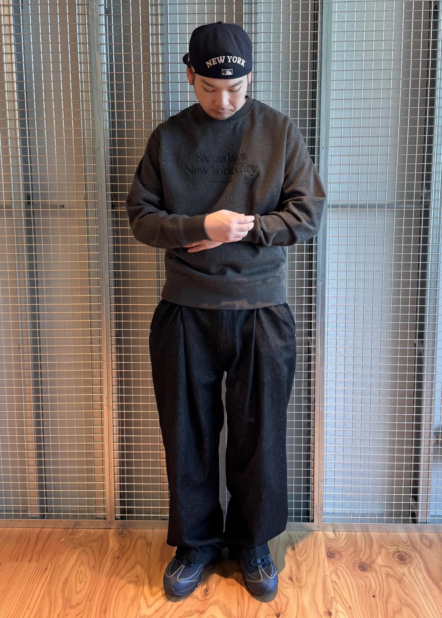 カラーネップを使用したヴィンテージライクなクルースウェットでをサタデーズNYCで定番のミラスタロゴをカラーネップ裏毛の素材で表現しました。