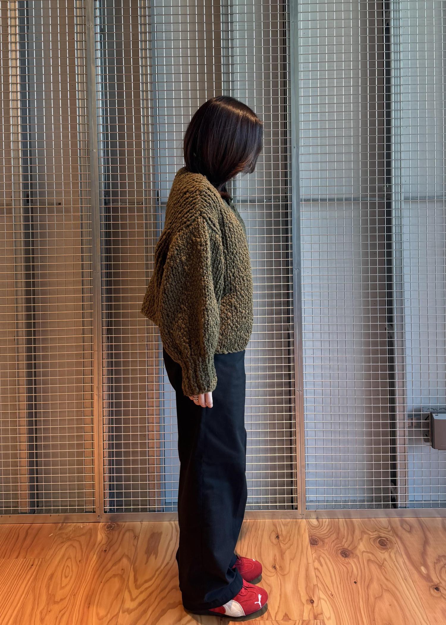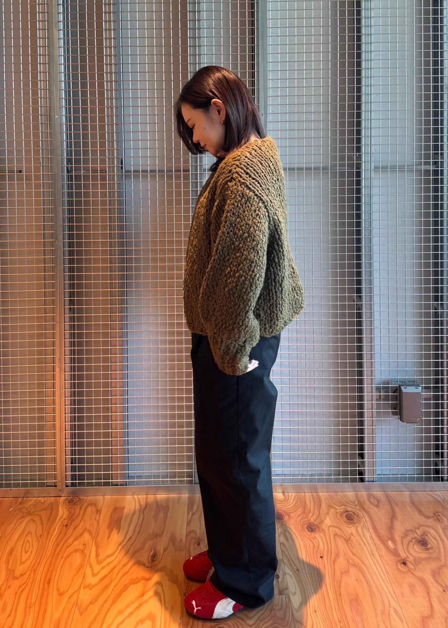 ざっくりとした編み地と程よいボリューム感が、リラックスしたムードを演出します。