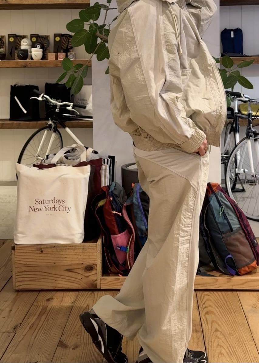 Saturdays NYCSadie Training Pants | WOMENキナリ /¥12,100レビュートレーニングパンツとしても使えるカジュアルナイロンパンツ!ライン感のあるデザインが今期トレンドで、さまざまな場面で使えること間違いなし。お腹周りはゆったり調節可能。通年使っていただけるアイテムです◎