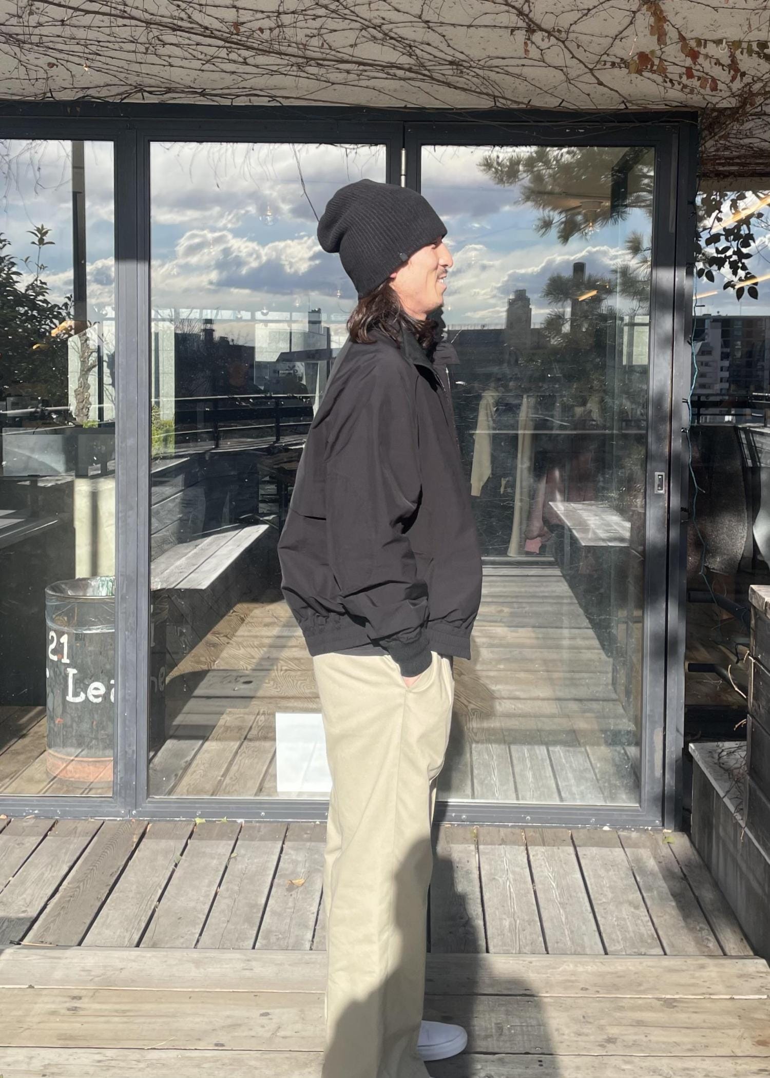 丈が短めで身幅が少しあるデザインで、丈と袖のリブが強いのも特徴です!