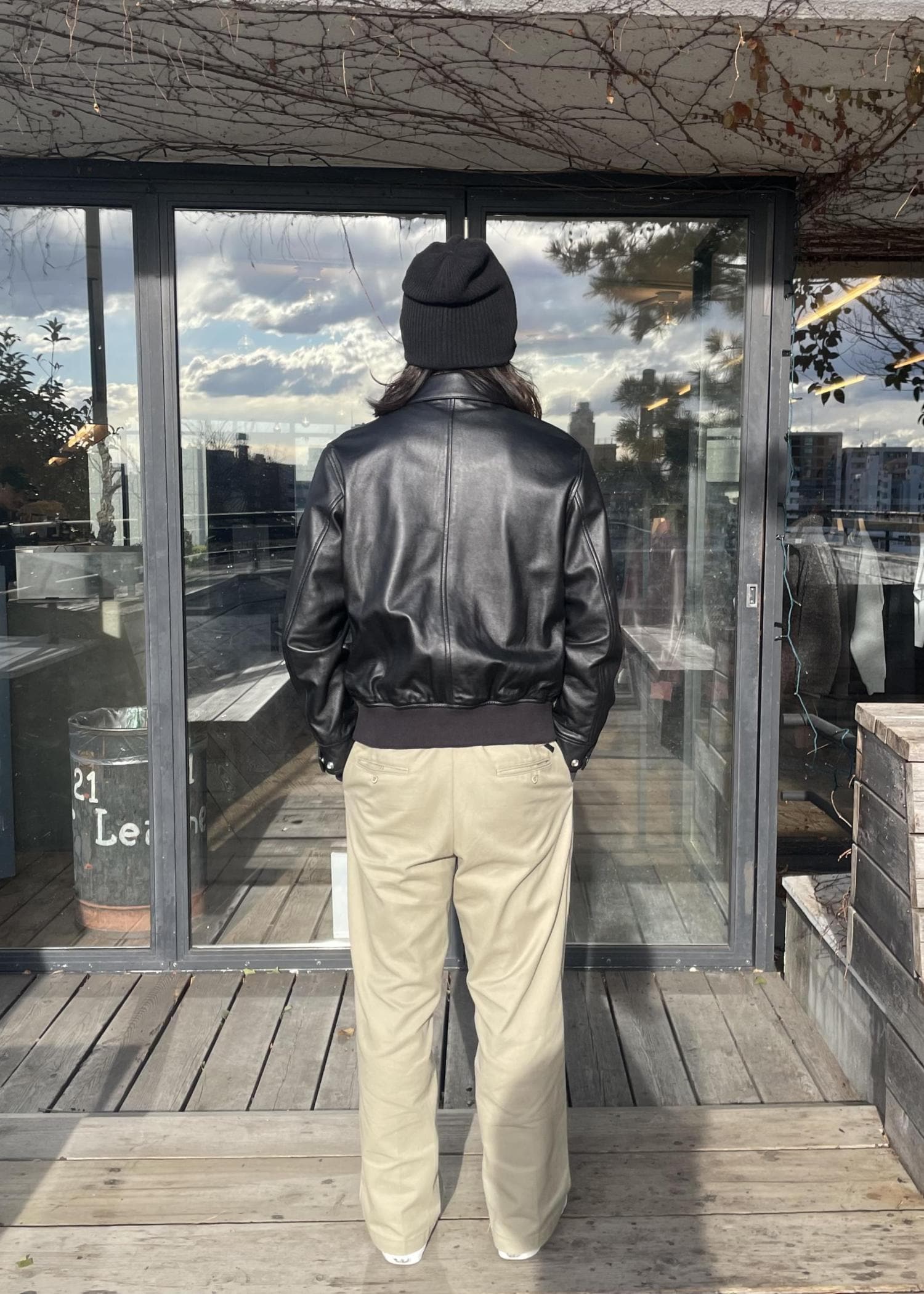 アウターは、空軍のA2のデザインでリアルレザージャケットです!表地は、羊革100%のレザーを使用しています!