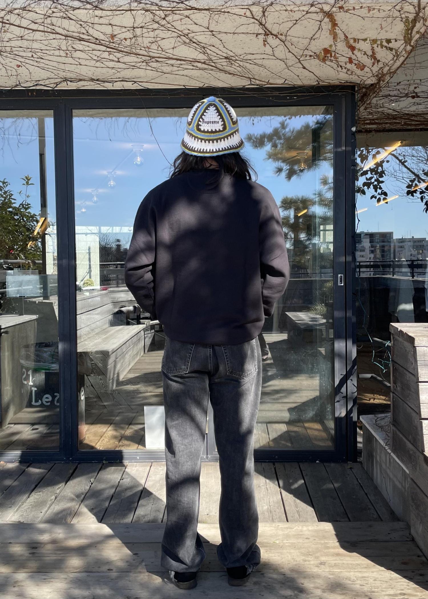 その刺繍のロゴが暗めな色なので、1番上に着てもインナーに着ても主張があまりなくてどんなスタイリングにも合わせやすいアイテムです!