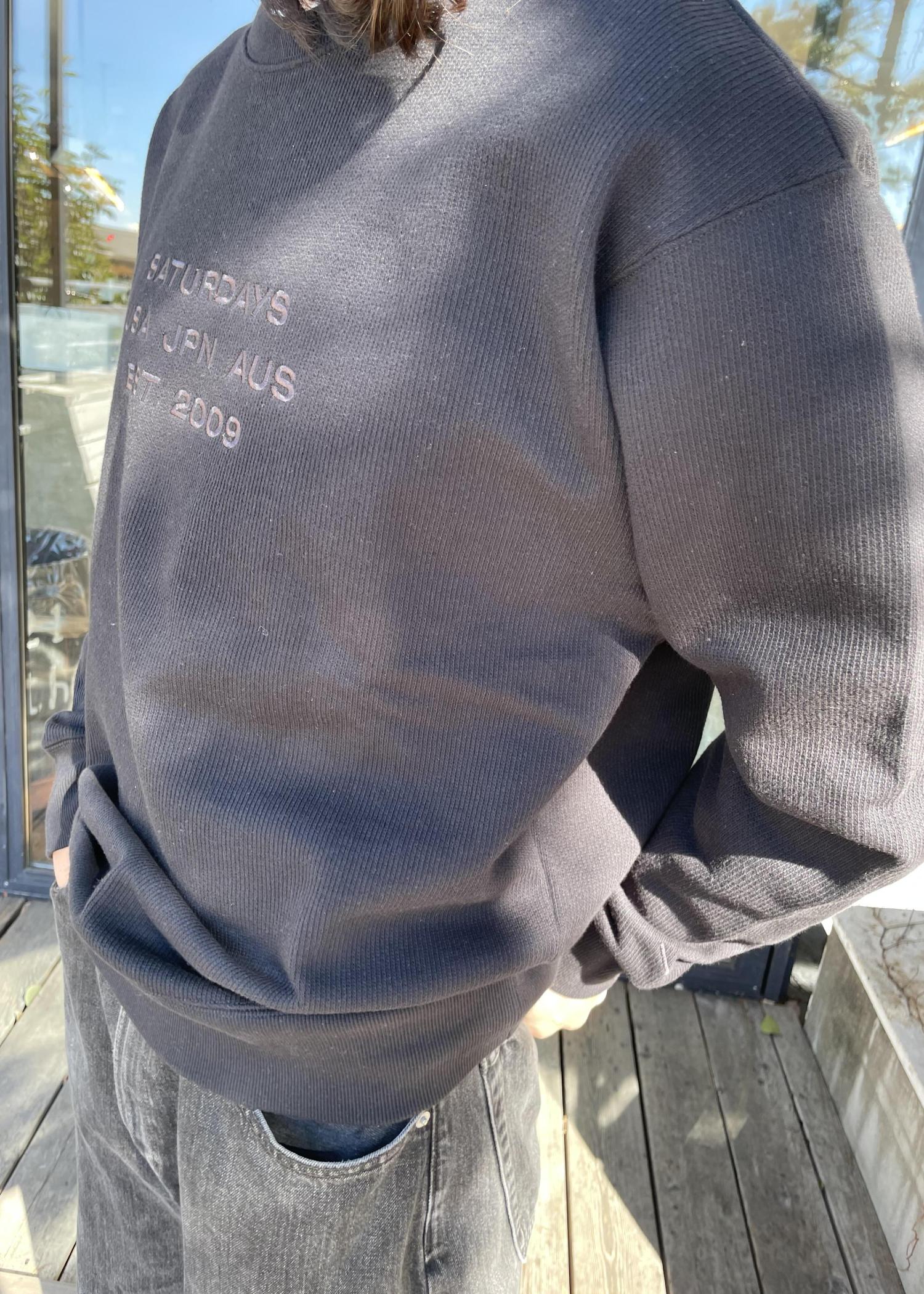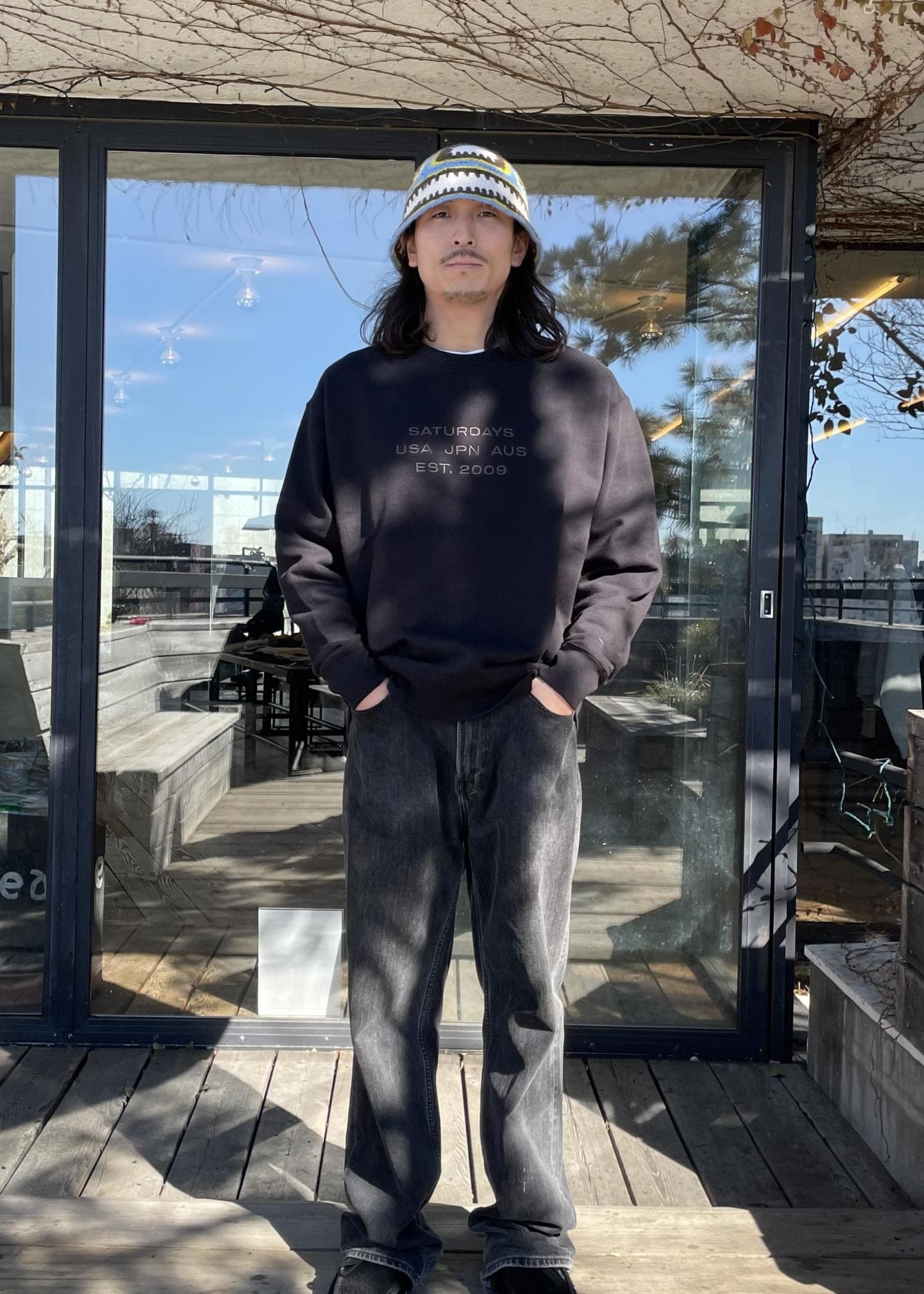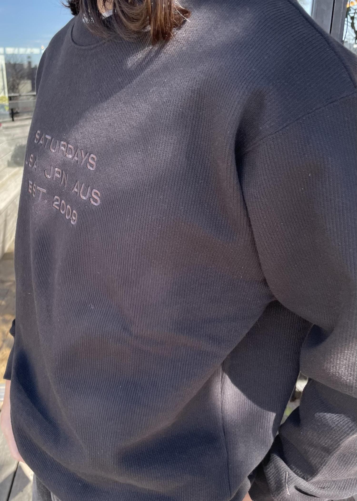 トップスは、Saturdays NYCのインターナショナルロゴが胸に大きく刺繍が施されたアイテムです!